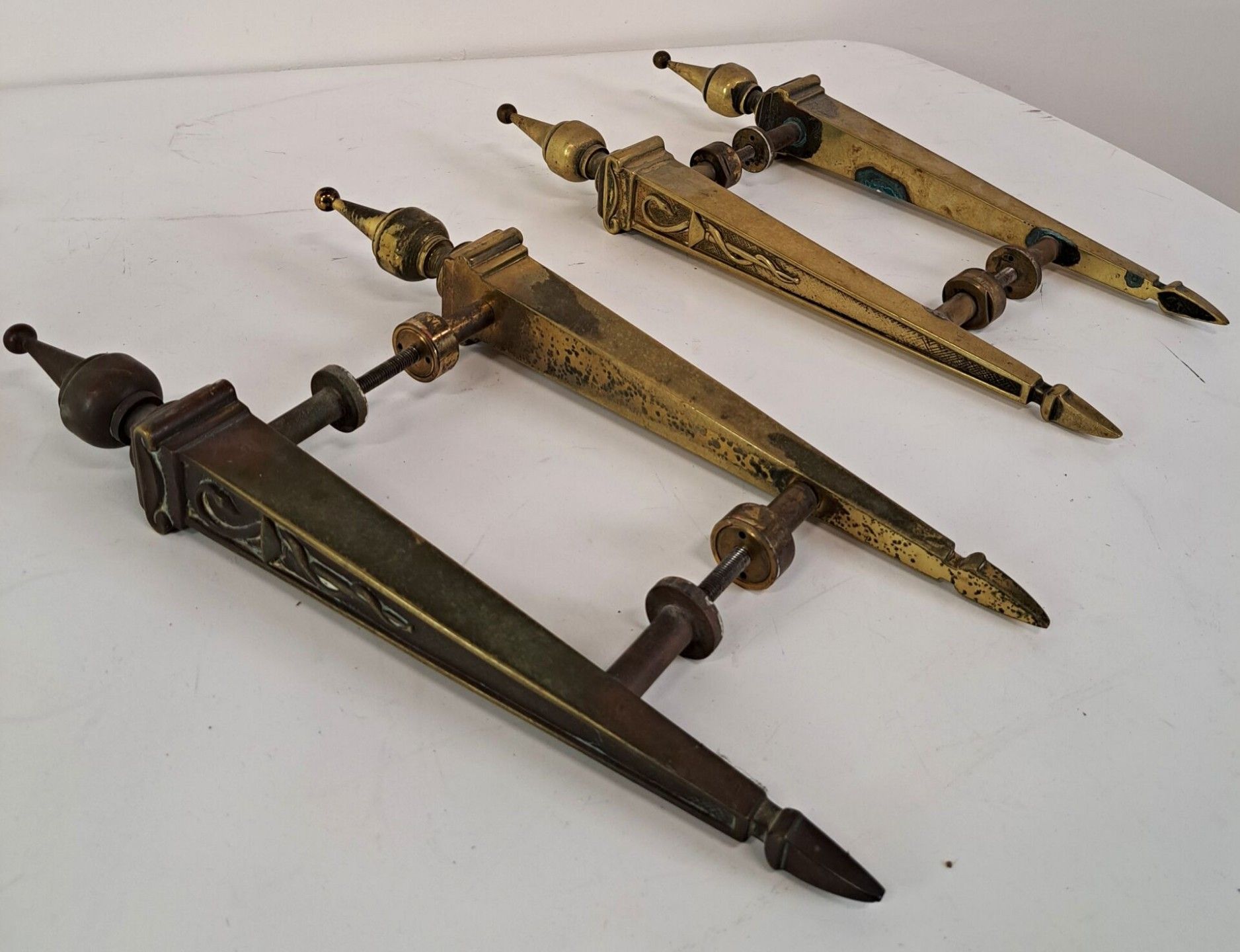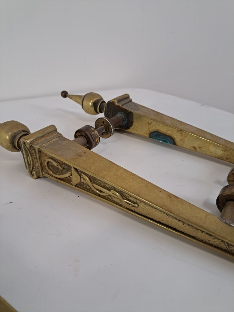 Two pairs of gilded bronze pharmacy doors decorated with caducei - Height: 42 cm