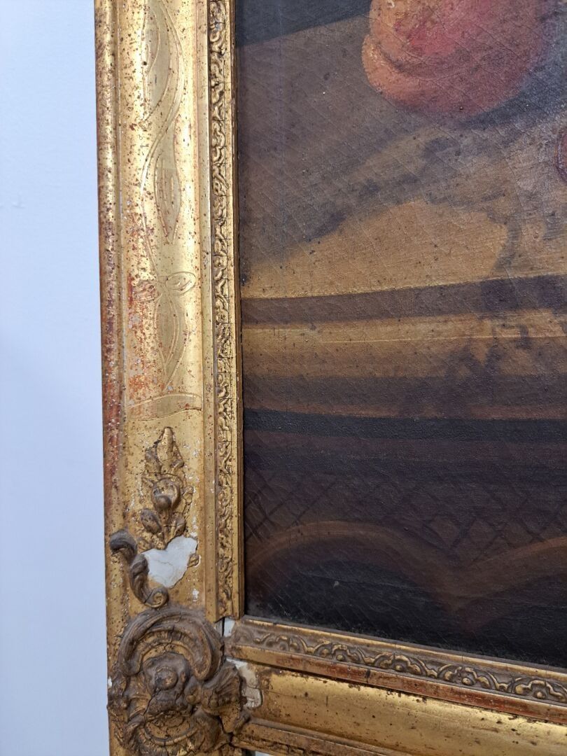 Trumeau, still life with a hare, wood and gilded stucco fram…