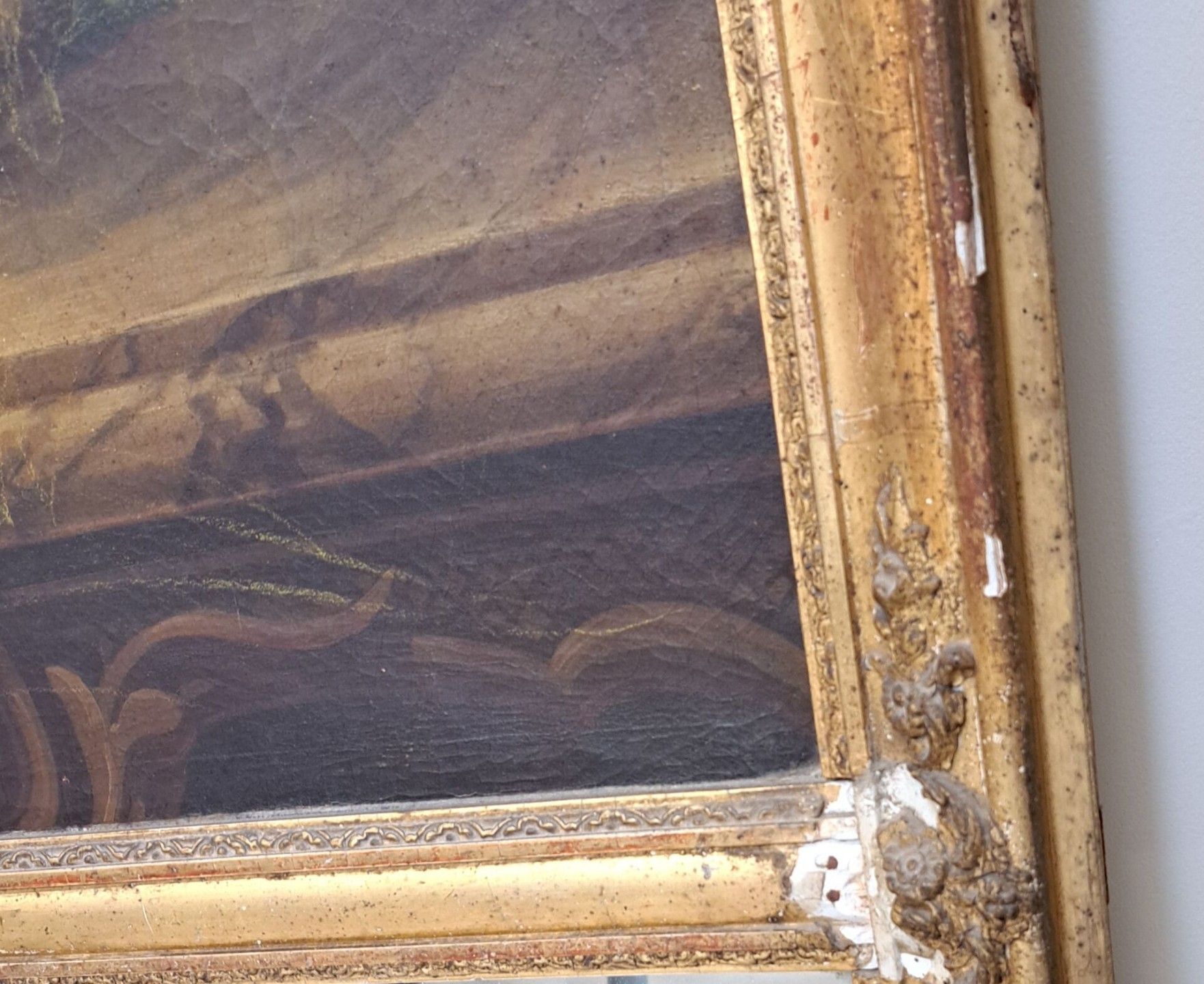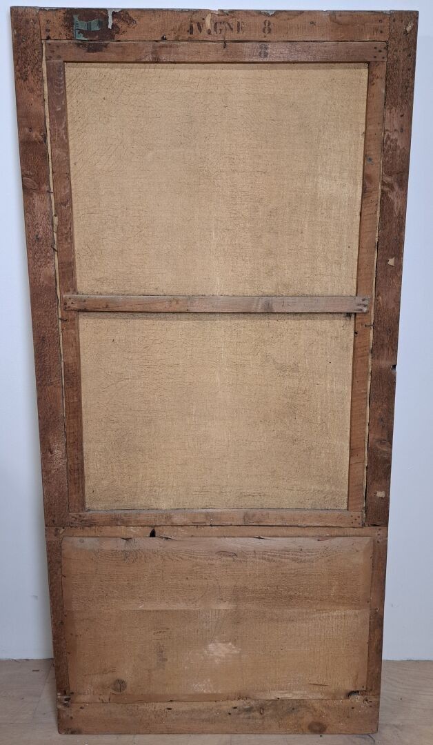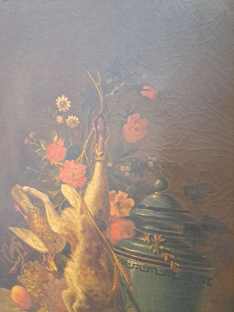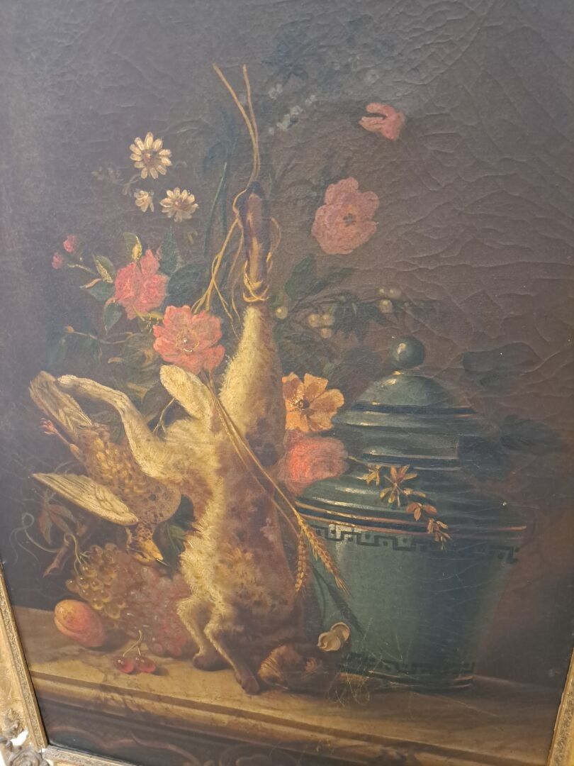 Trumeau, still life with a hare, wood and gilded stucco frame - 150 x 73 cm (accidents to the frame and marks)