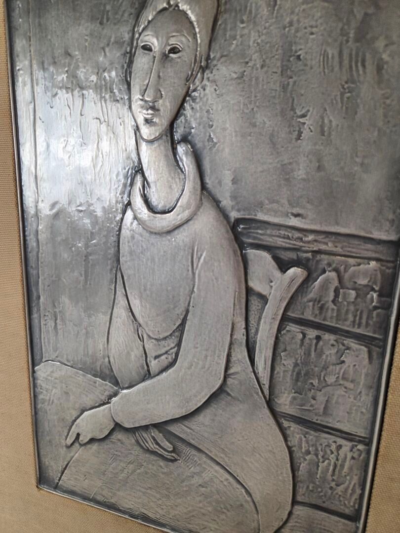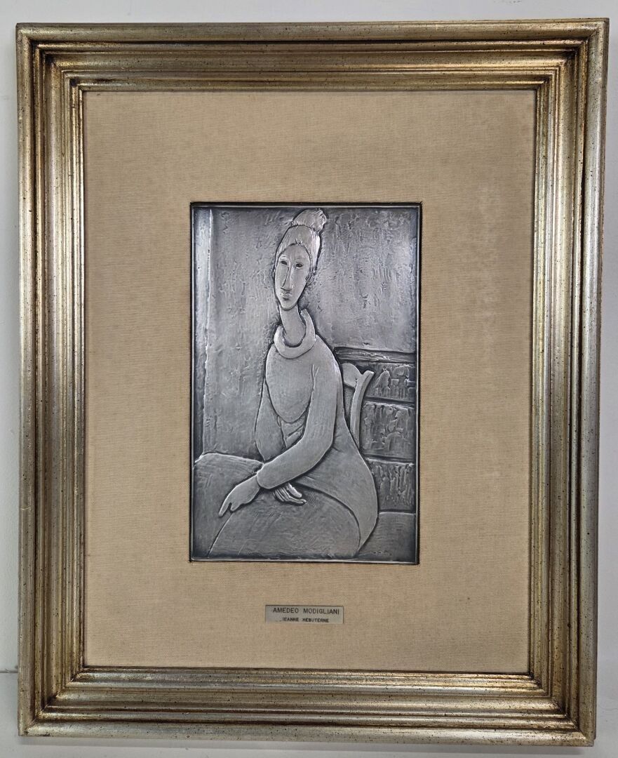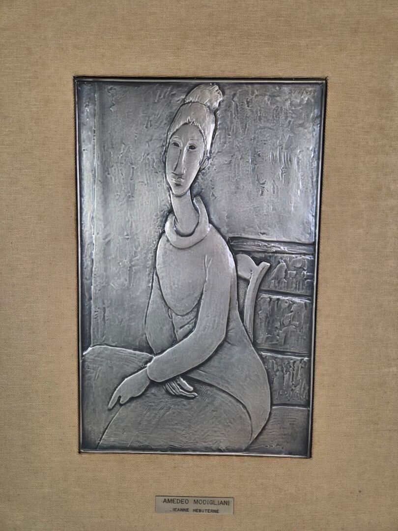 FRATELLI CASSETTI - Amedeo MODIGLIANI Collection: "Jeanne Hebuterne" 925 thousandths silver bas-relief, reproduction of the 1919 painting in the Guggenheim Museum, New York. 30.5 x 19 cm