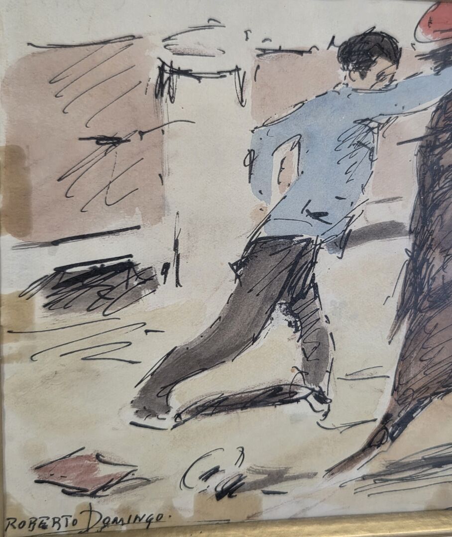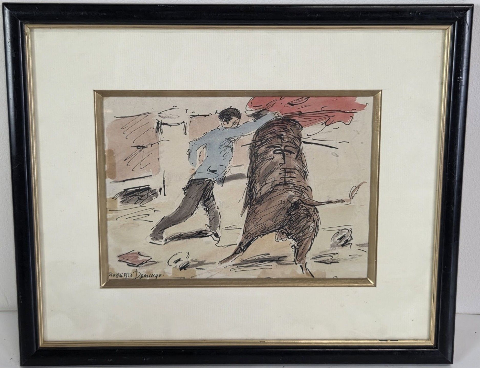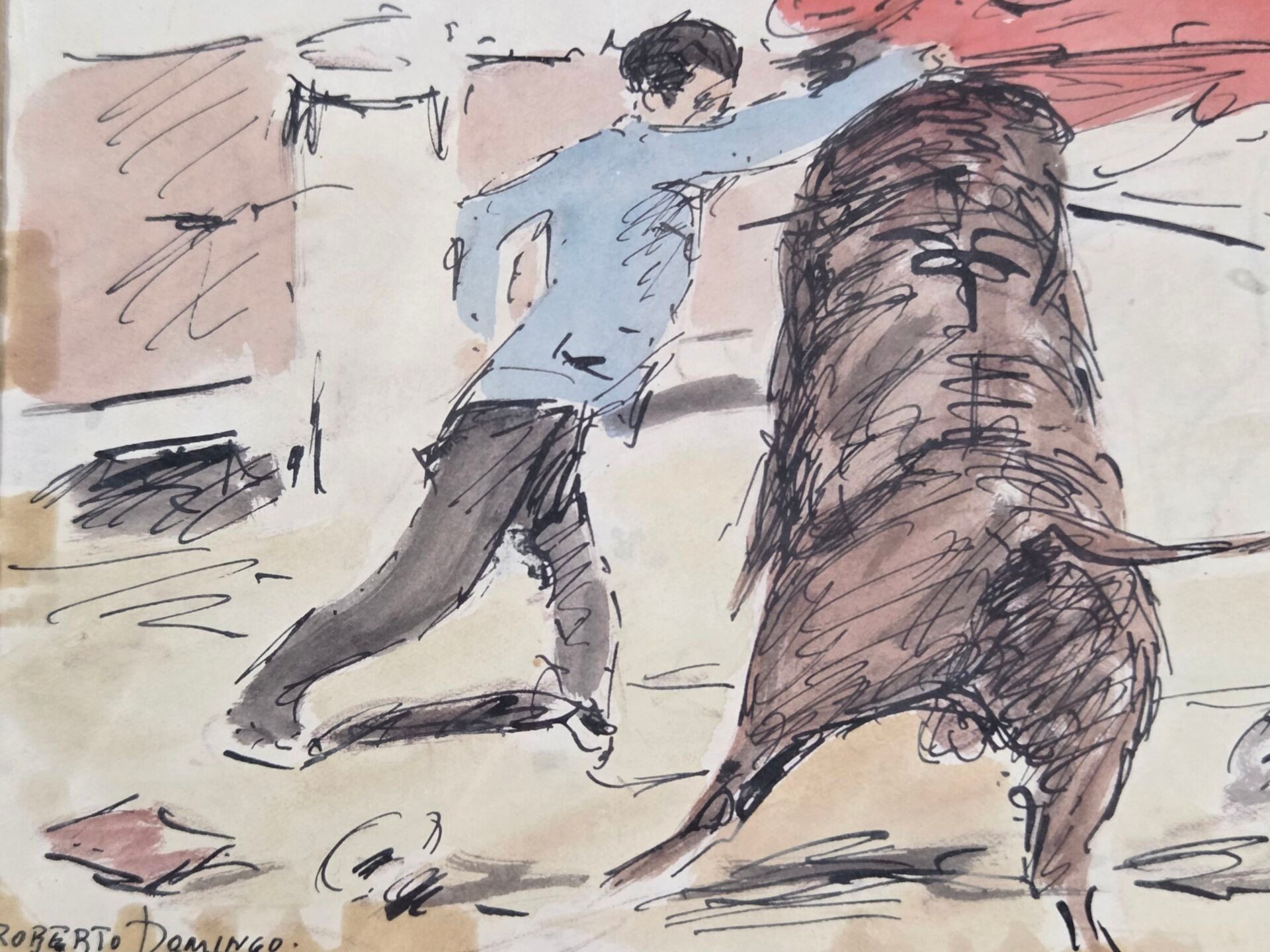 DOMINGO Y FALLOLA Roberto (1883-1956), Scène de corrida, watercolour and wash, signed lower left, 14 x 20 cm (view)