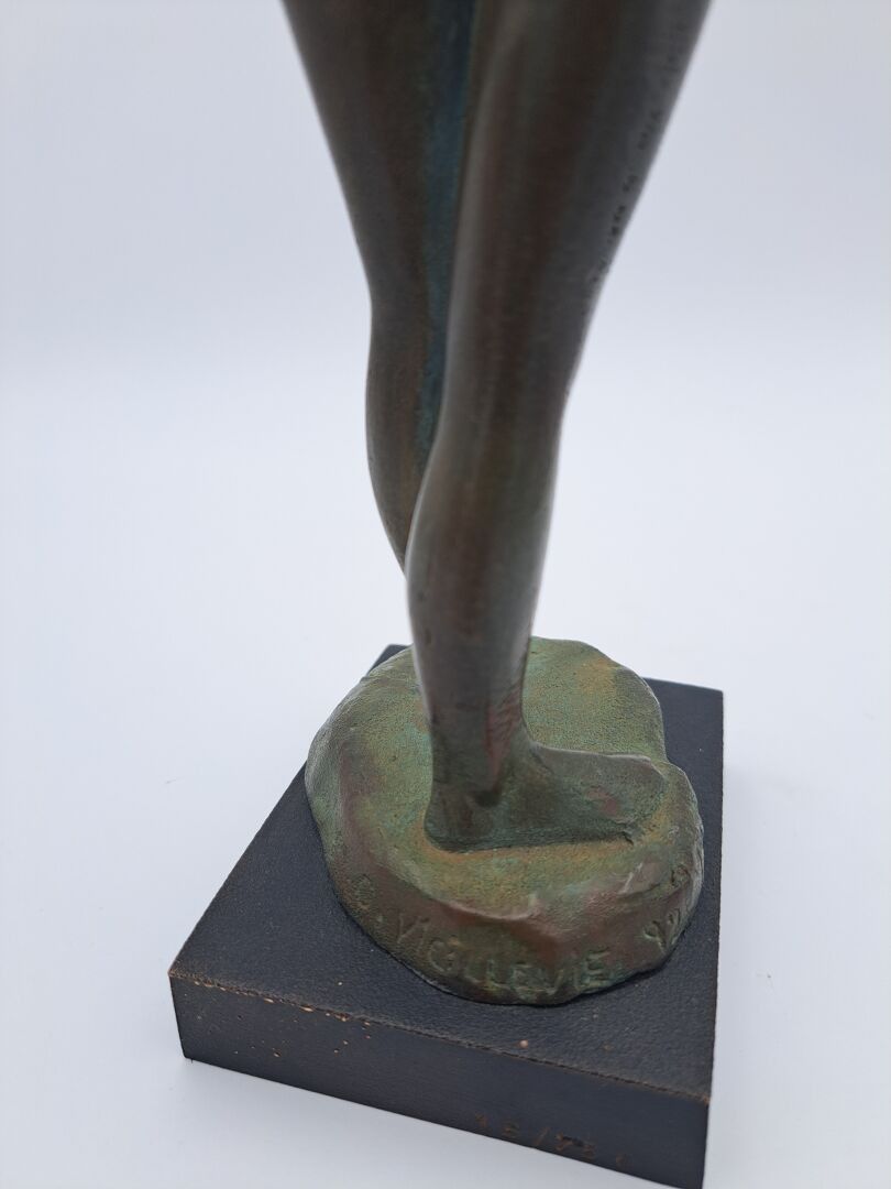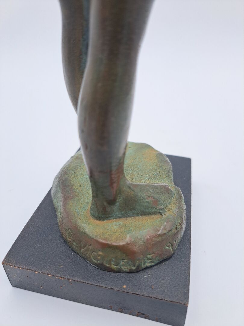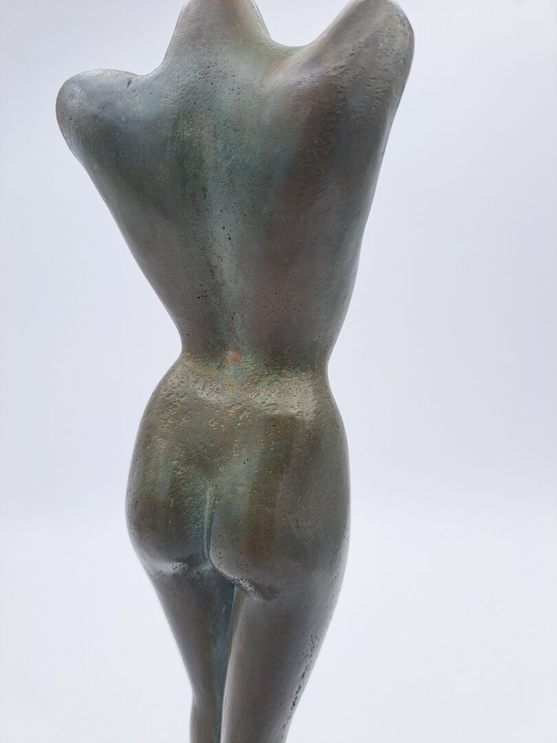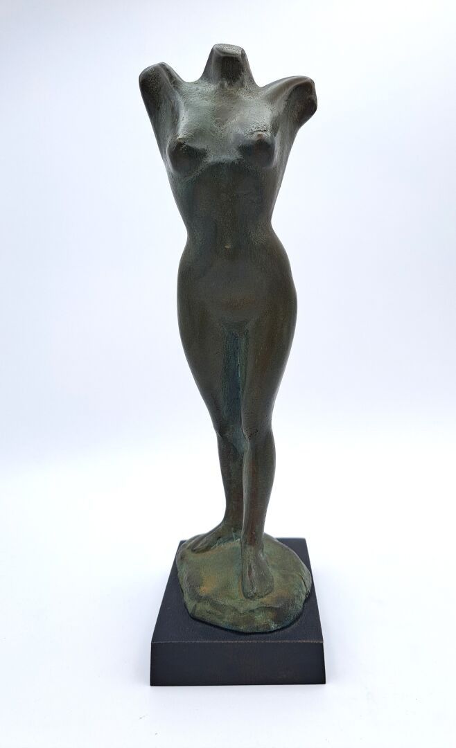 Gérard VIEILLEVIE (1939-1992), "Femme nue acéphale", bronze with a verdigris patina, signed and dated 92 on the terrace, height: 25 cm without the base, numbered 15 / 750 on the base.