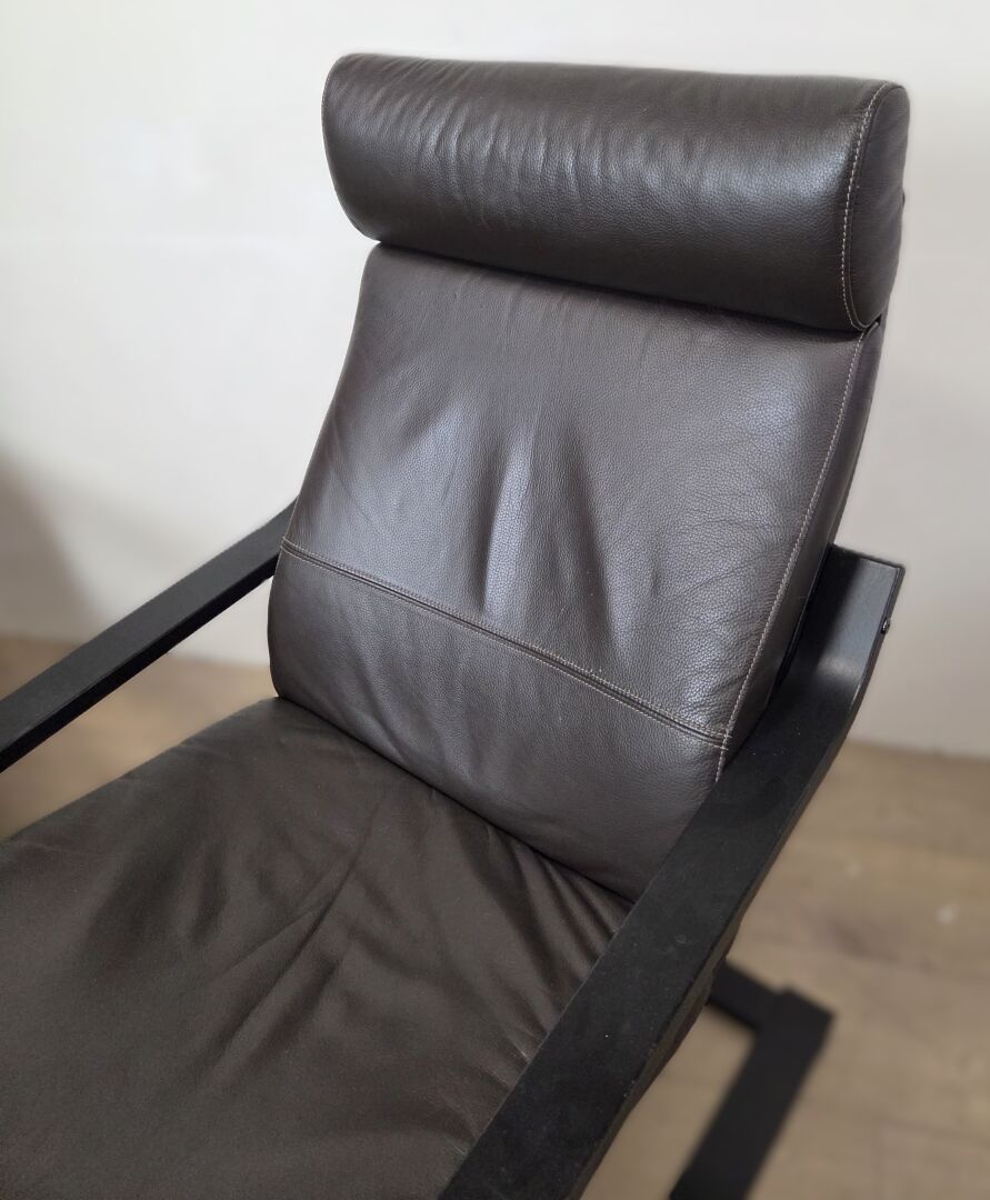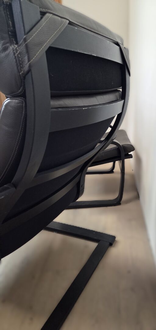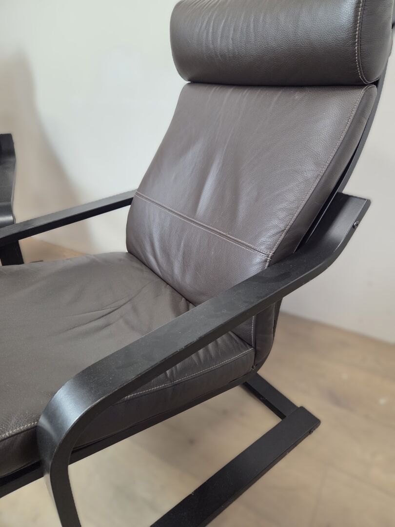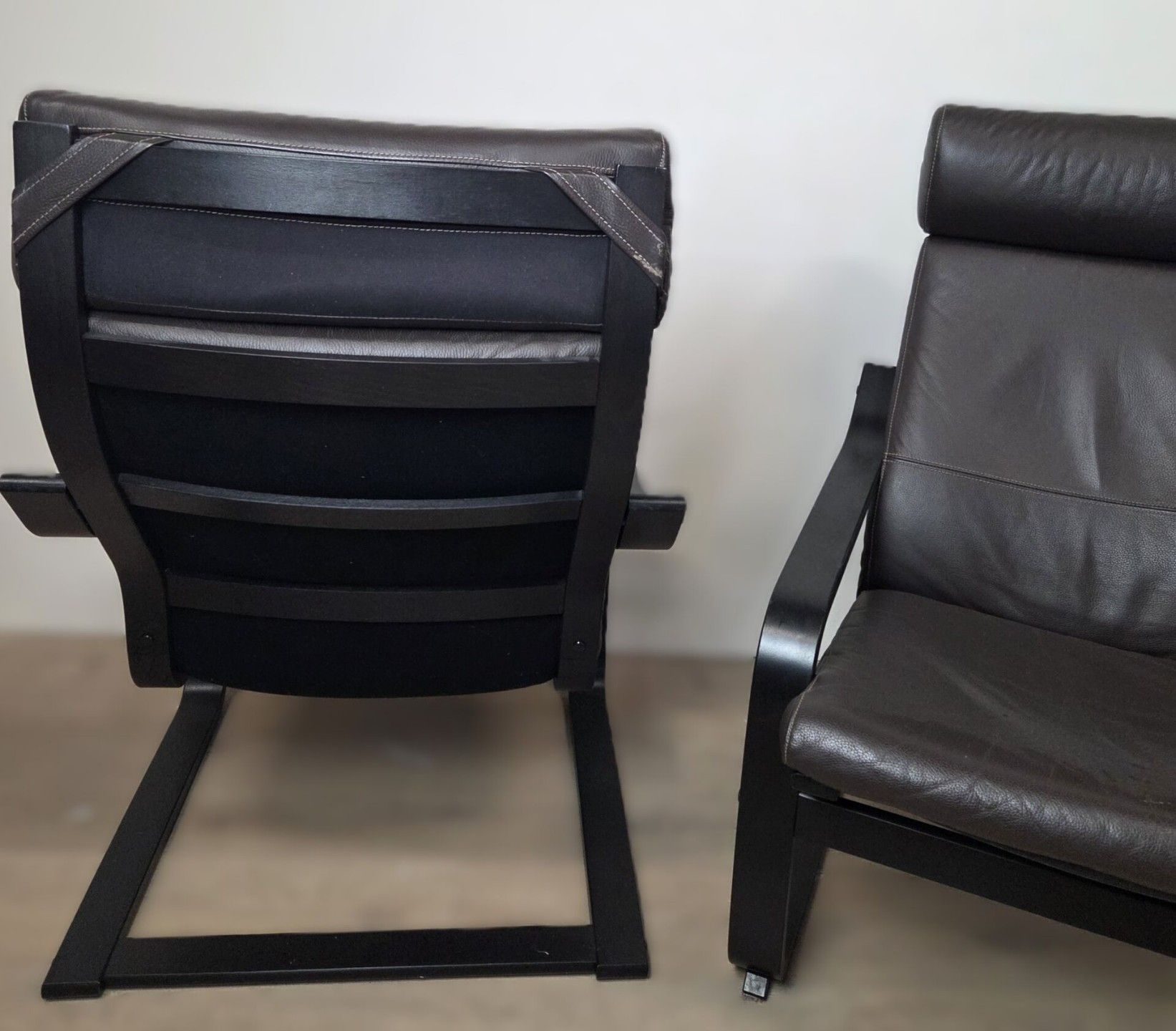 Noboru Nakamura for IKEA - Two black leather POÄNG rocking chairs with headrests. The design was created in 1977. The leather model with headrest is no longer produced.