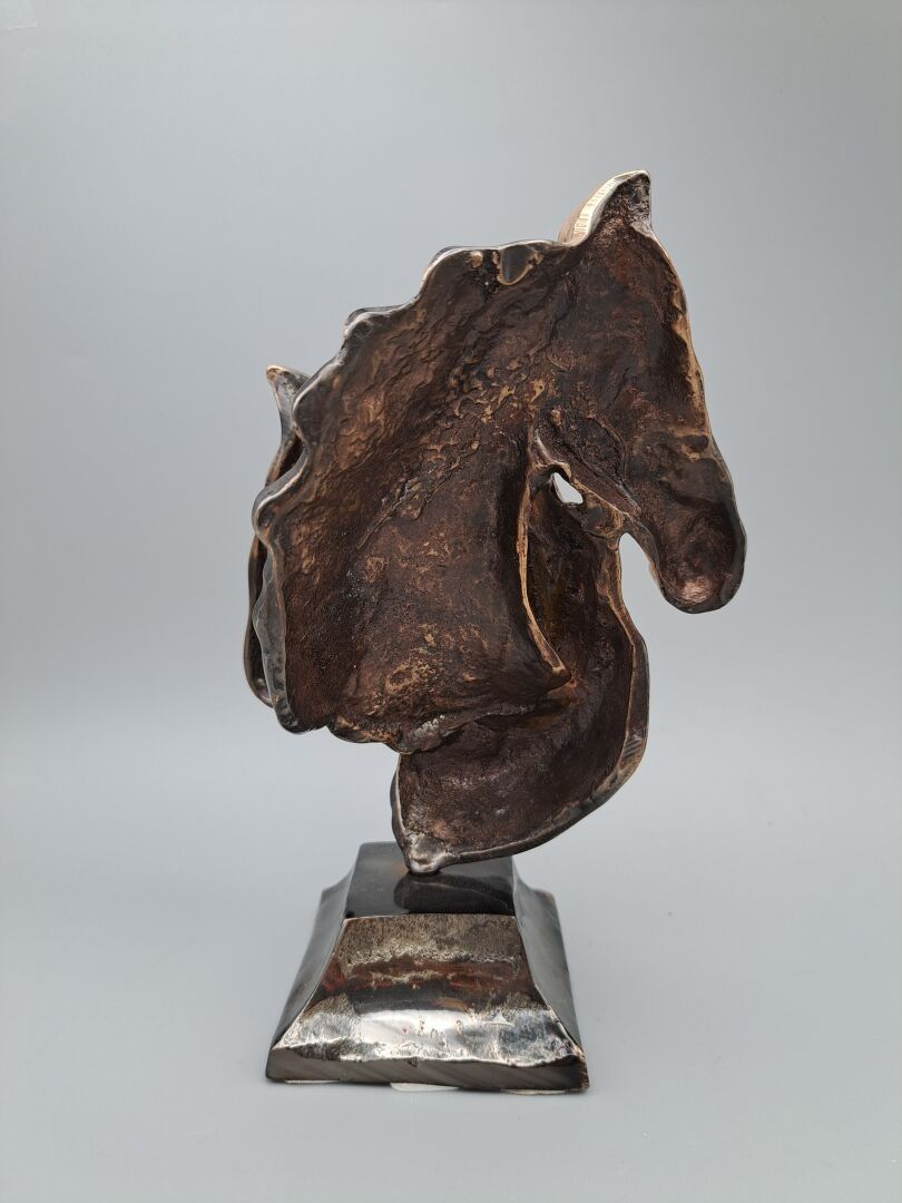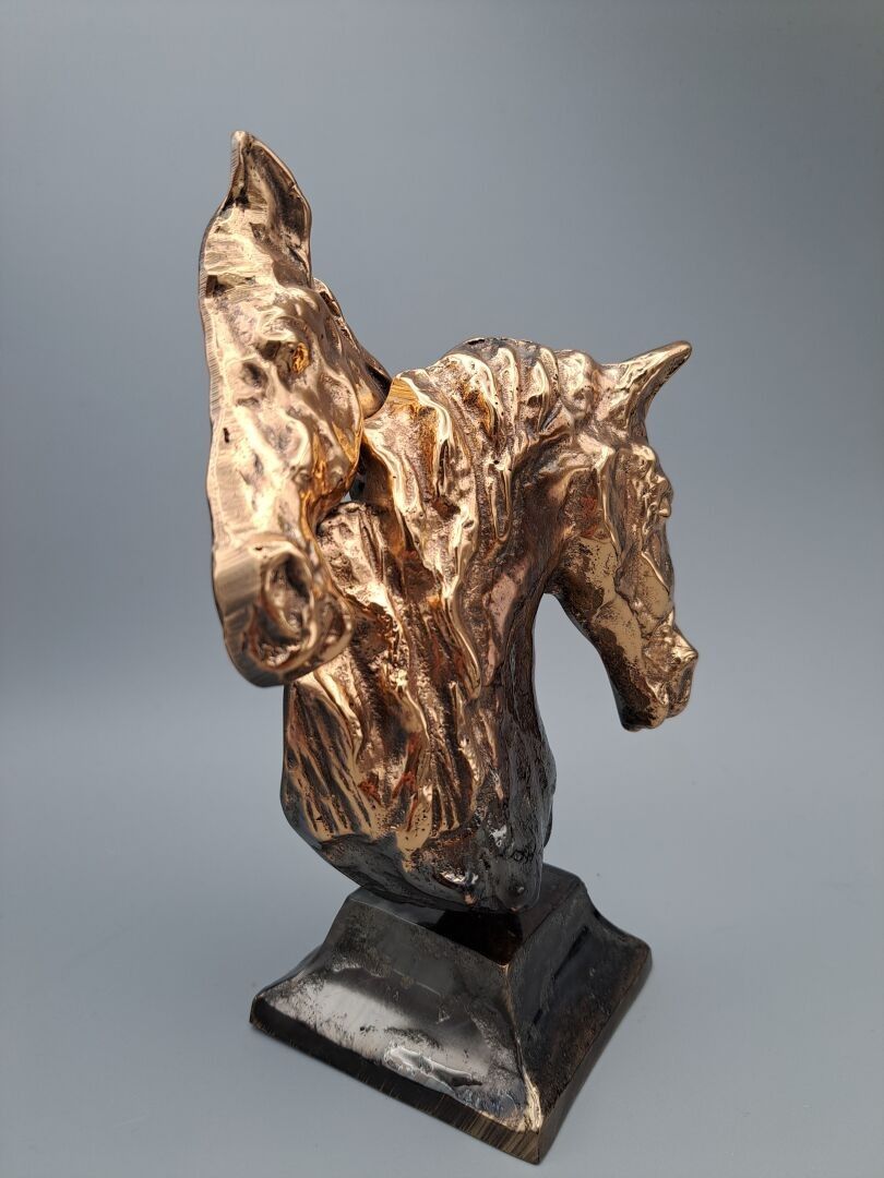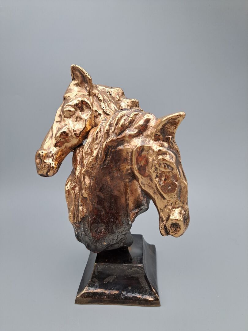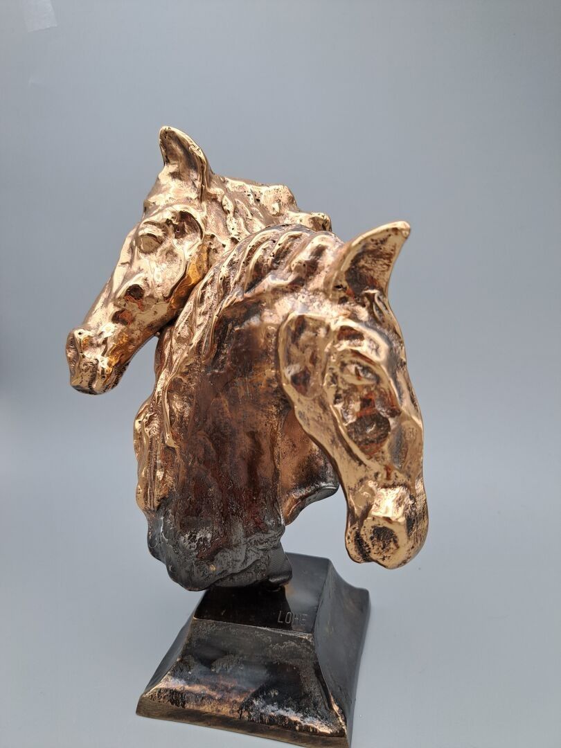 LOHE Yves (1947) - Têtes de chevaux - Sculpture in bronze with fading patina, signed on the base - Height: 21 cm