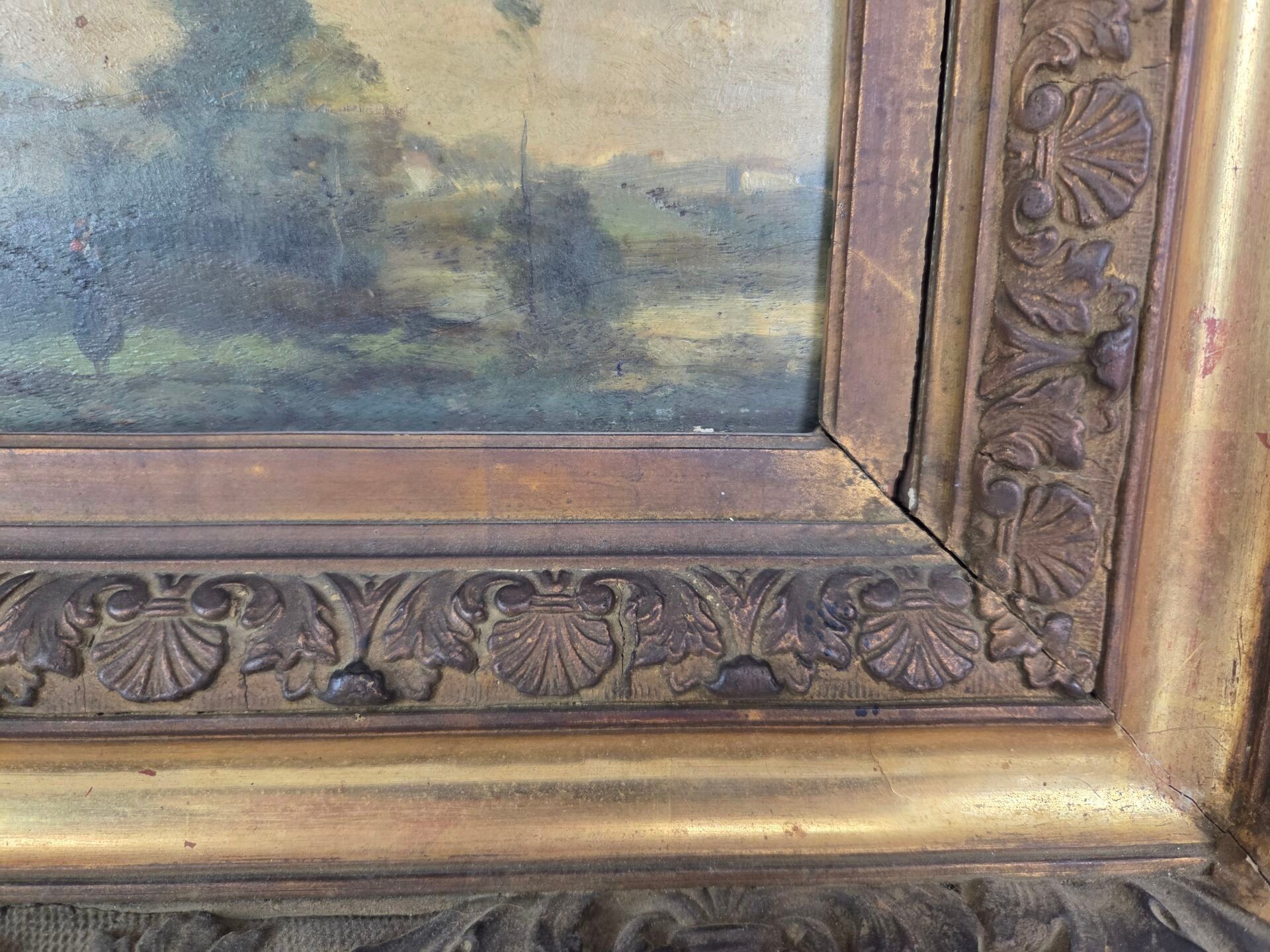 Follower of Corot, animated landscape, oil on panel, frame w…