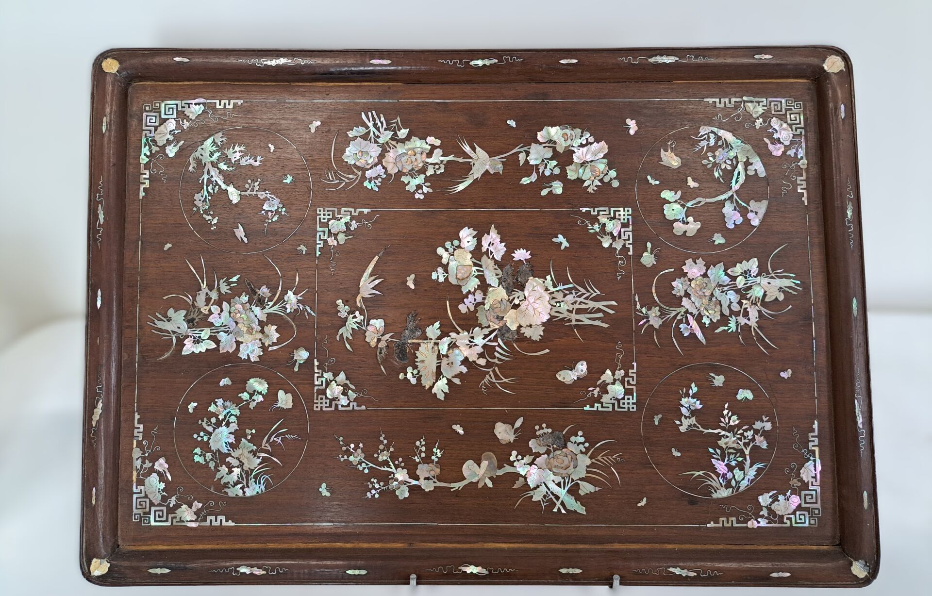 Rosewood tray, burgundy inlay, Vietnam - 44 x 64 cm ( missing )