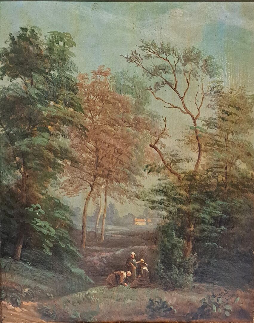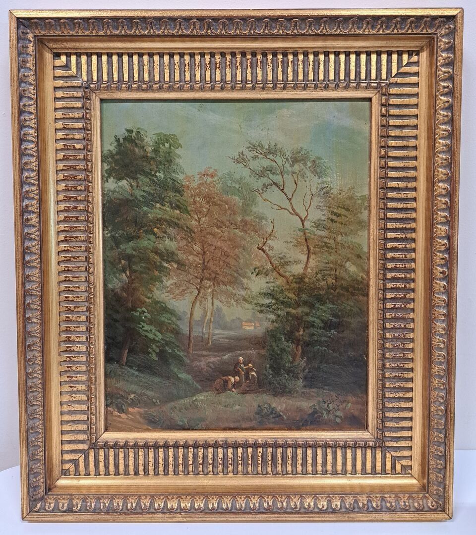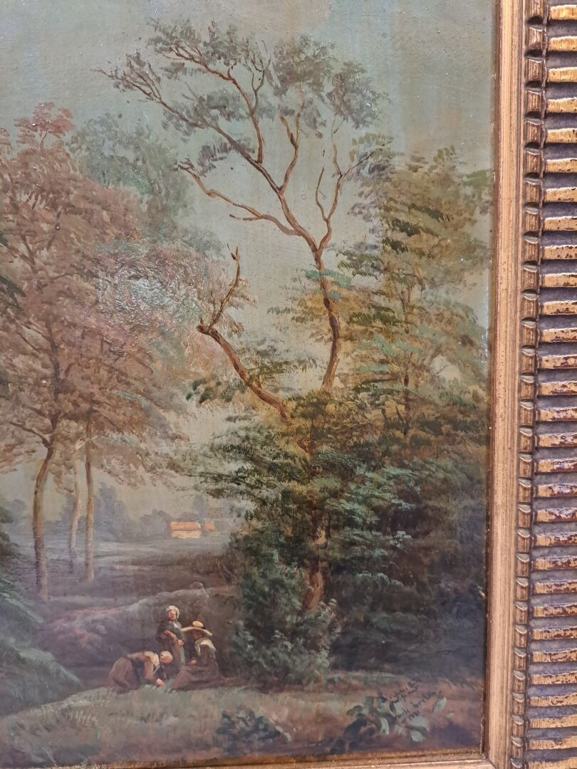 Emile BRETON (1831-1902) - Paysage animé au sous-bois, oil on panel, signed lower right - 35 x 28 cm