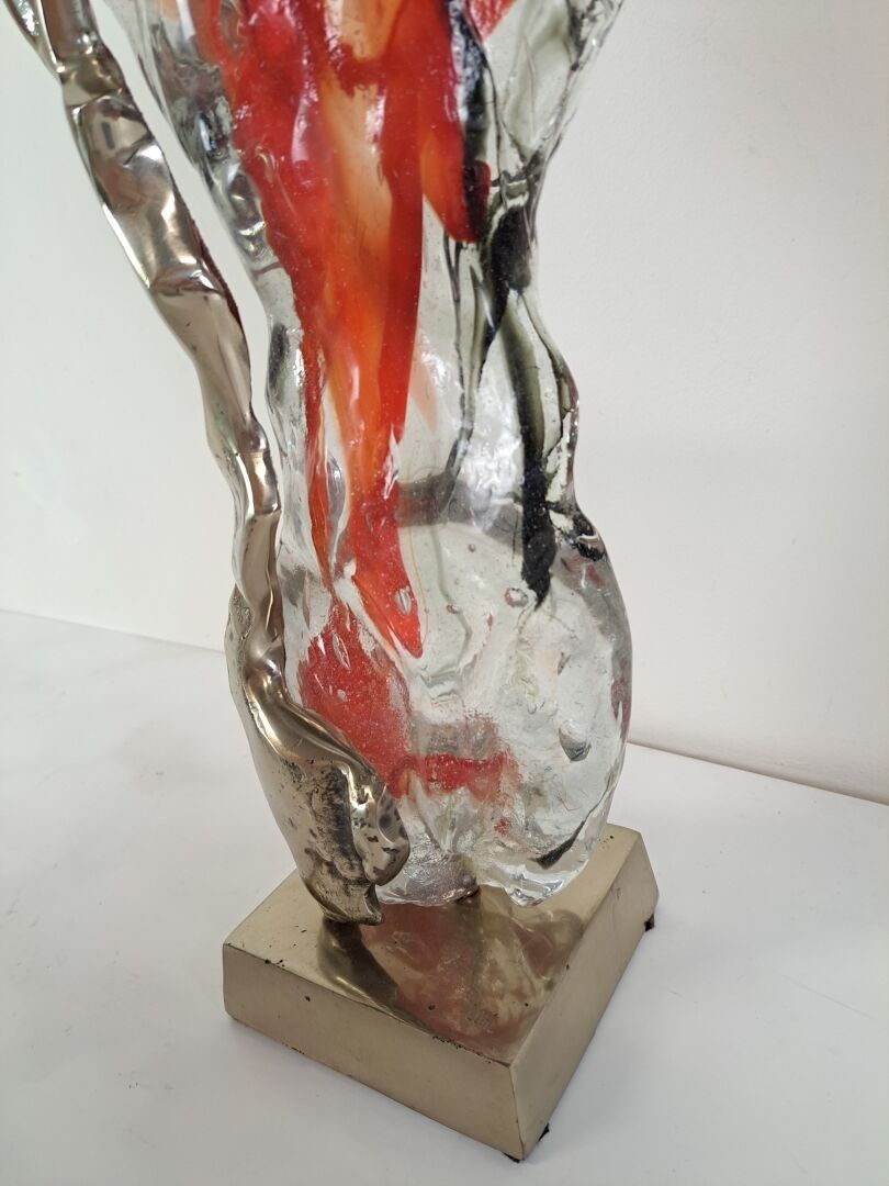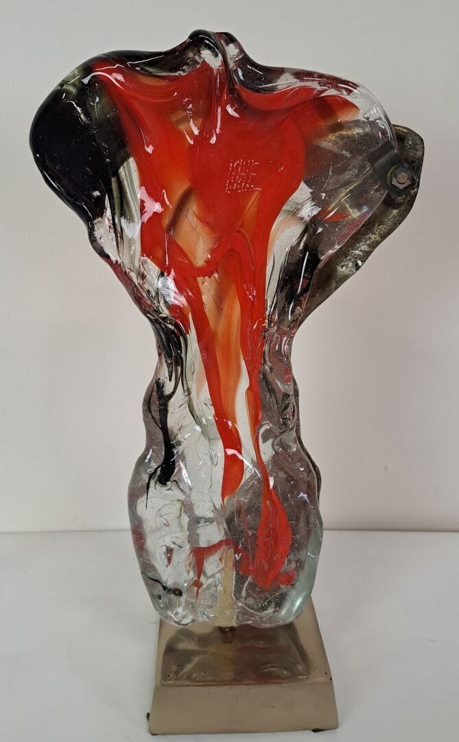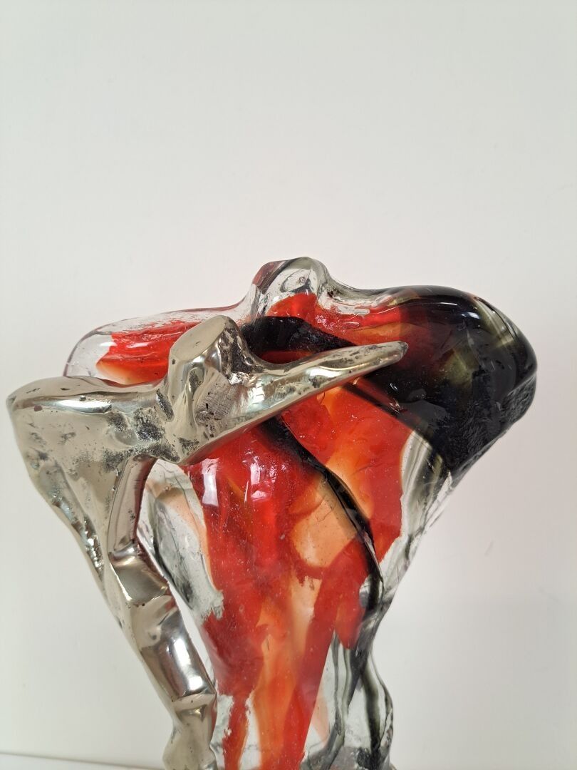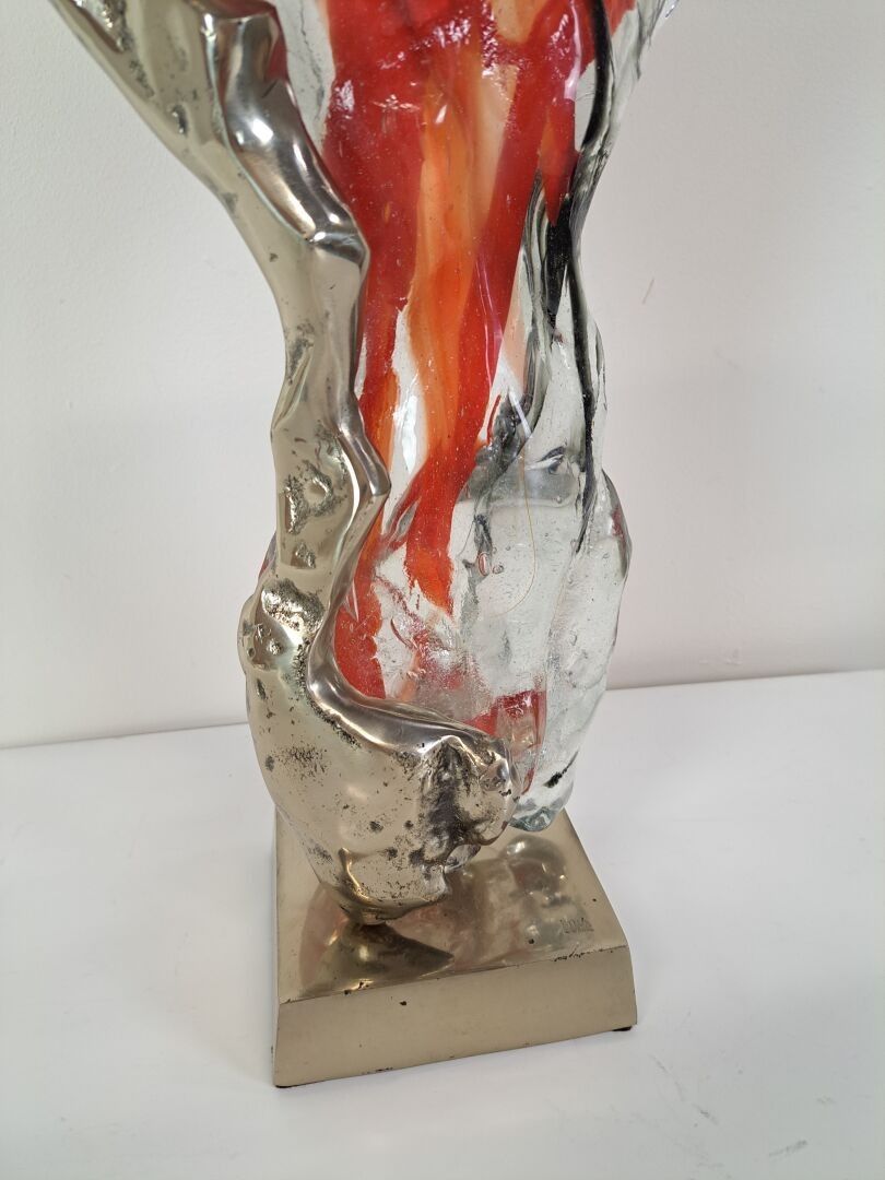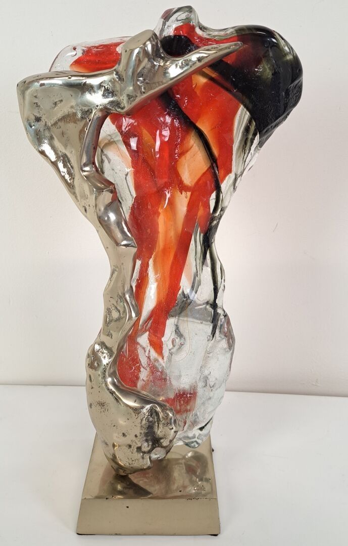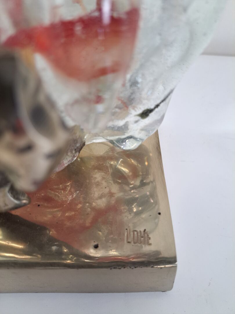 LOHE Yves (1947) - Buste d'homme - Sculpture in bronze with silver patina and coloured glass paste, signed on the base - Height: 43 cm