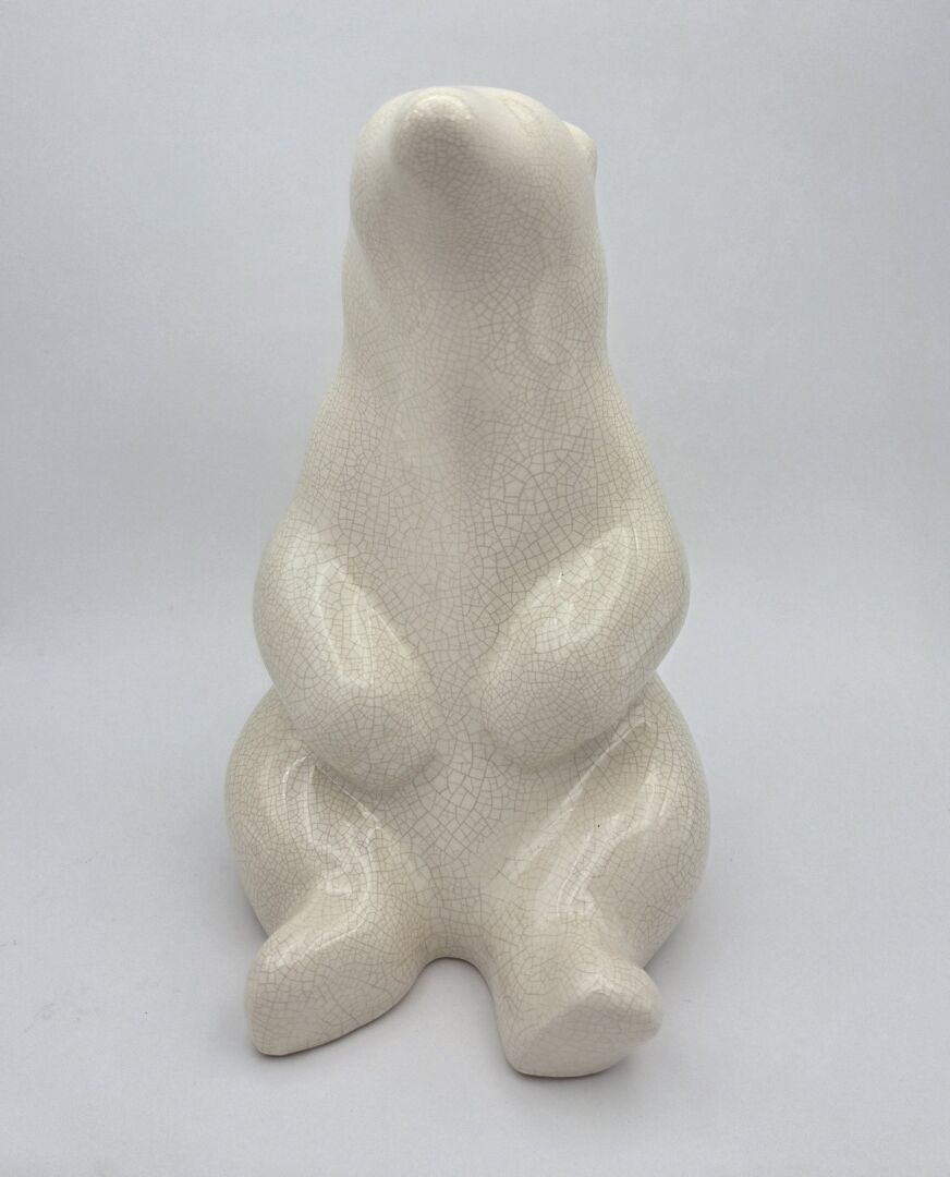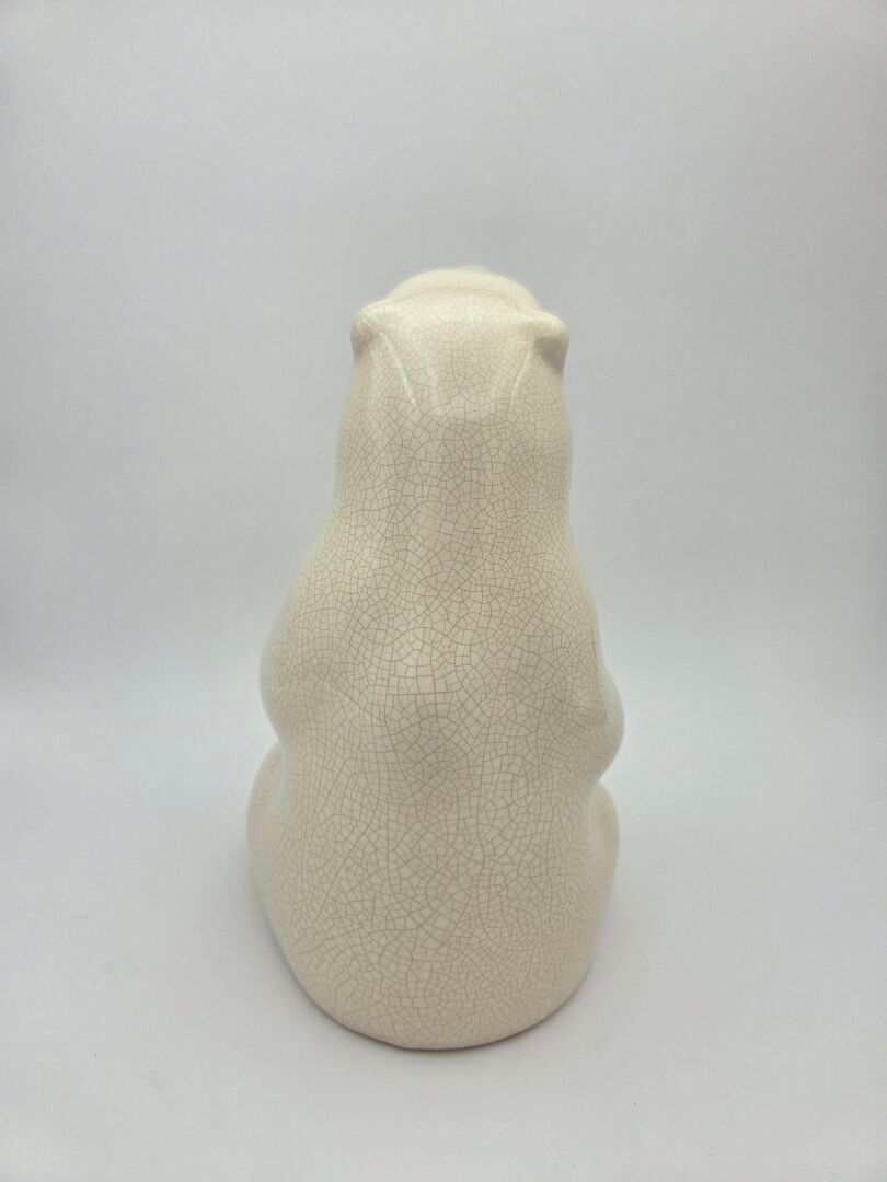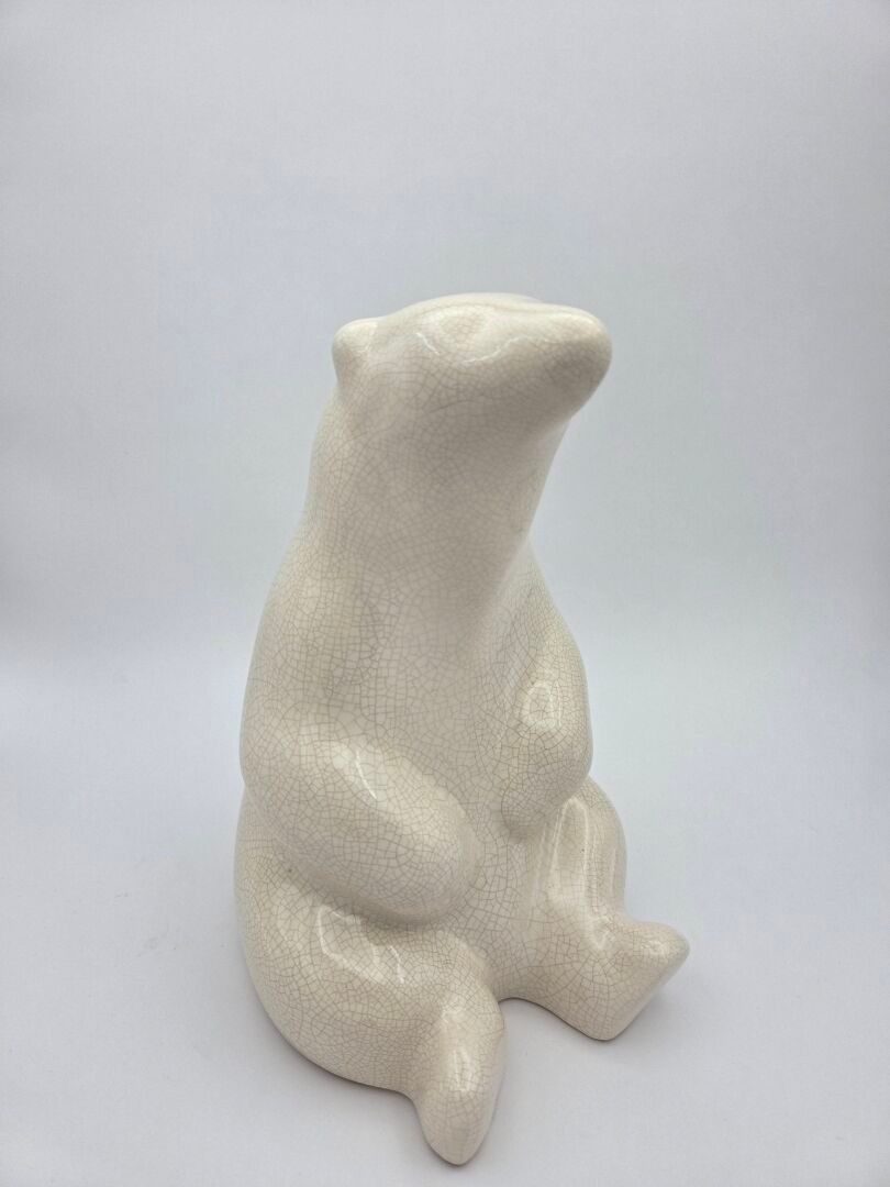 FAIENCERIE DE SAINT GERMAIN - Sitting bear in white crackled ceramic.