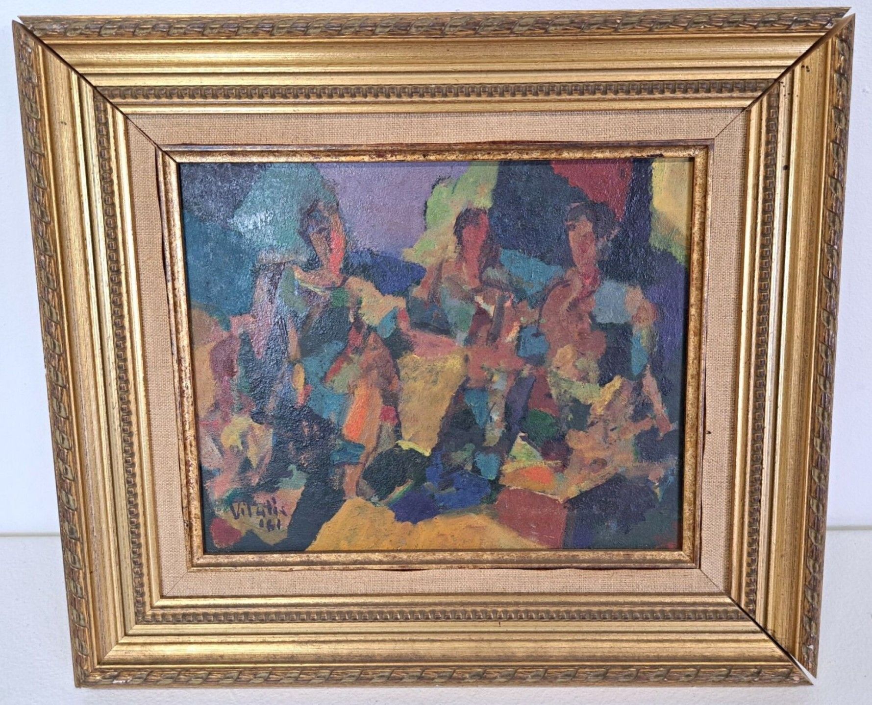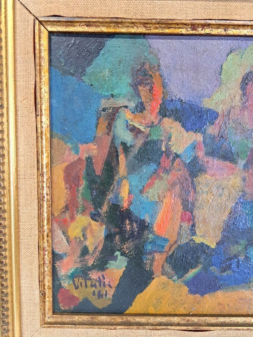 Macario VITALIS (1898-1989). The Three Women, oil on panel, signed and dated lower left - 22 x 27 cm
