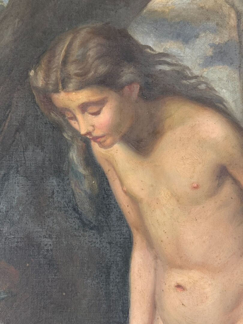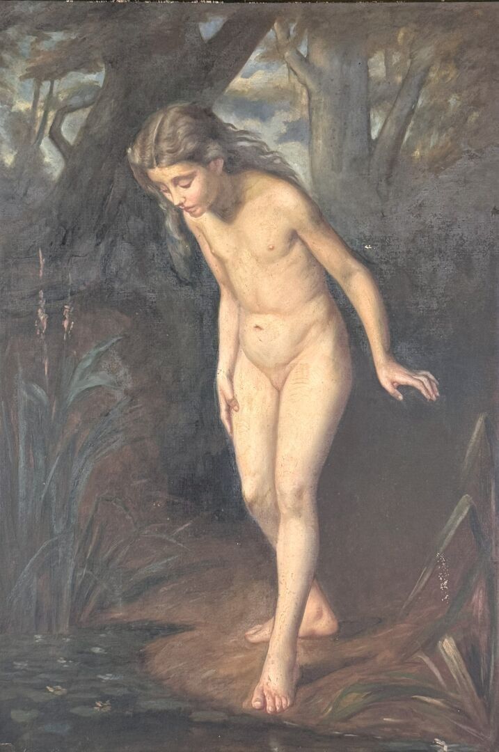 Gaston DE LA TOUCHE, known as Gaston LA TOUCHE (1854-1913), Young girl discovering her beauty in the mirror of a spring, oil on canvas, 92 x 64.5 cm (slight loss of material)
