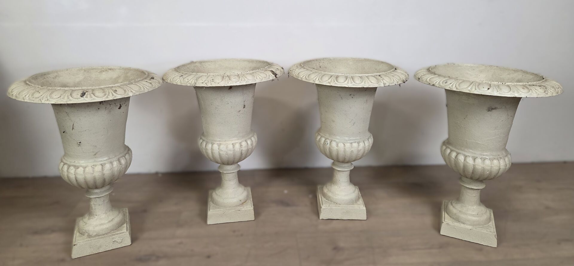 Four Medici vases in cast iron with off-white patina - Heigh…