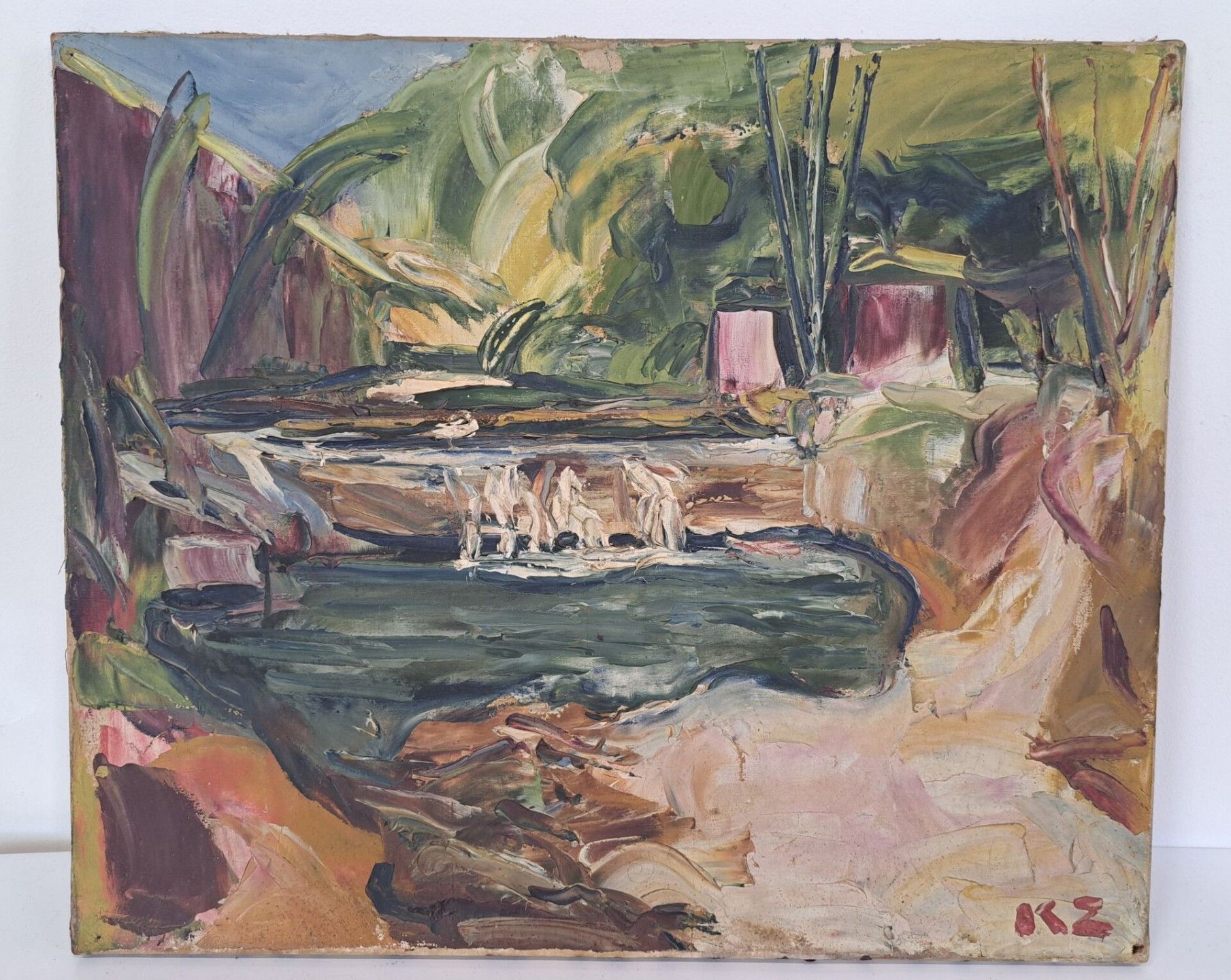Kazimierz ZIELENIEWSKI (Tomsk 1888 - Naples 1931), The house with the haystacks, exhibition 1929 55x46