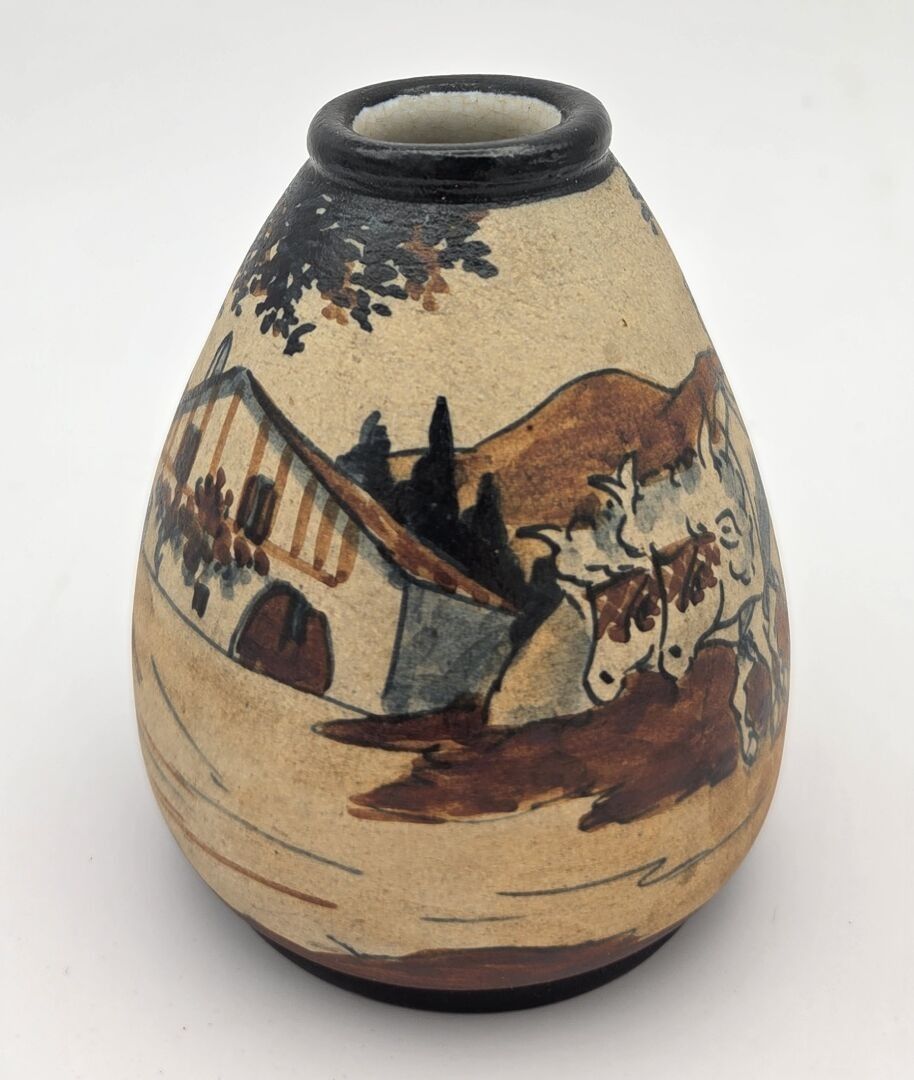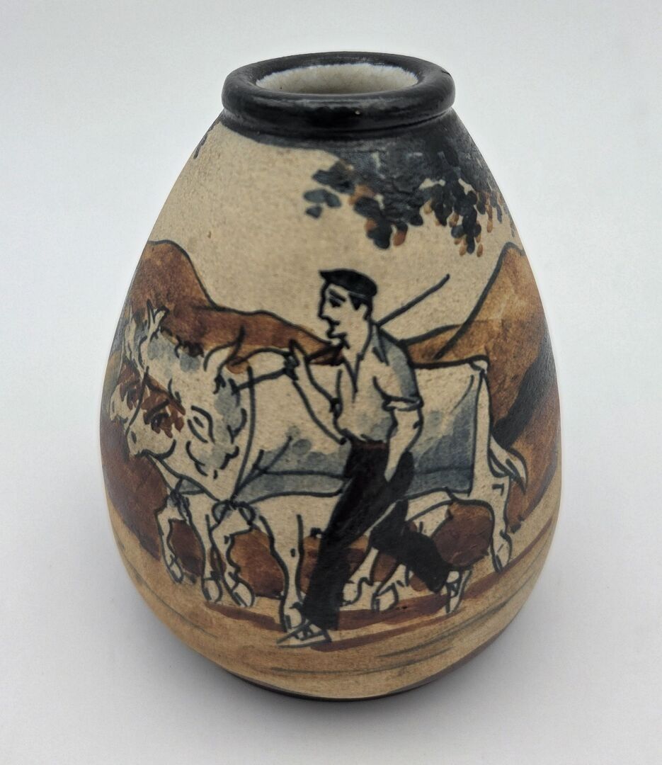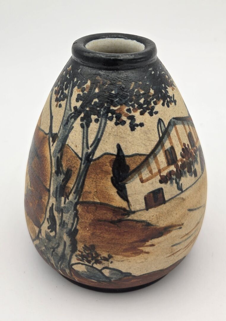 Small stoneware vase with rotating decoration depicting a shepherd and his flock - Height: 9 cm
