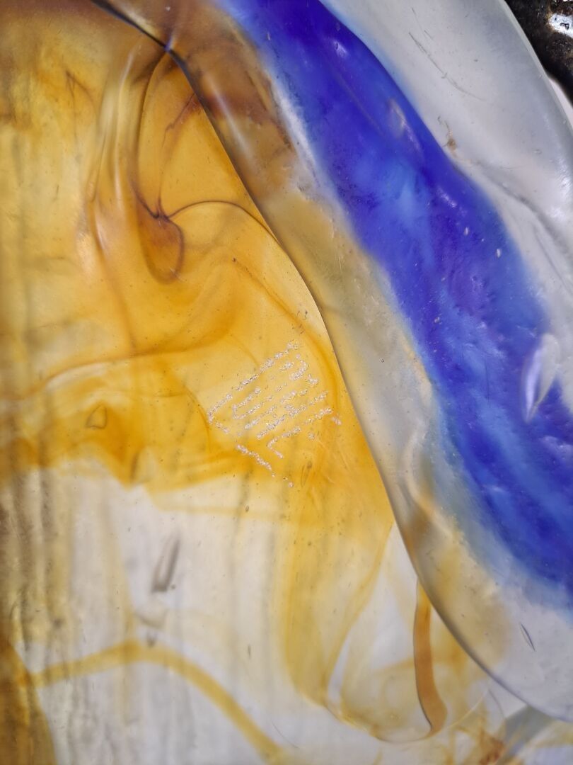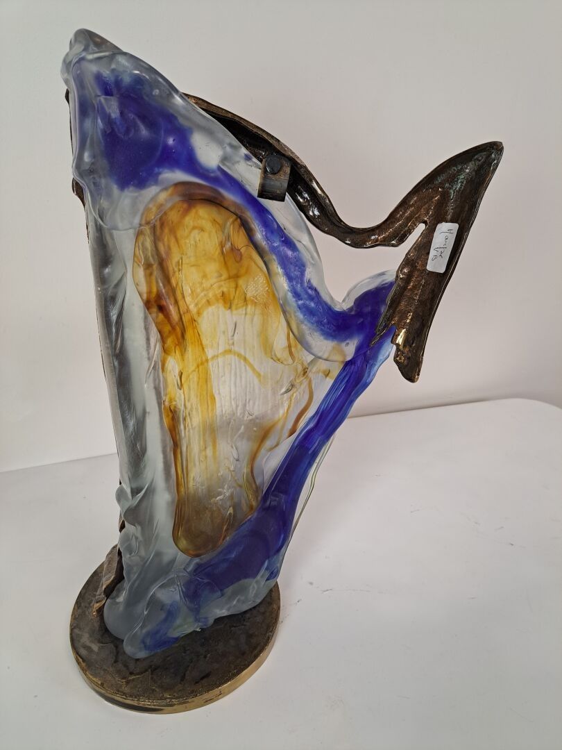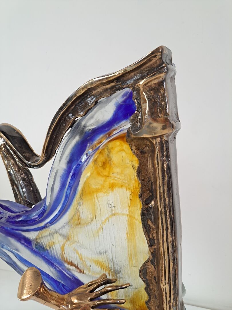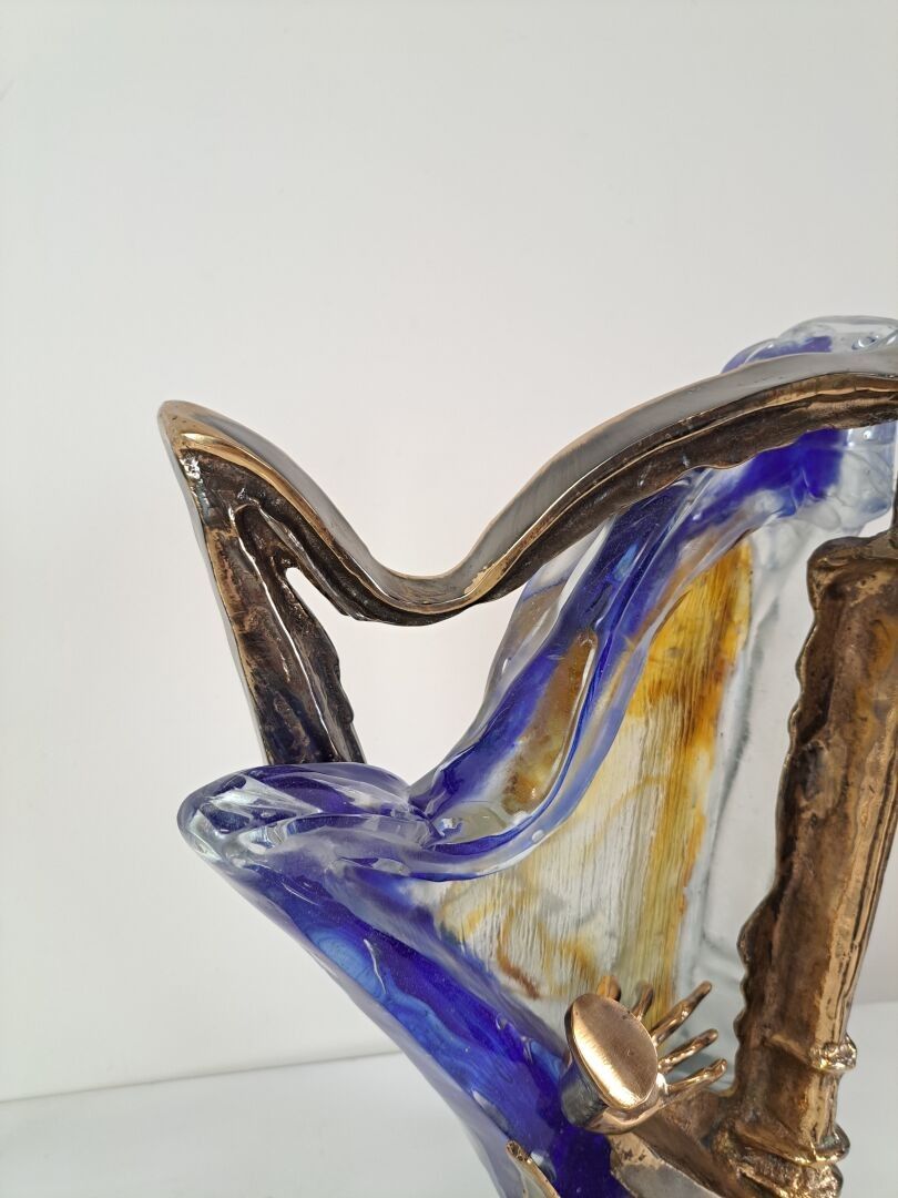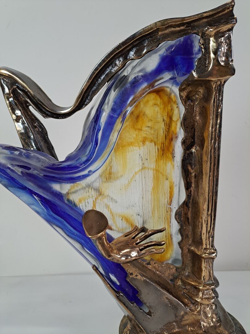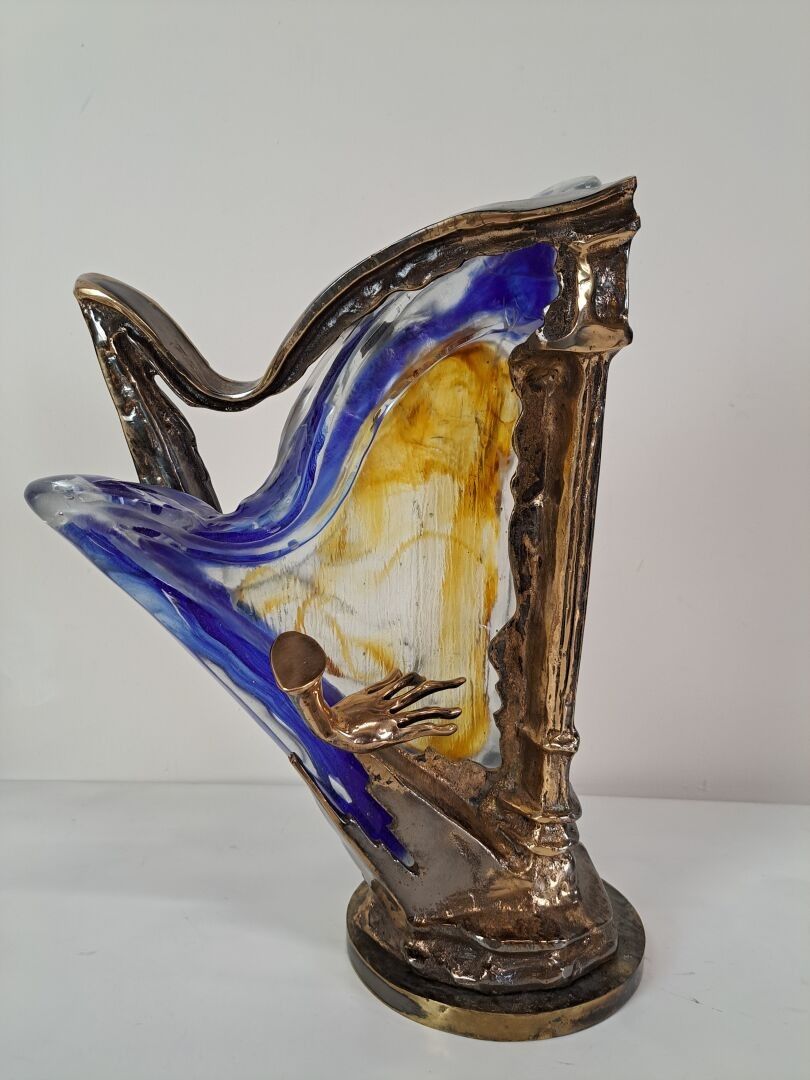 LOHE Yves (1947) - Lyre - Sculpture in gilded bronze and coloured glass paste, signed on the base - Height: 47 cm