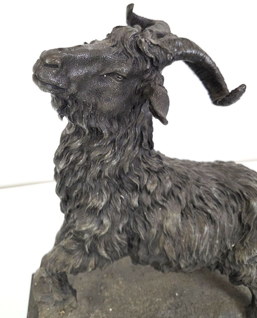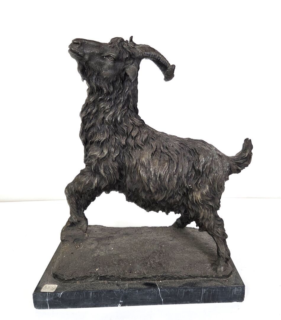 In the style of Isidore BONHEUR - Goat standing on a rock in bronze with brown patina, late 19th century, on a marble base - Height: 42 cm