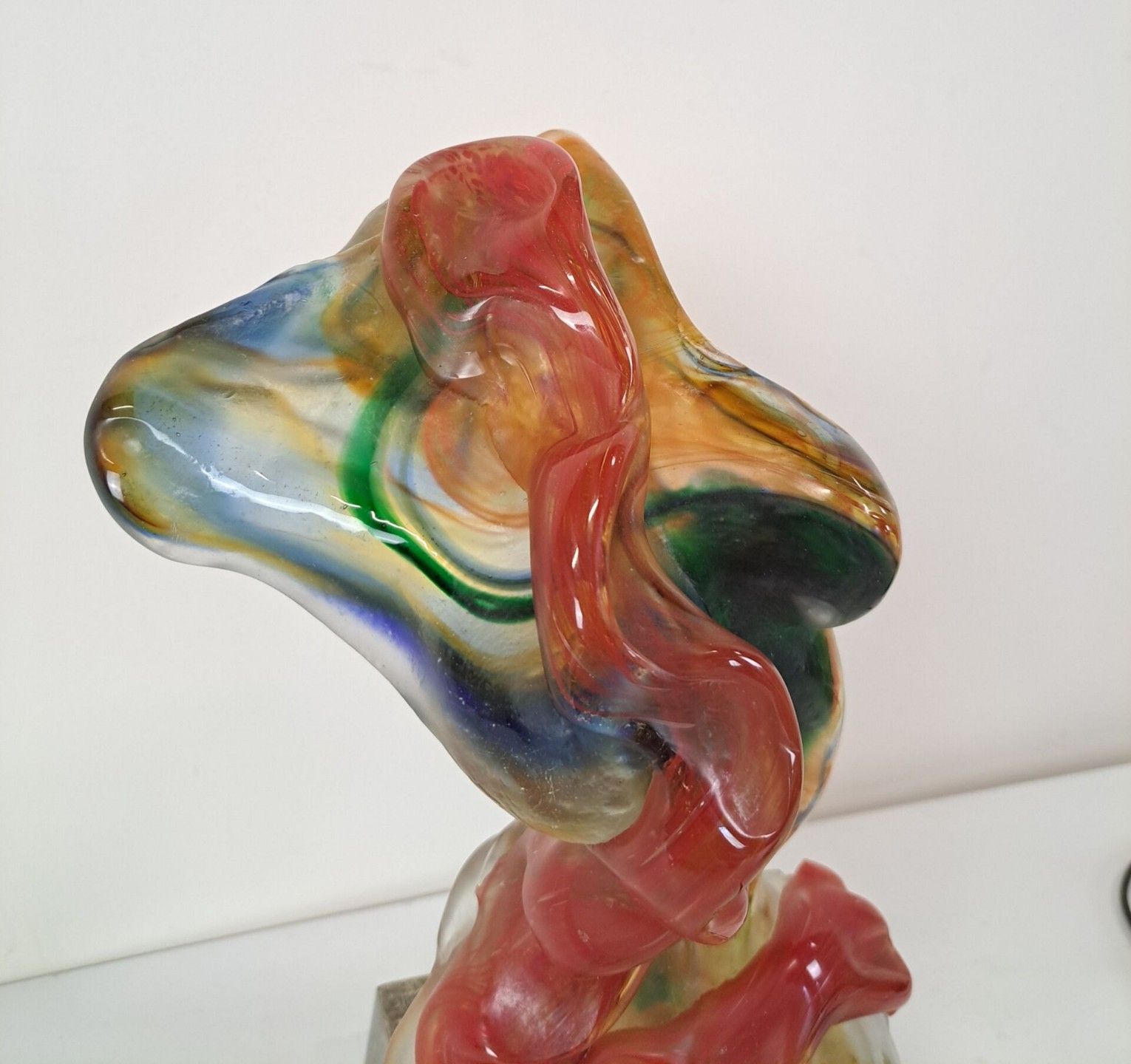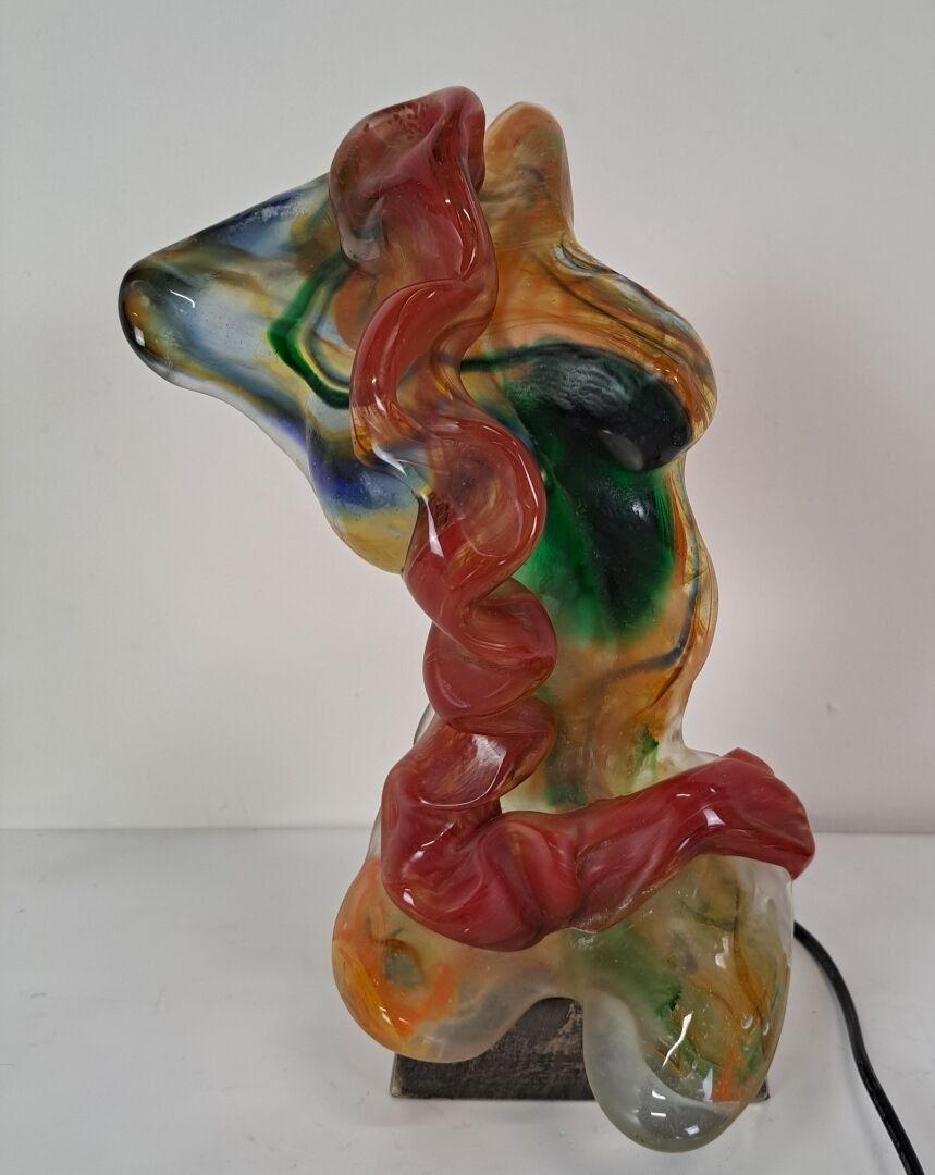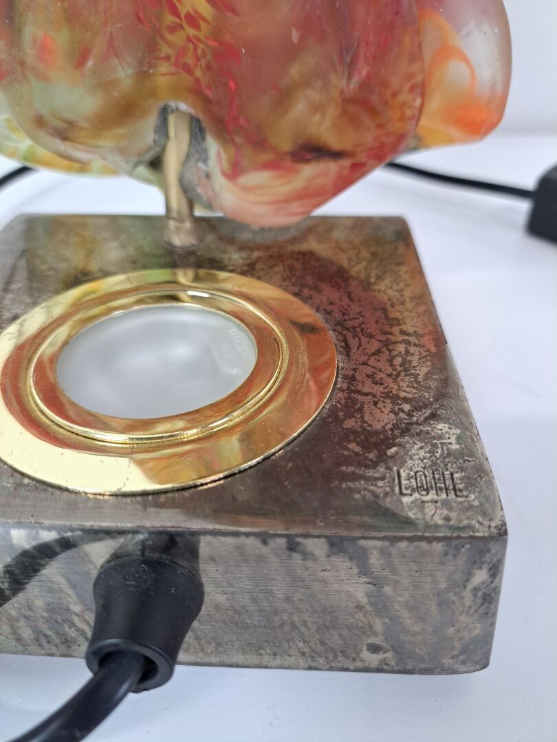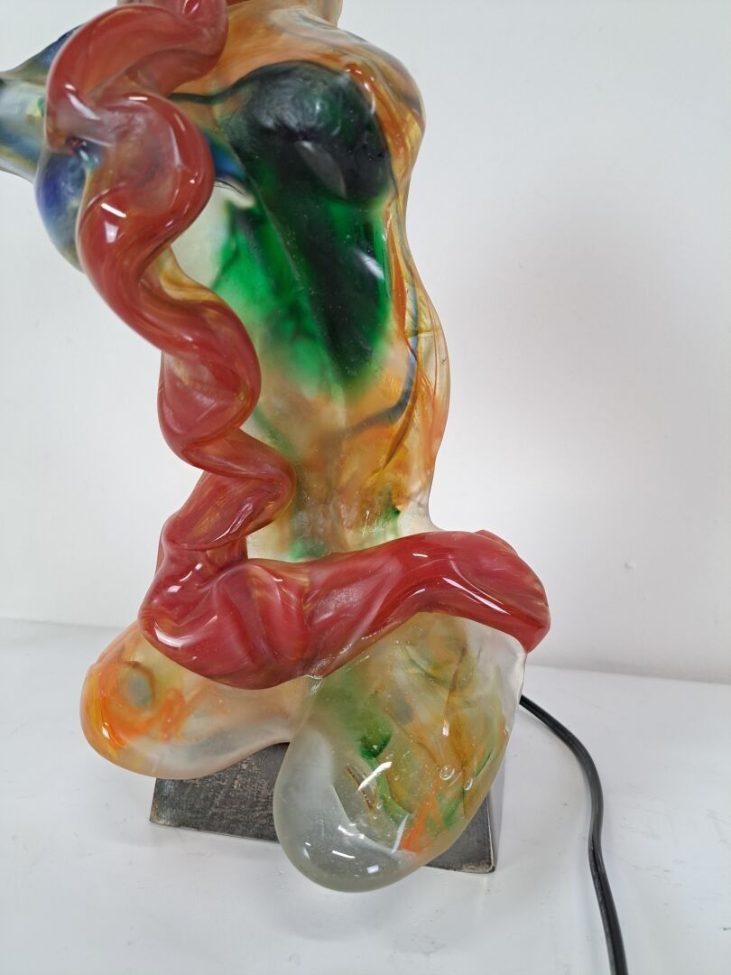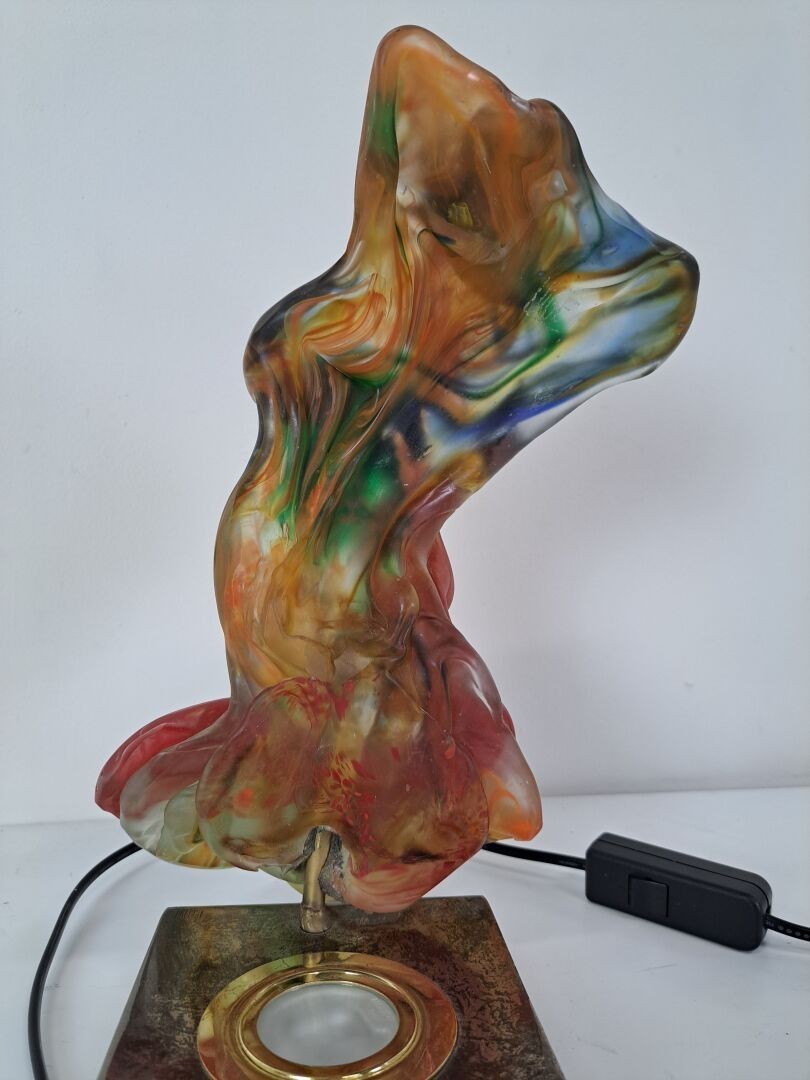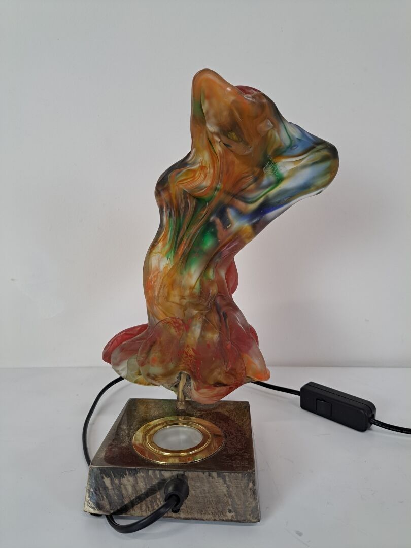 LOHE Yves (1947) - Lampe buste de femme - Sculpture in bronze and coloured glass paste, signed on the base - Height : 32.5 cm