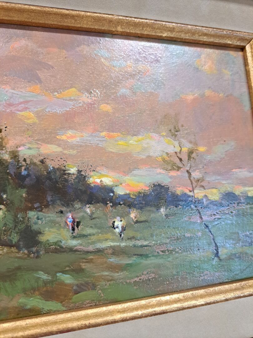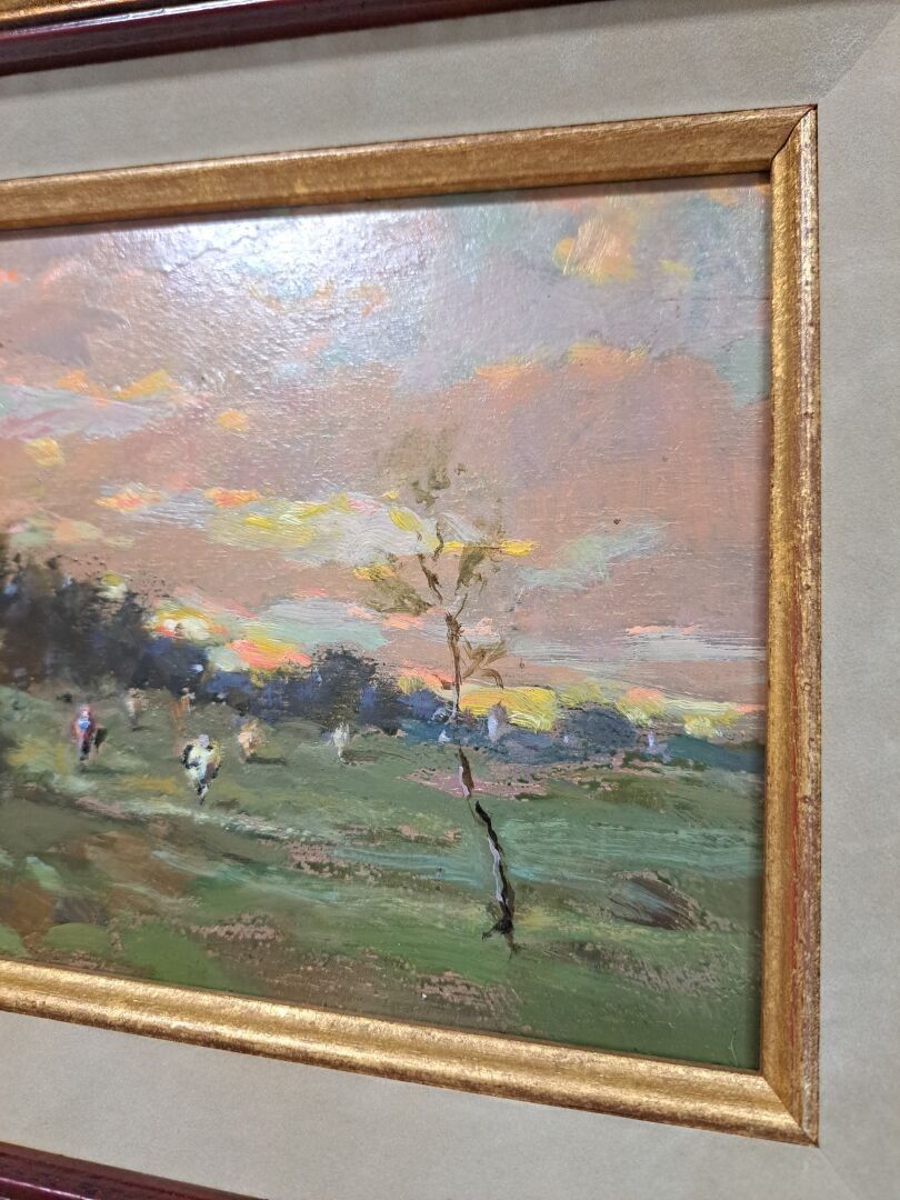 DAVID Henri (XXth), "Sunset", oil on panel, signed lower left - 16 x 20 cm