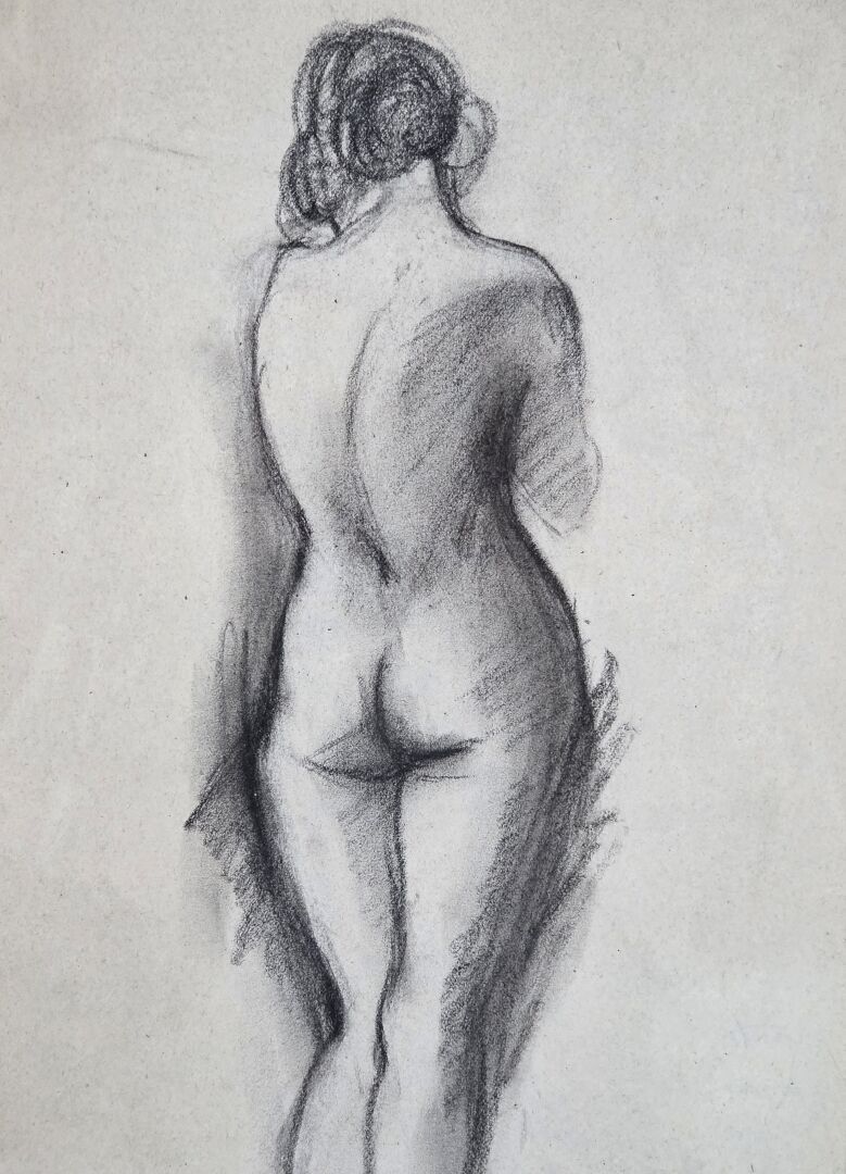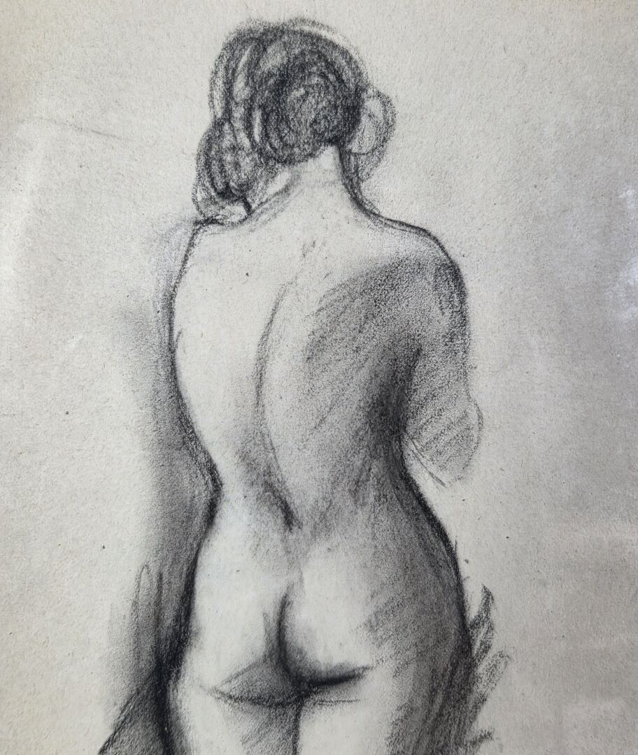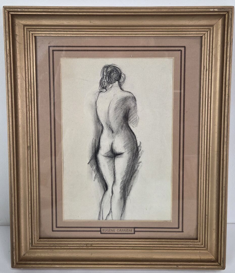 Eugène CARRIERE (1849-1906) - Study of a nude woman from behind, charcoal, bears the stamp of the auction of the artist's studio held in Bordeaux on 12.12.1984, 23.5 x 16 cm (view)