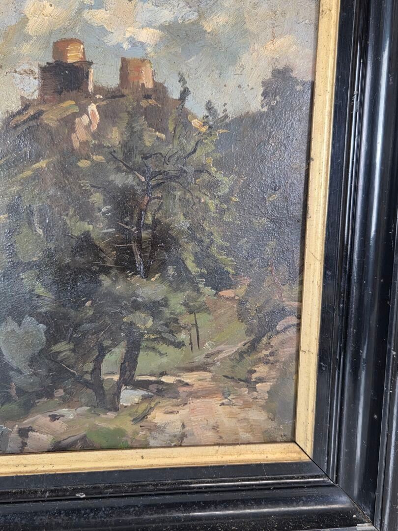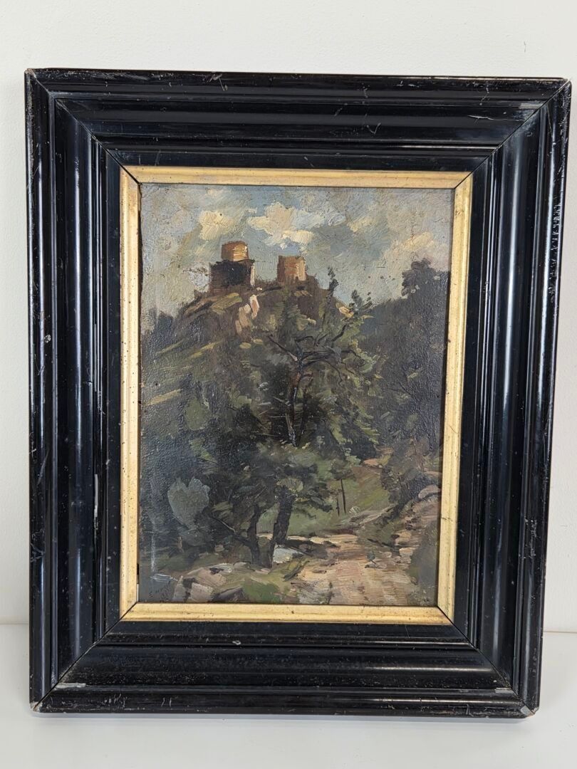 Emile NOIROT (1853-1924), View of the château from a path, oil on board, signed lower left and dated 1888, 31 x 22 cm