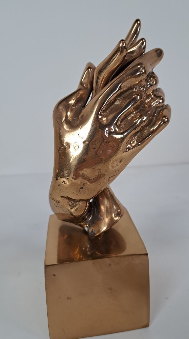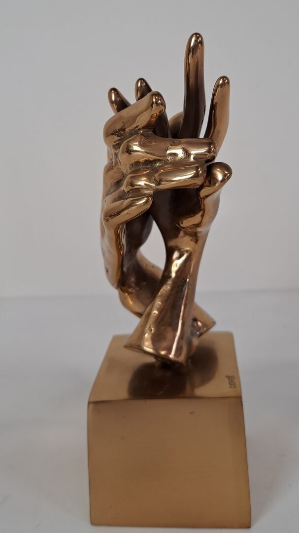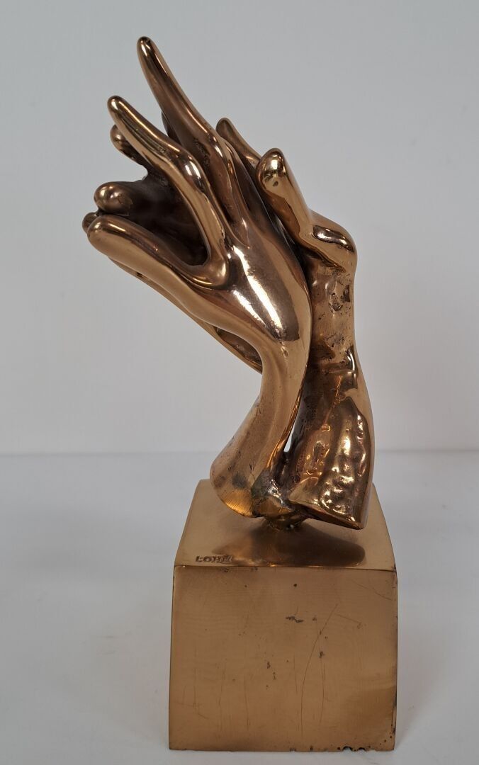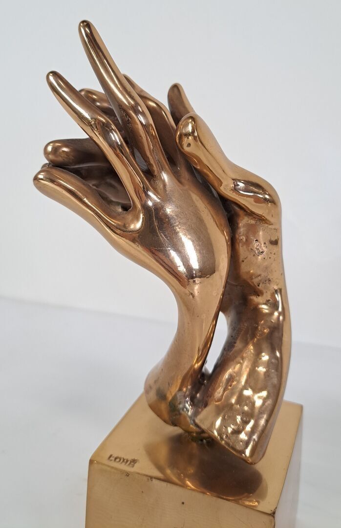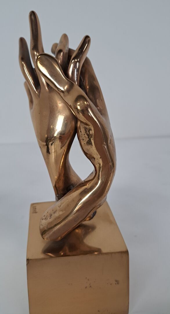 LOHE Yves (1947) - Mains entrelacées - Gilt bronze sculpture, signed on the base - Height : 21.5 cm