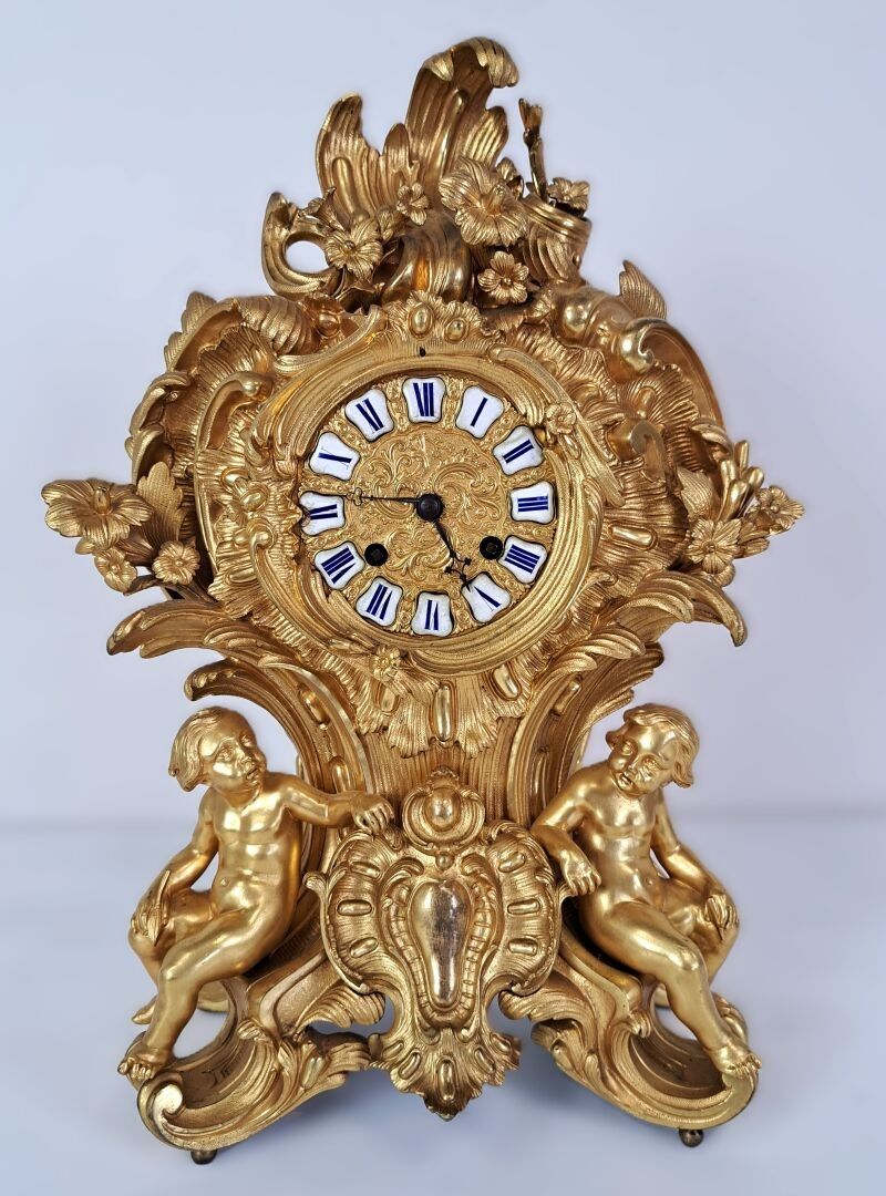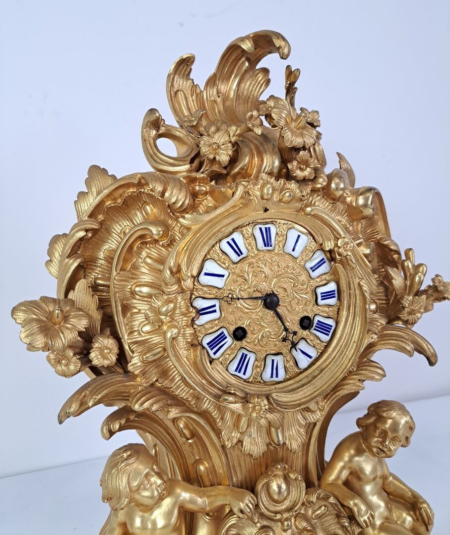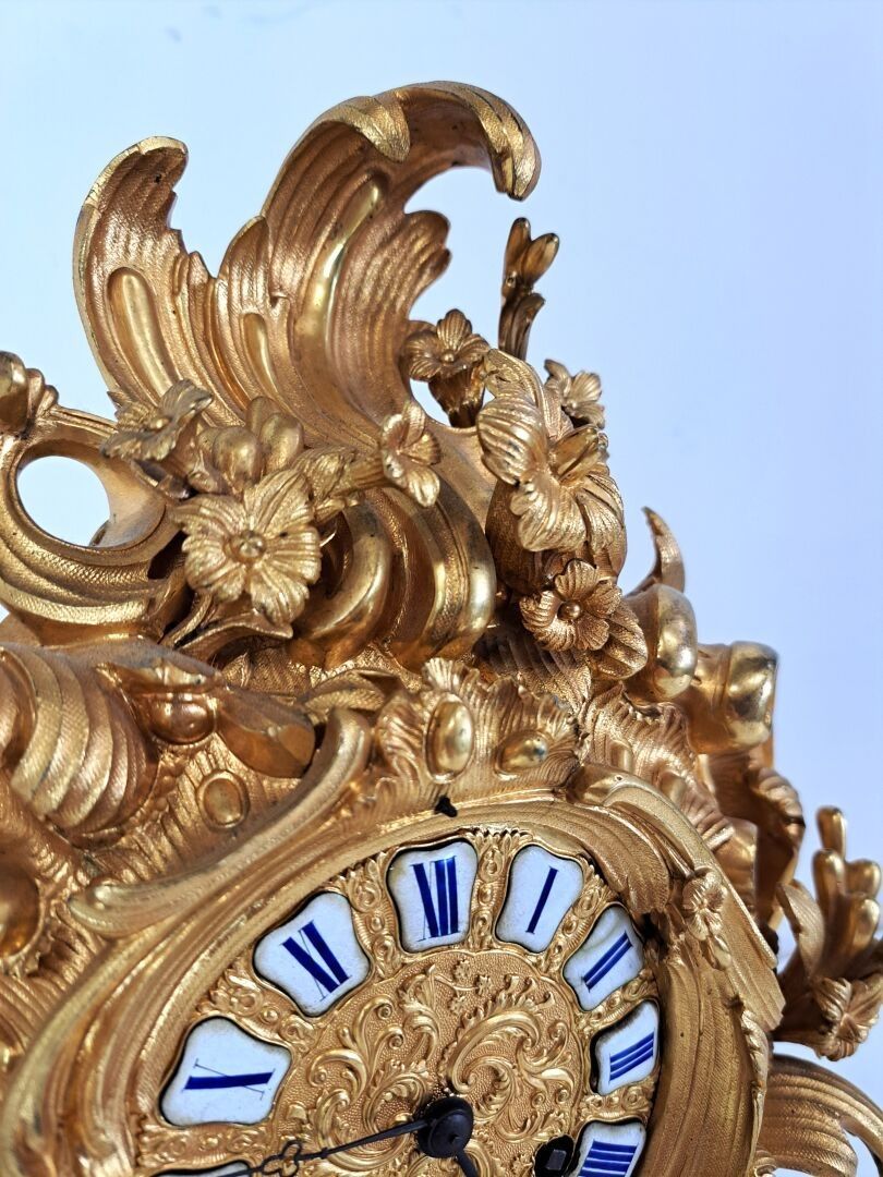 Richly carved gilt bronze cartel clock in the Louis XV style…