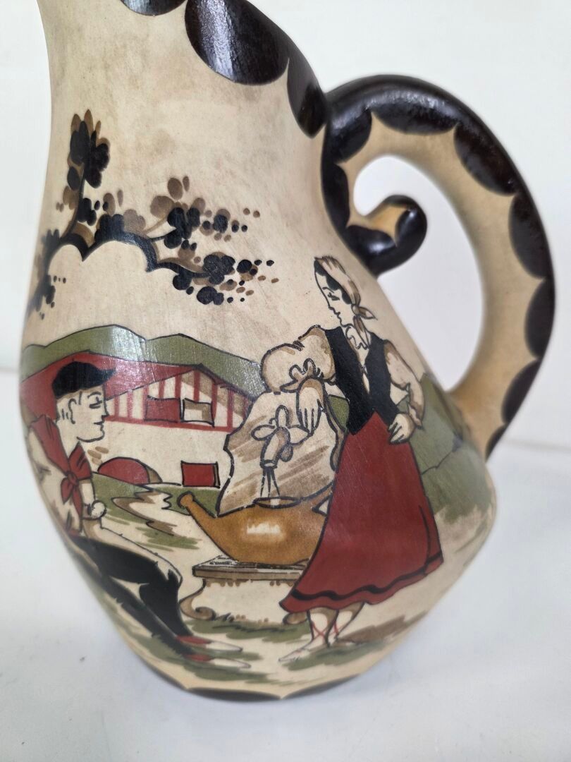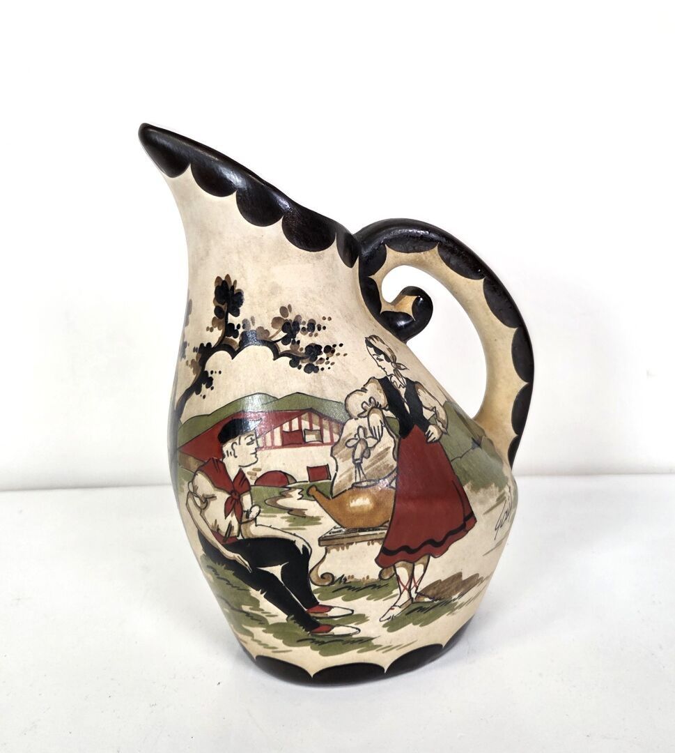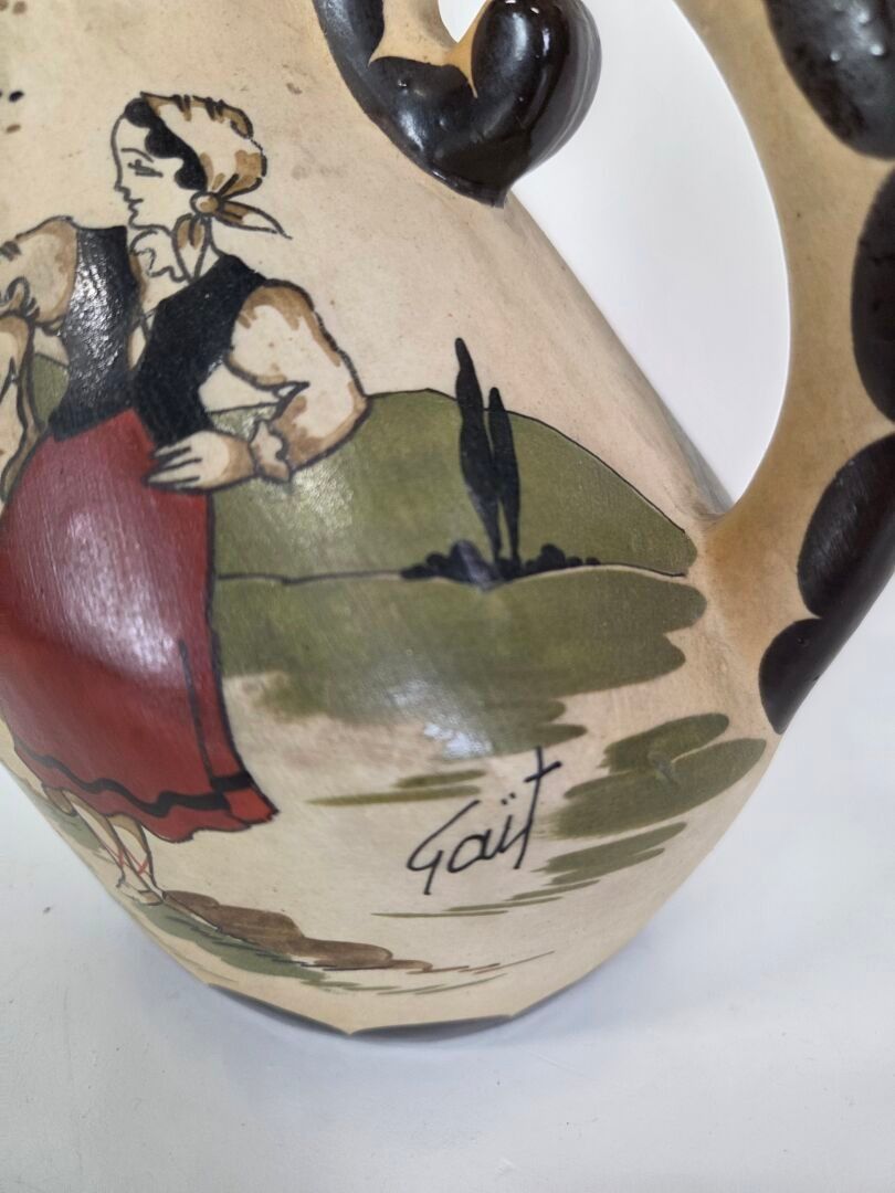 GAITAUD HENDAYE - Stoneware jug with polychrome decoration of shepherd and shepherdess. Signed in the decoration and on the reverse - Height : 23 cm