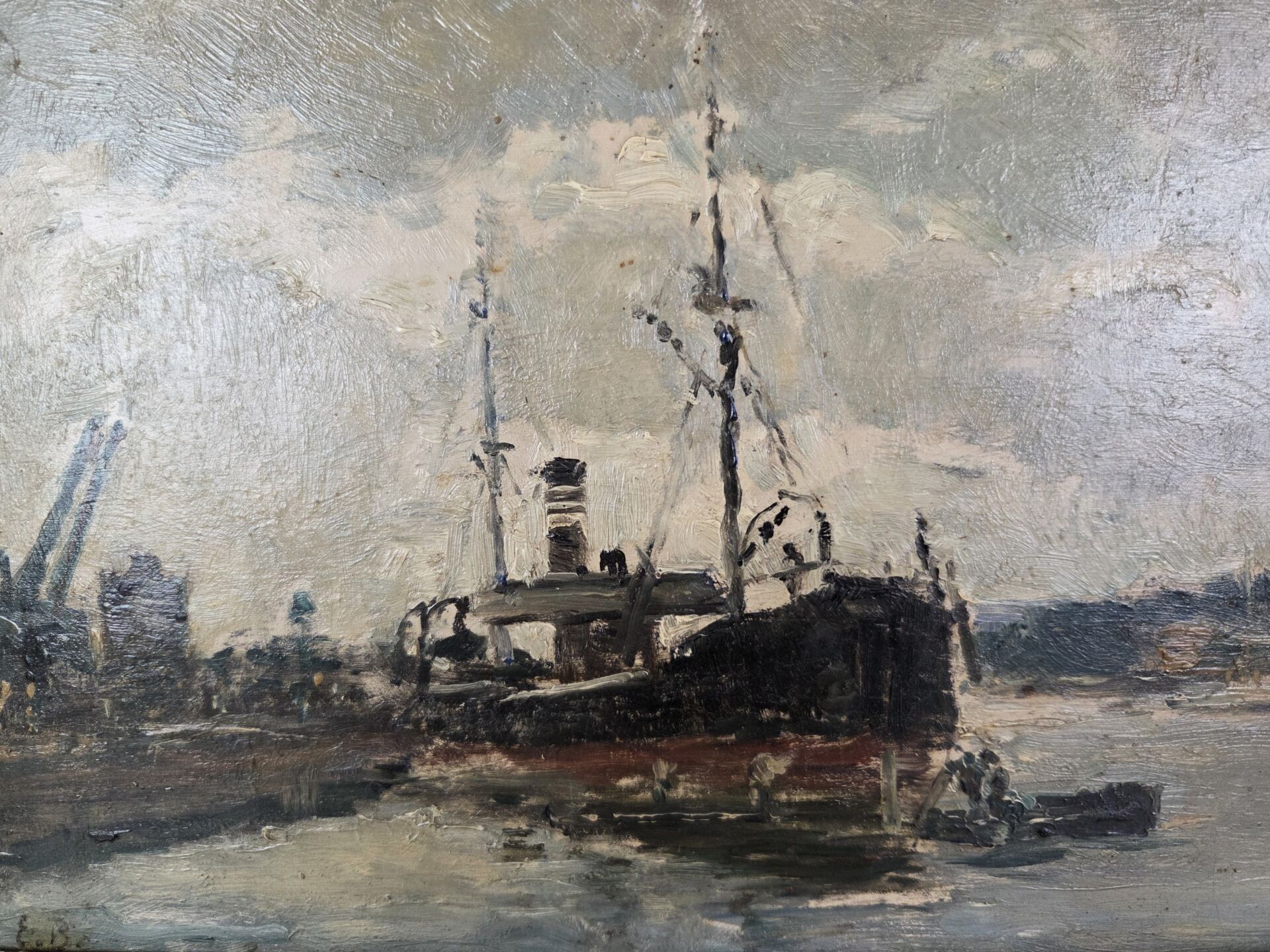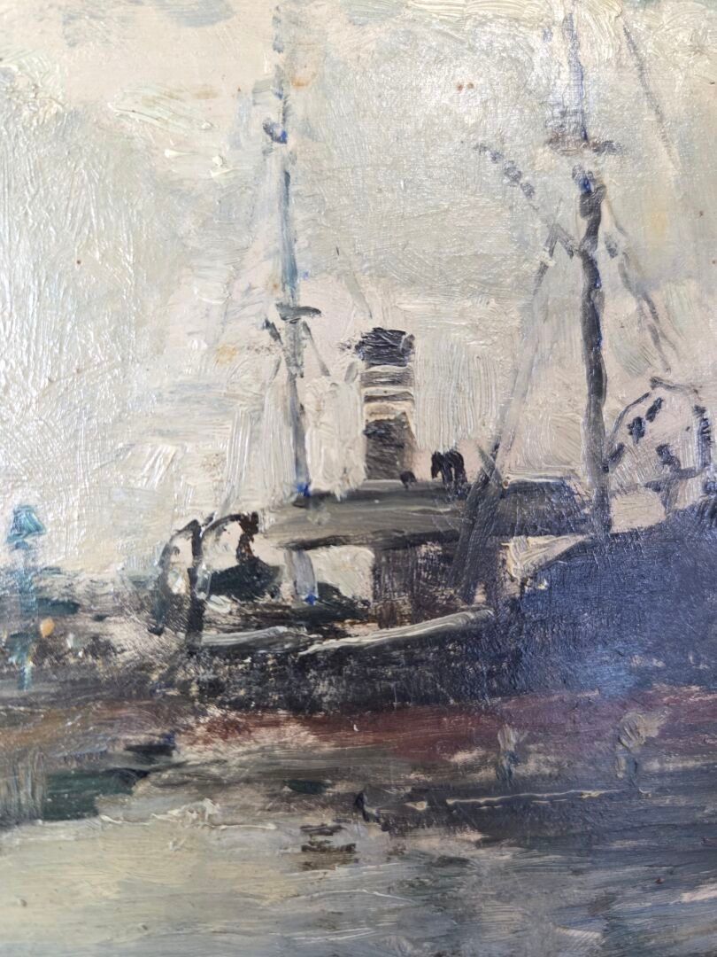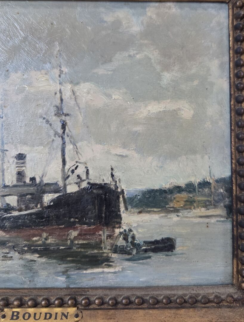In the style of Eugène BOUDIN- Port, oil on panel, monogrammed lower left - 18 x 22.5 cm