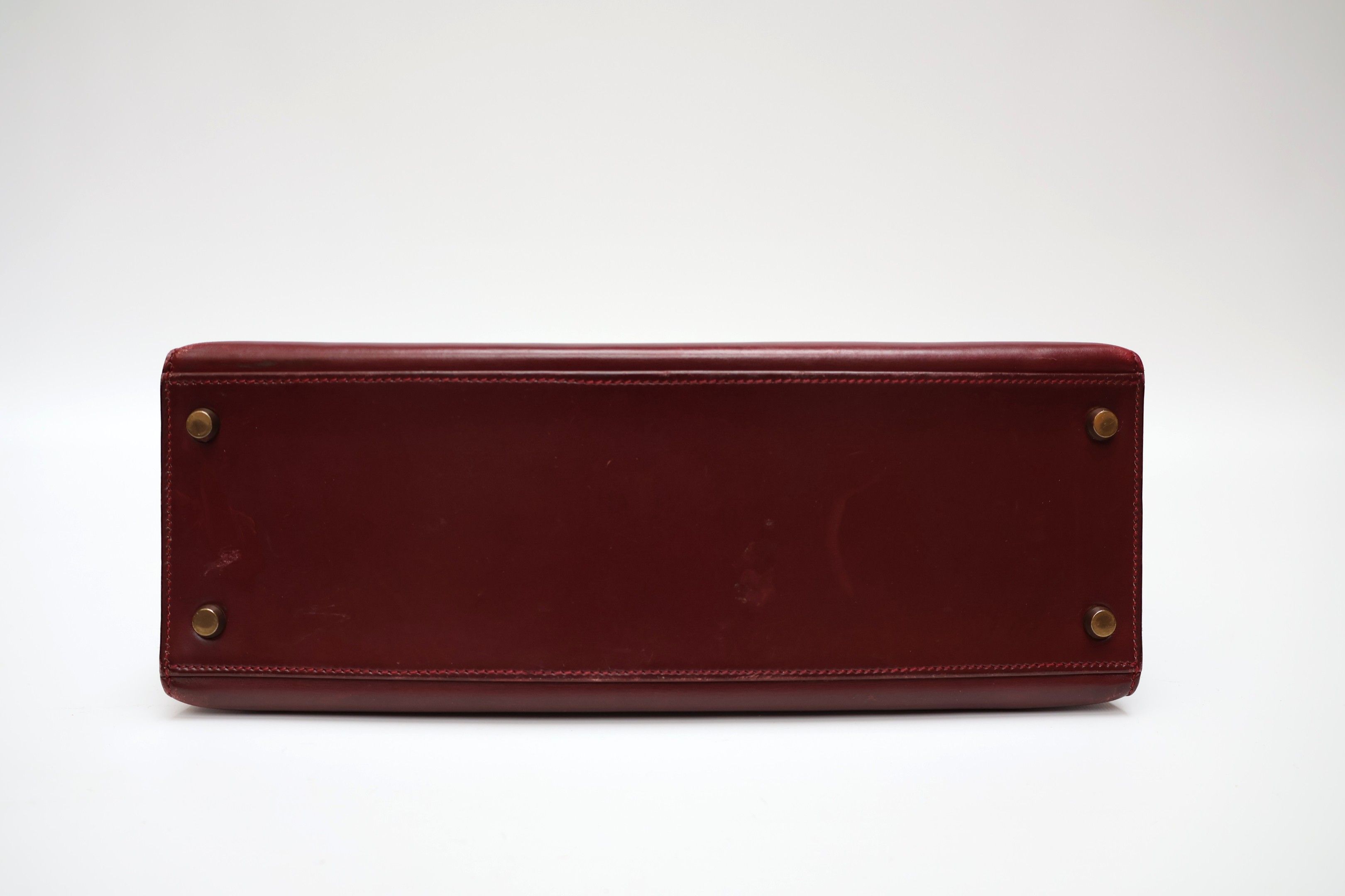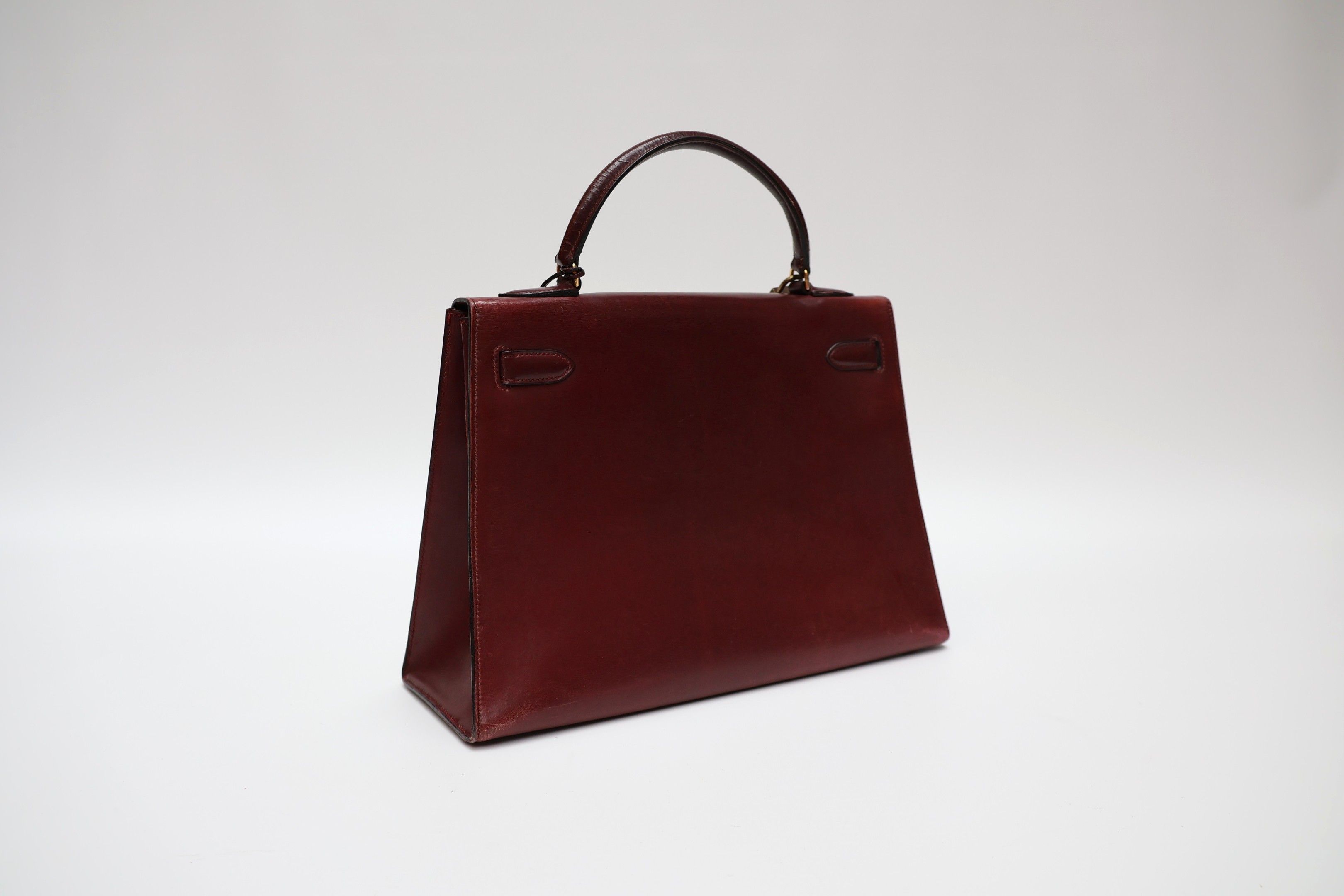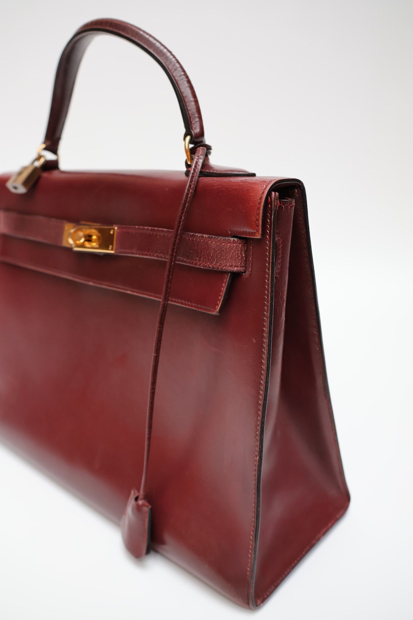 Premium HERMÈS Paris Kelly 32" handbag in burgundy "box" leather wit…