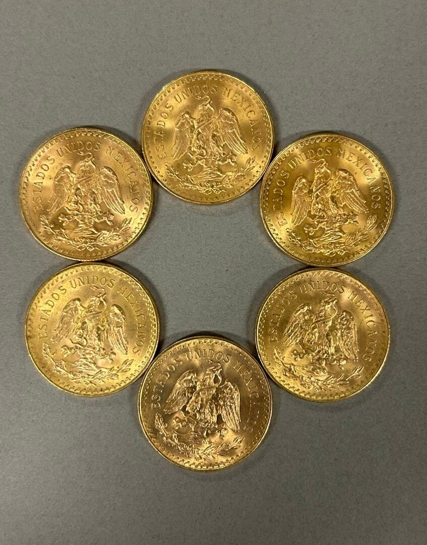 Set of 6 gold 50 peso coins. Type 100th anniversary of the i…