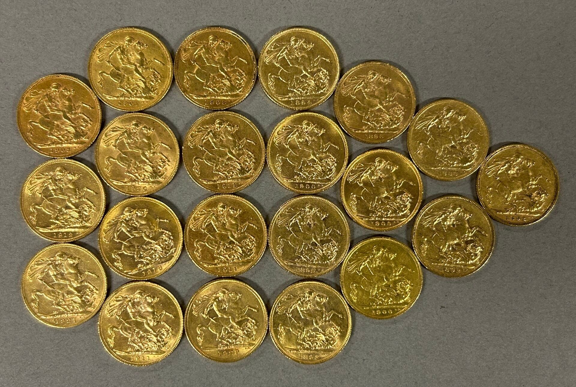 Premium Lot of 21 gold 1 sovereign coins comprising: