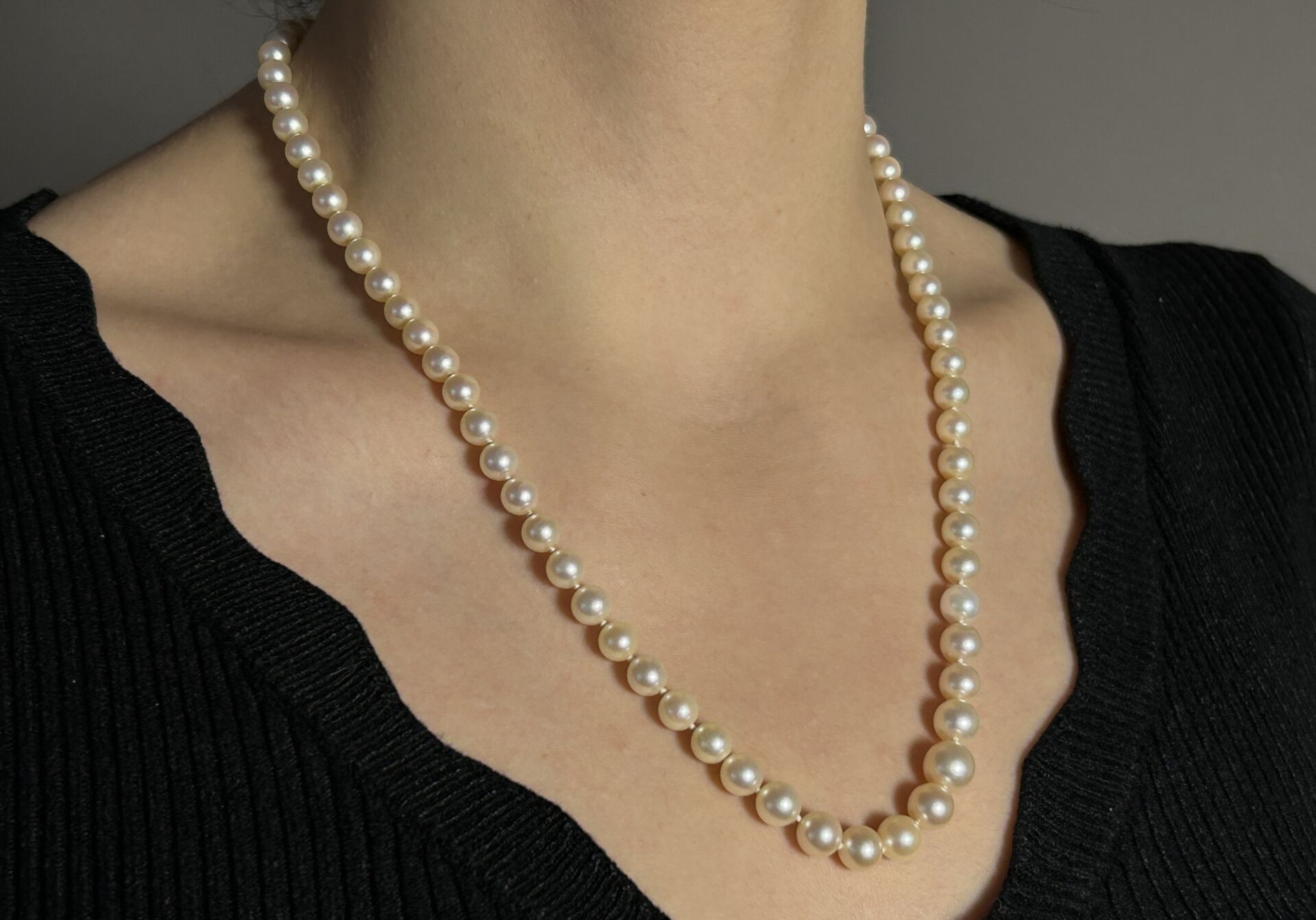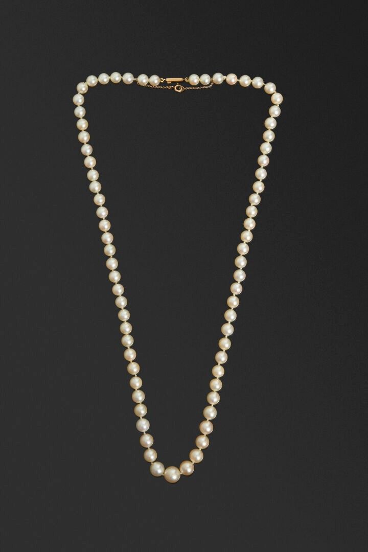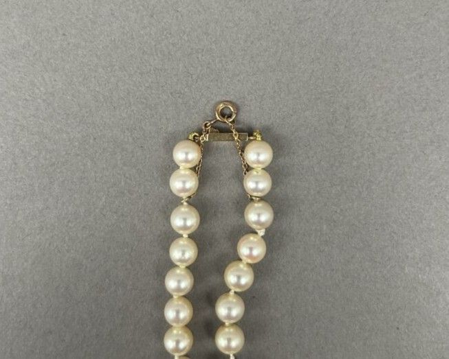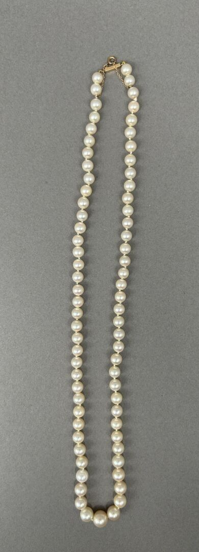 Necklace made of cultured pearls. 750°/°° (18 K) gold clasp with safety chain. Eagle head hallmark.