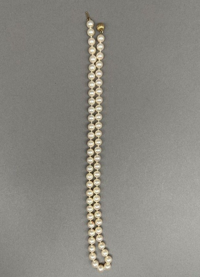 Choker necklace of cultured pearls. Ball clasp in 18K gold.