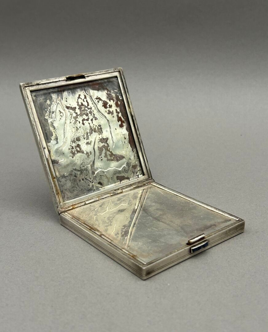 MARCHAK. Rectangular silver poudrier 950 °/°°. Hinged lid de…