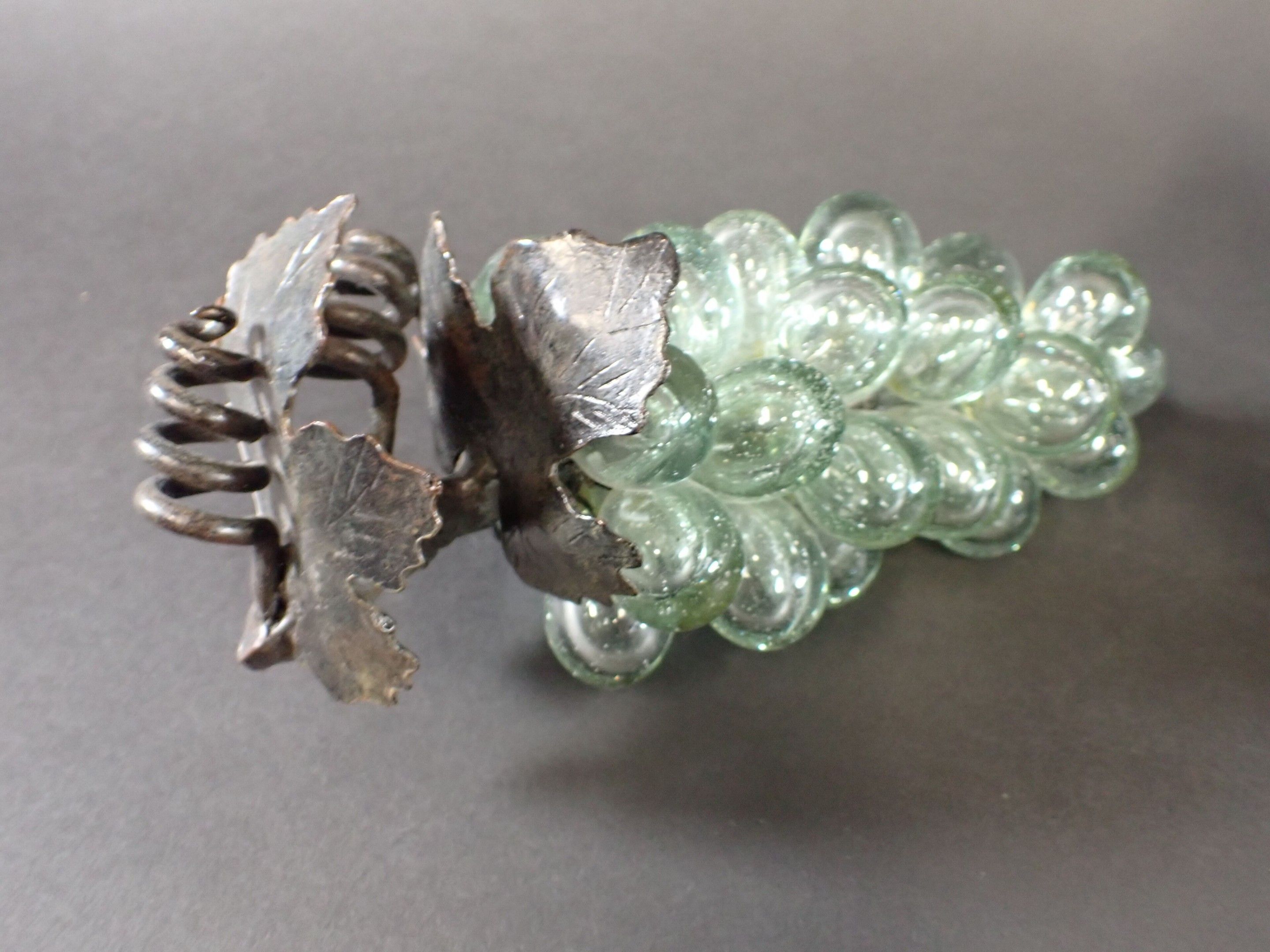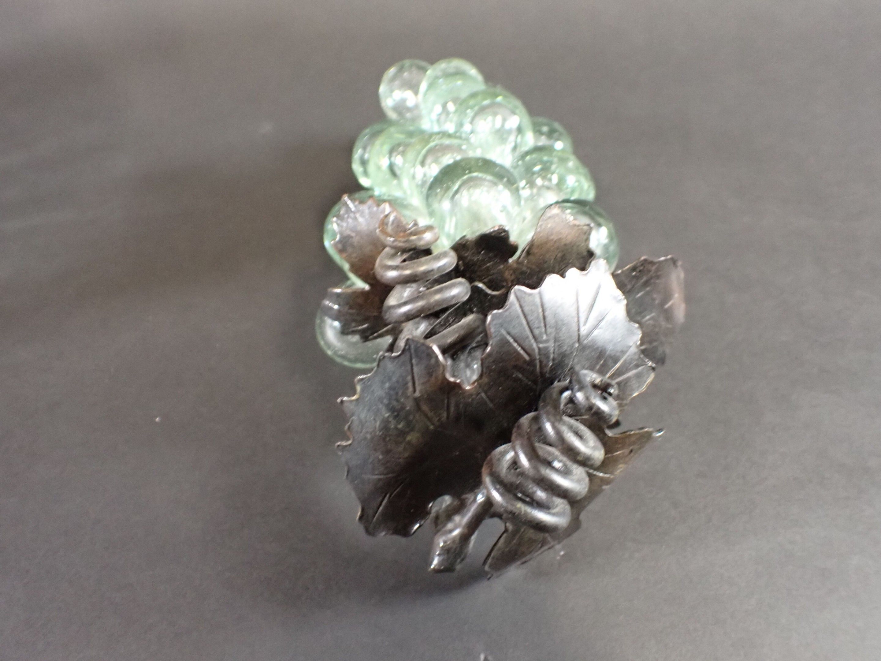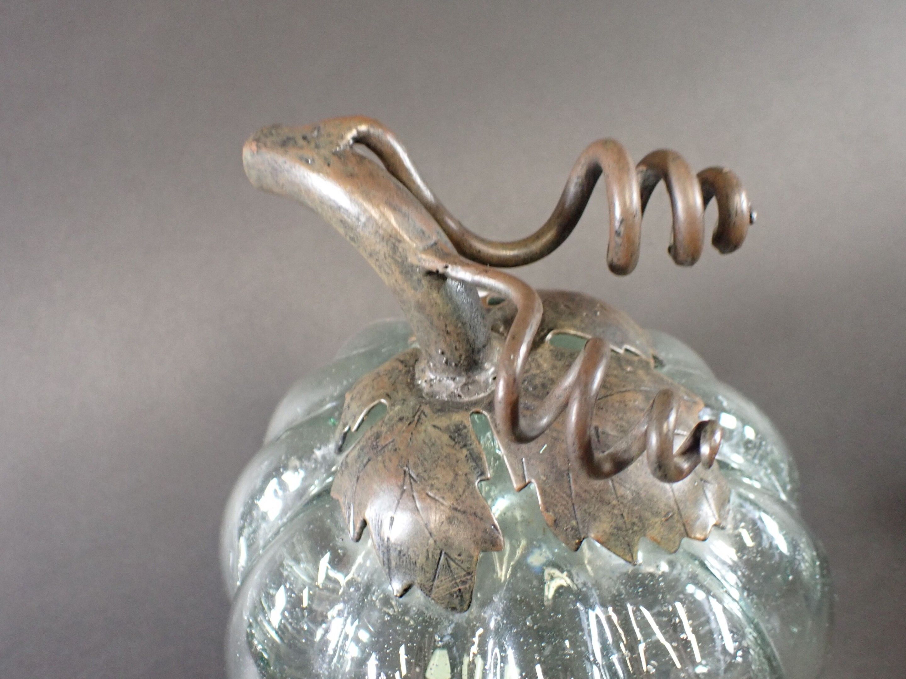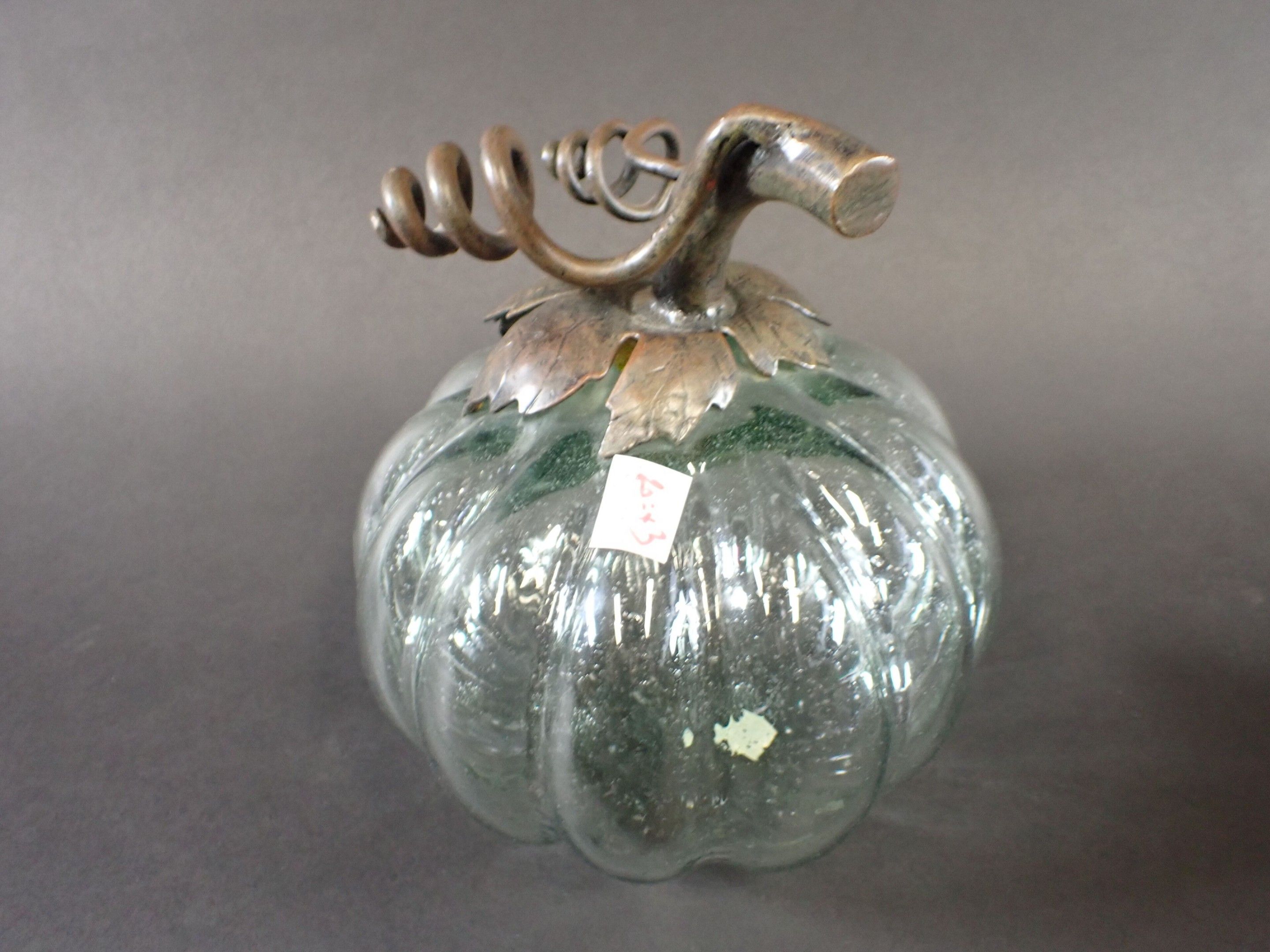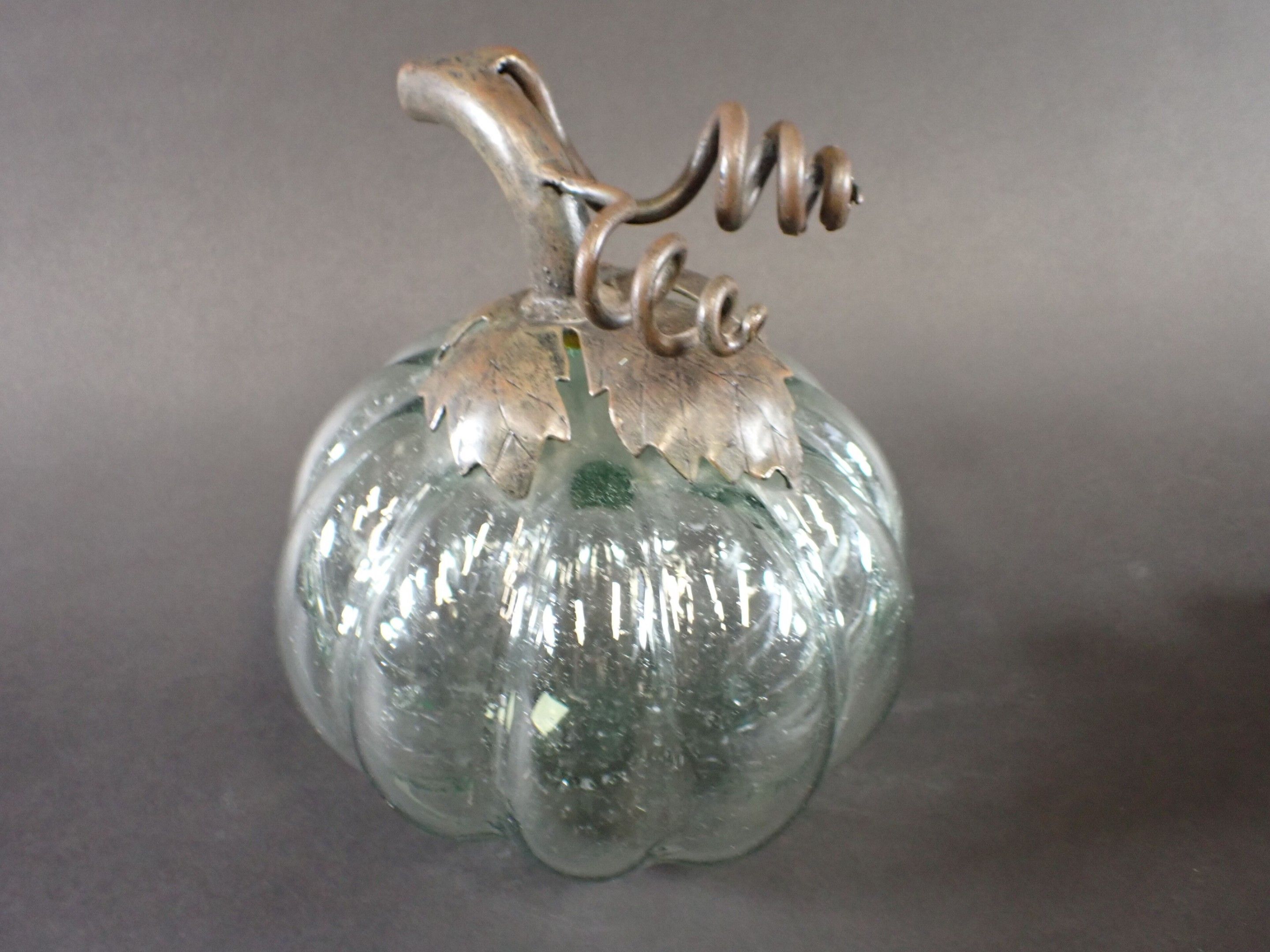 A pumpkin and two bunches of grapes in bubble glass and wrought iron, modern work. Height: 20 cm