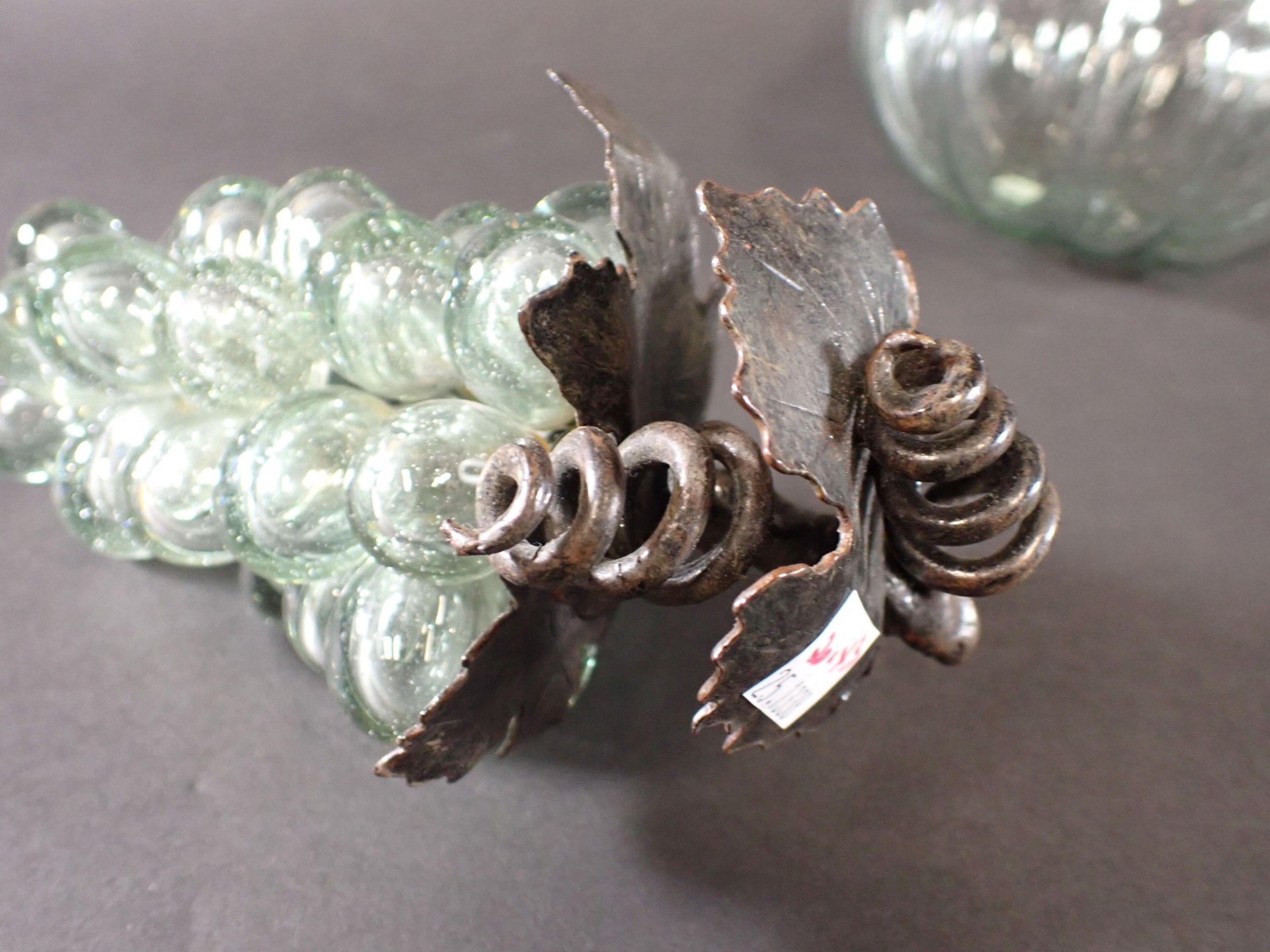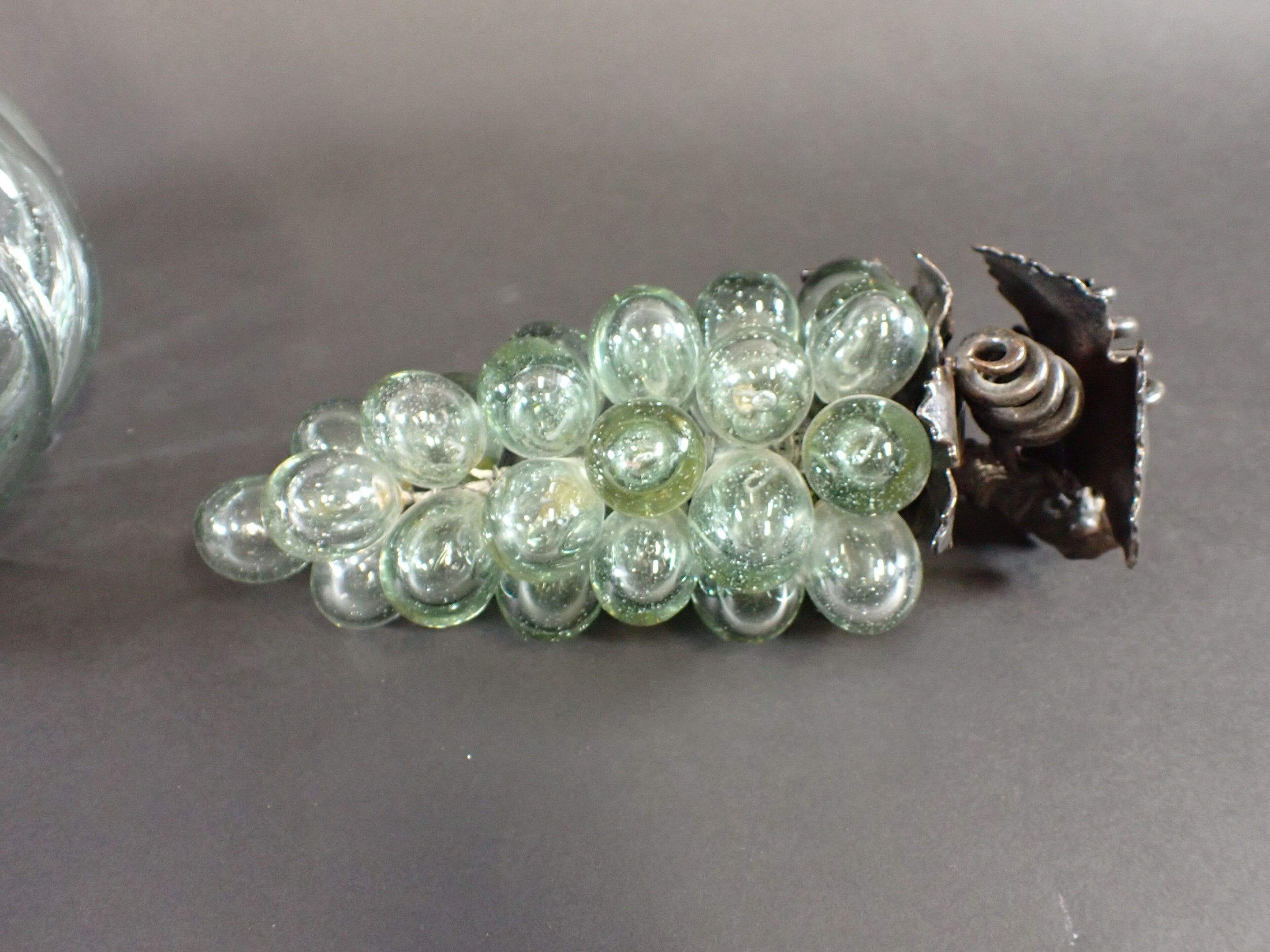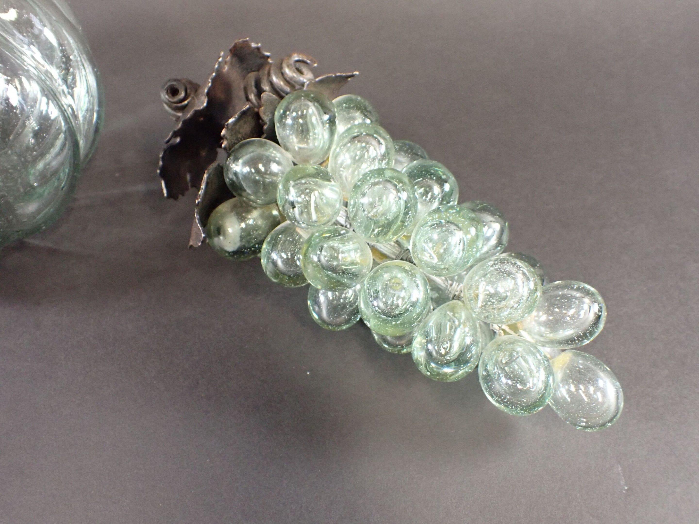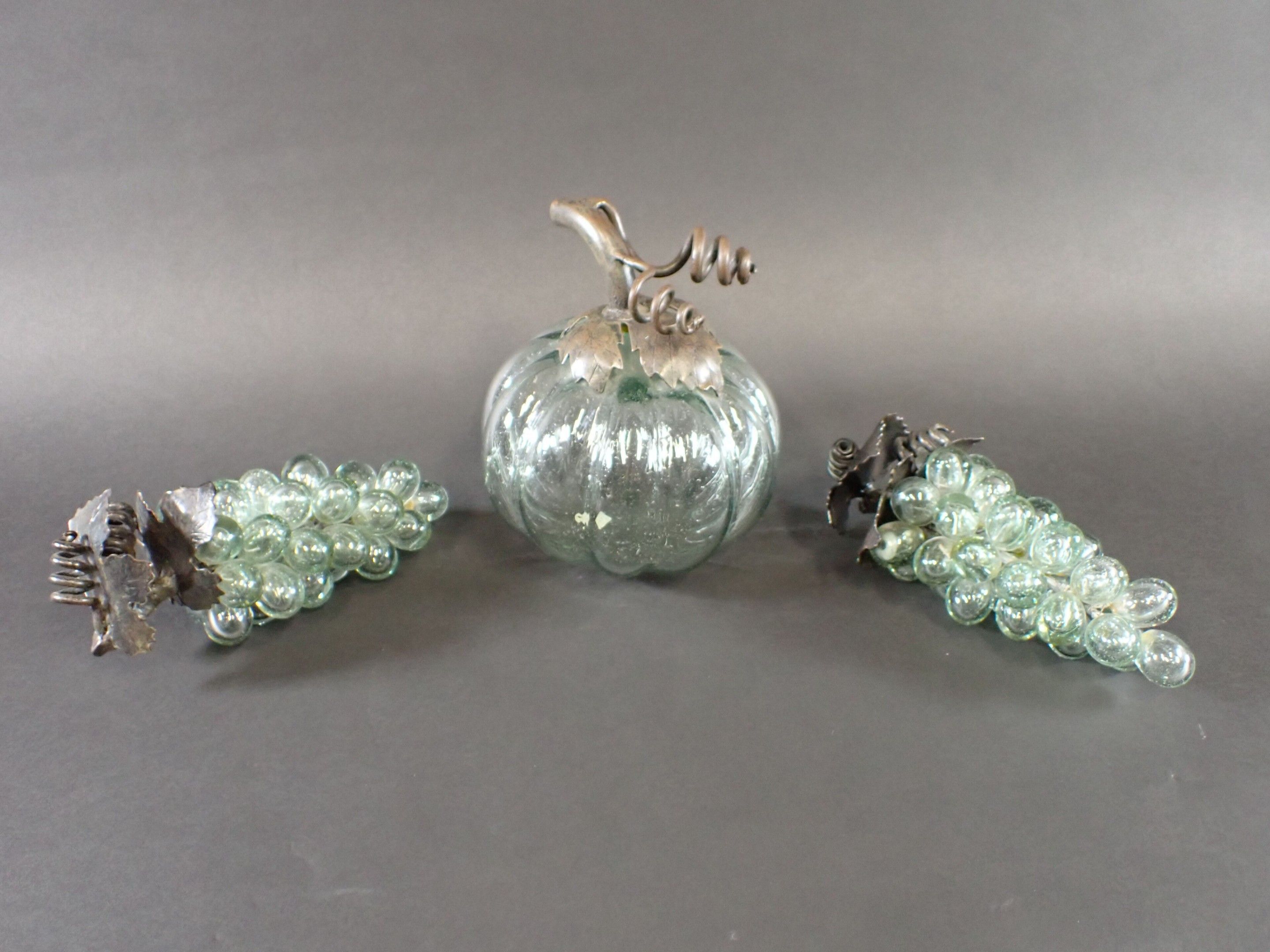 A pumpkin and two bunches of grapes in bubble glass and wrou…