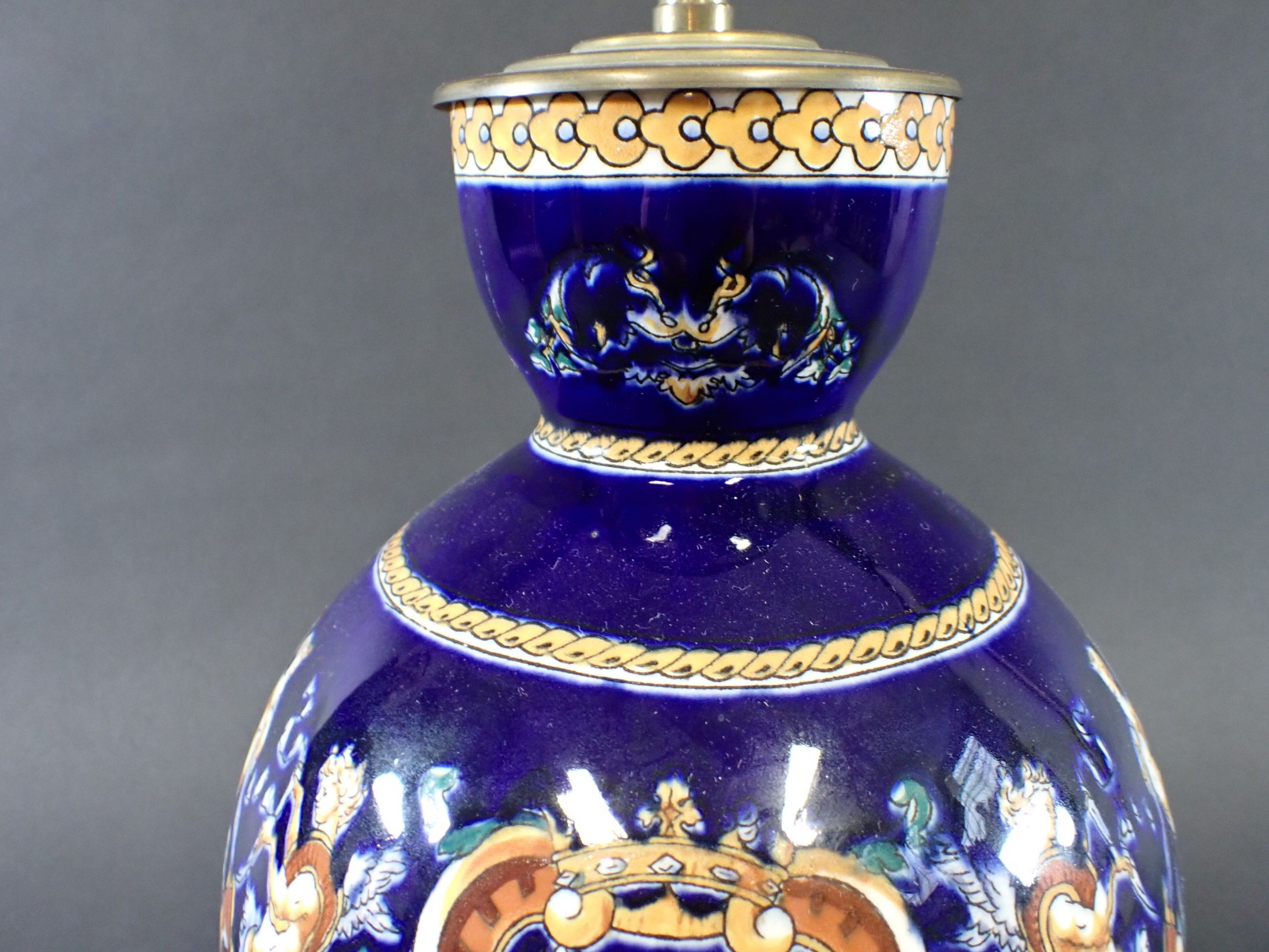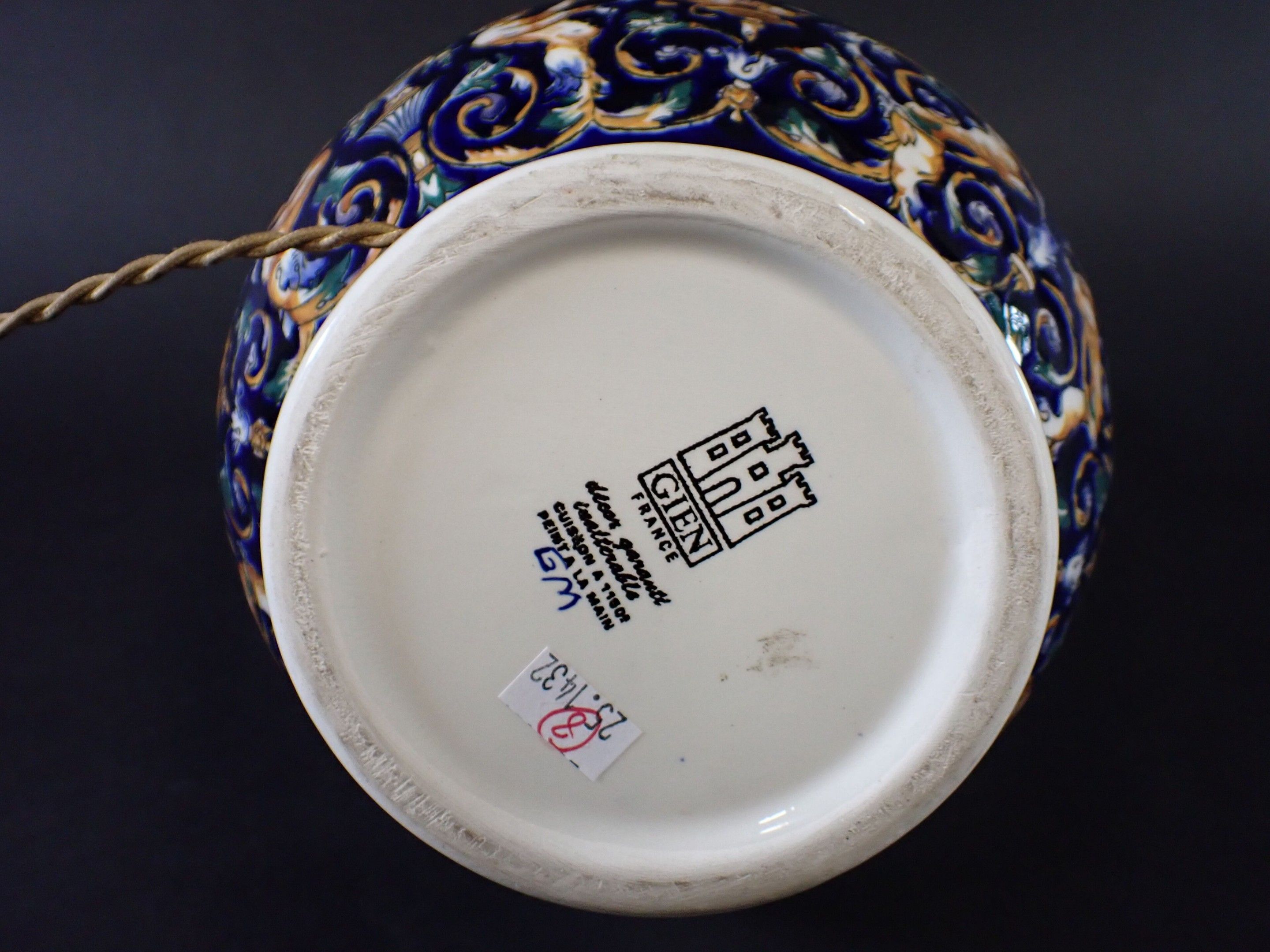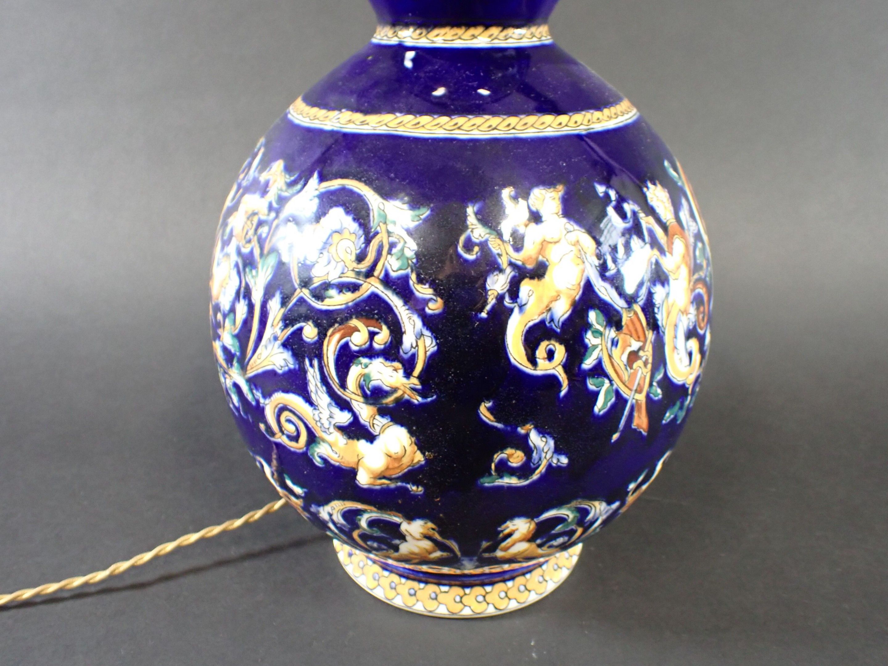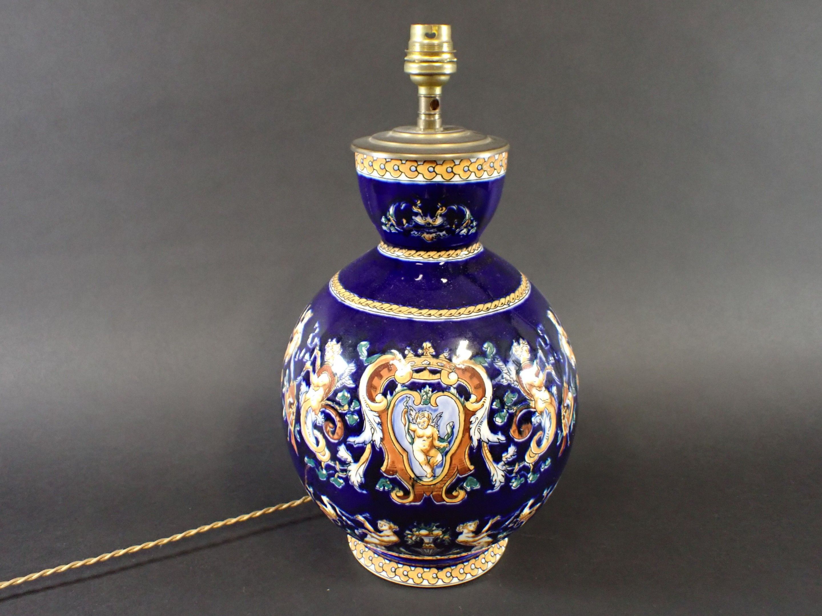 GIEN. Vase mounted as an earthenware lamp with Rennaissance style decoration. Height Height : 30 cm