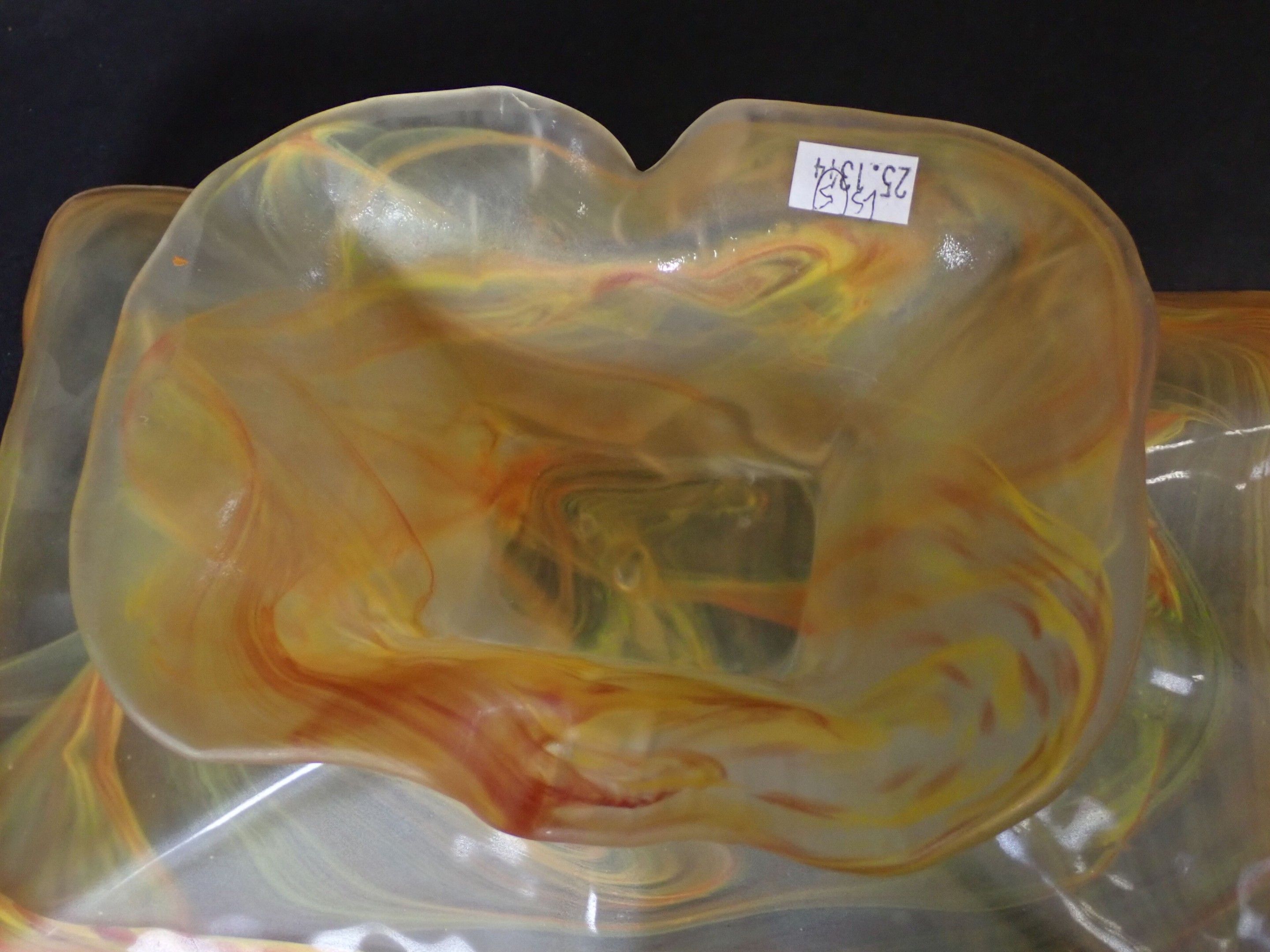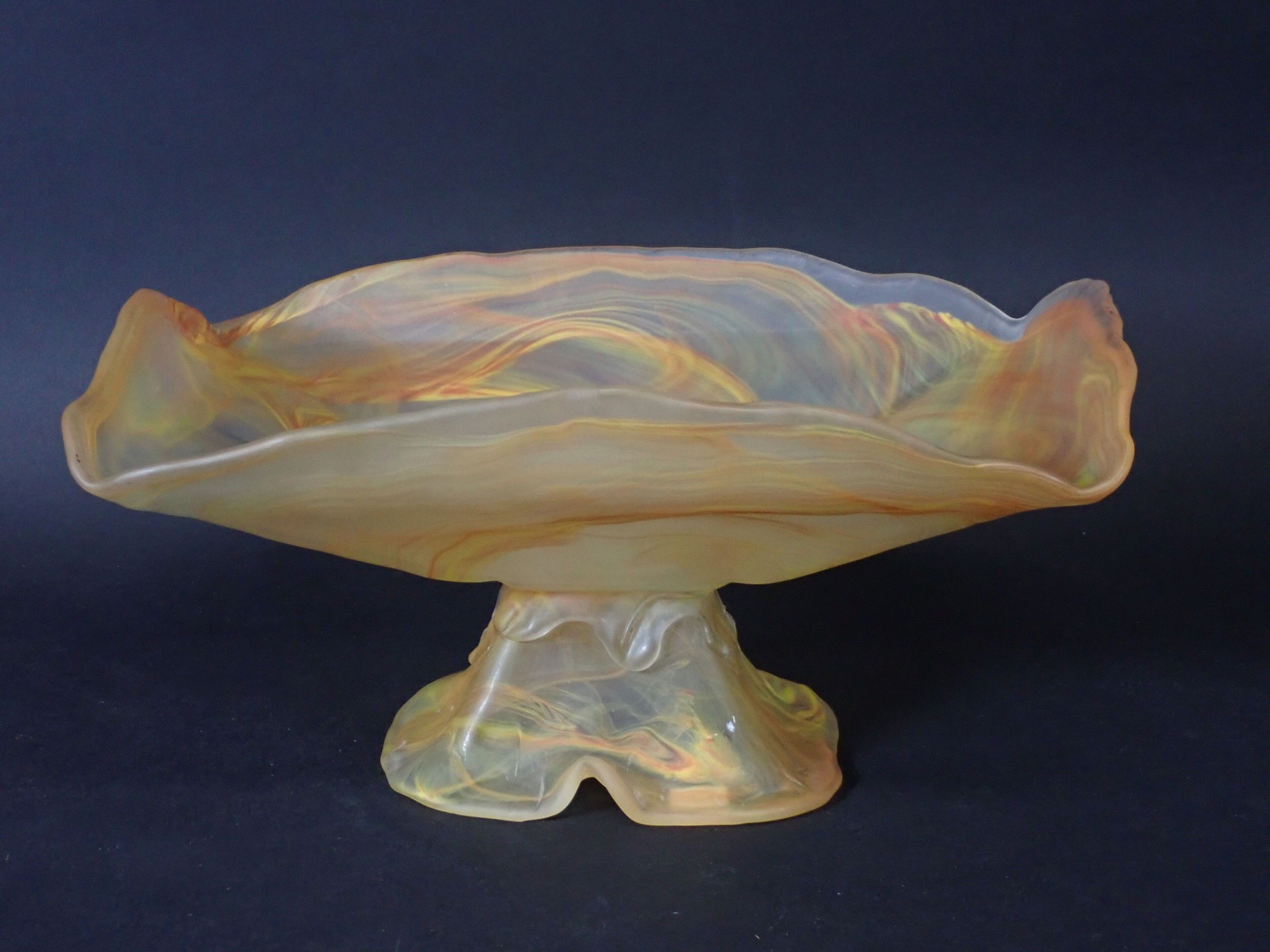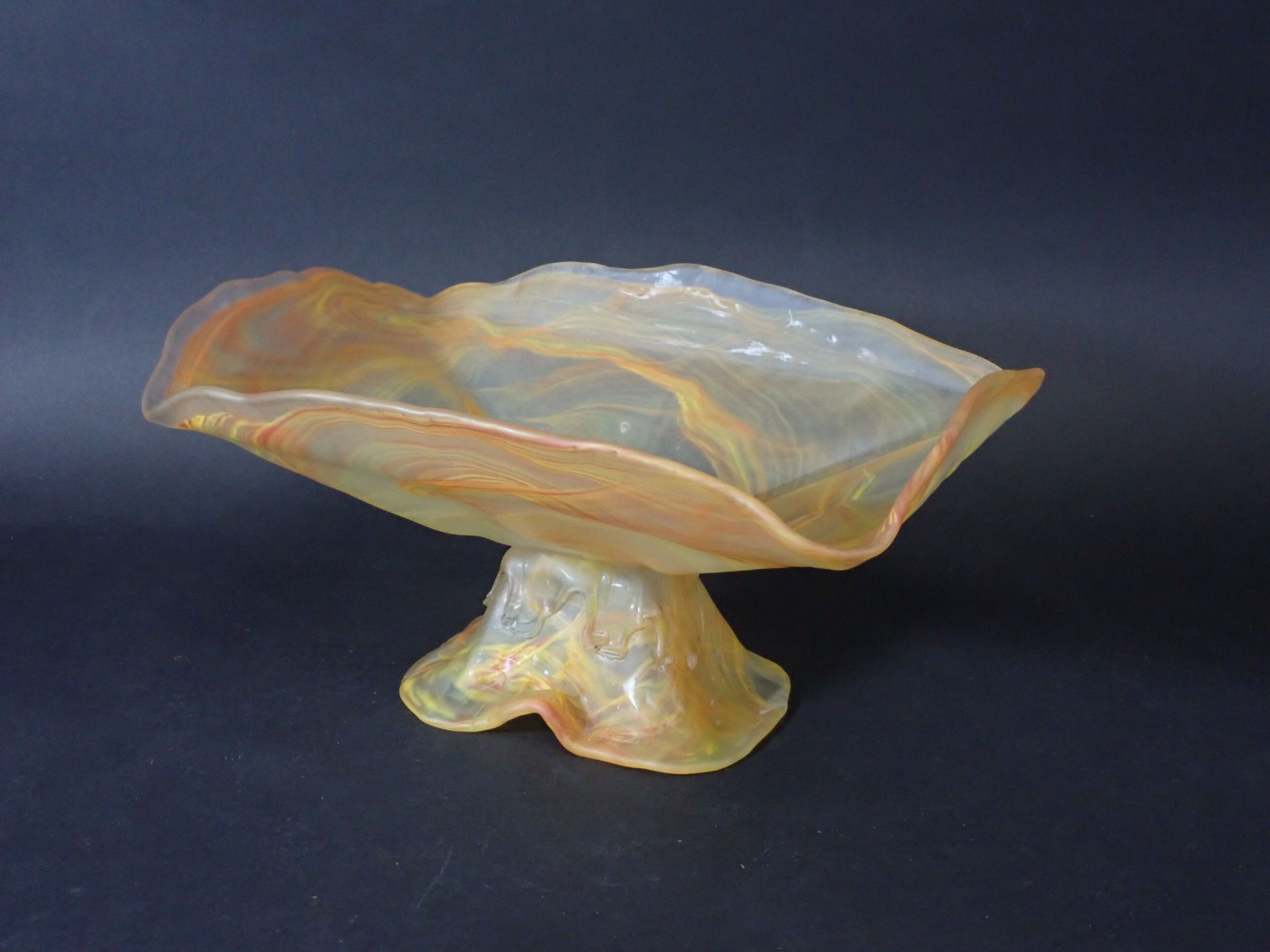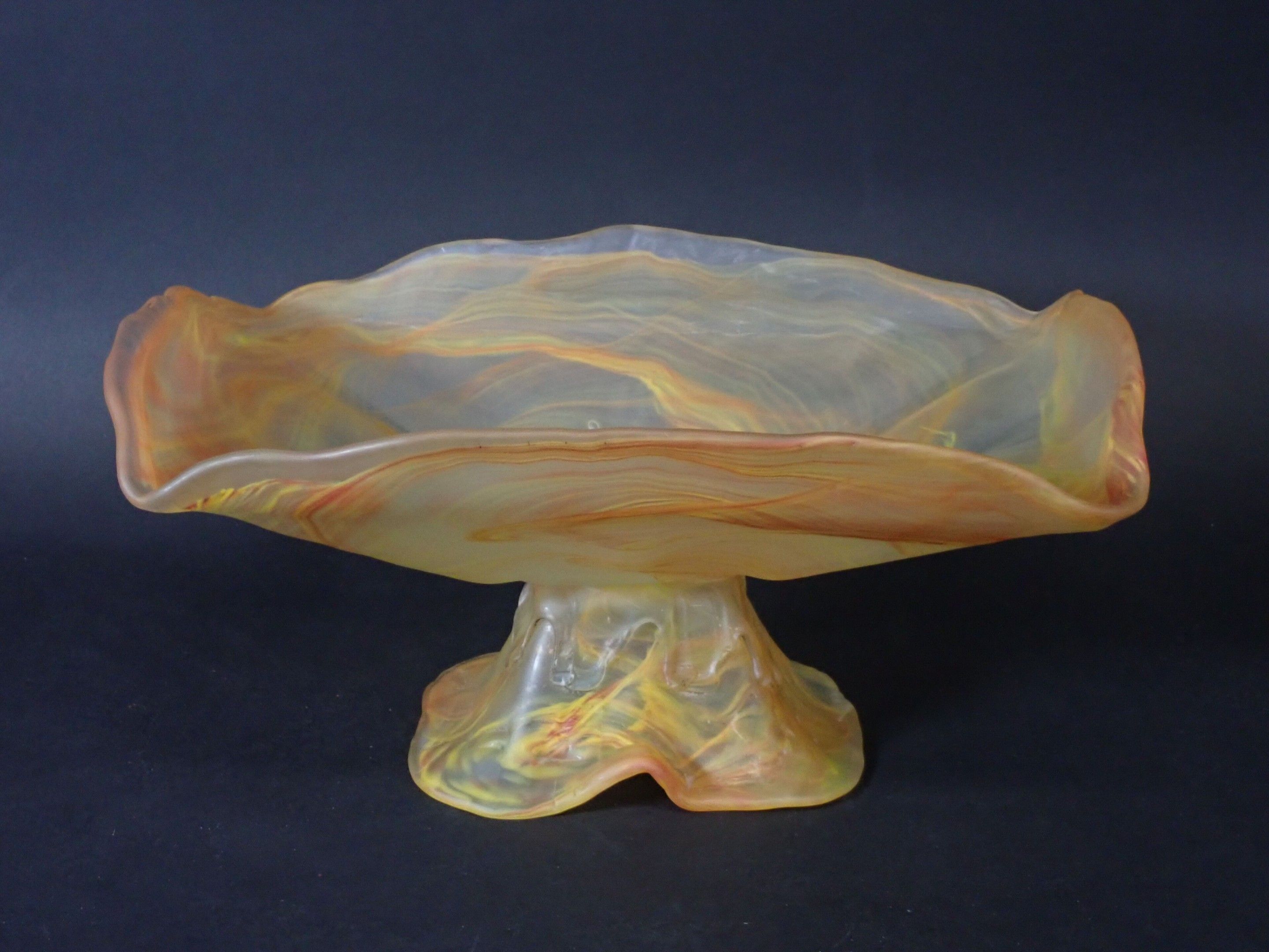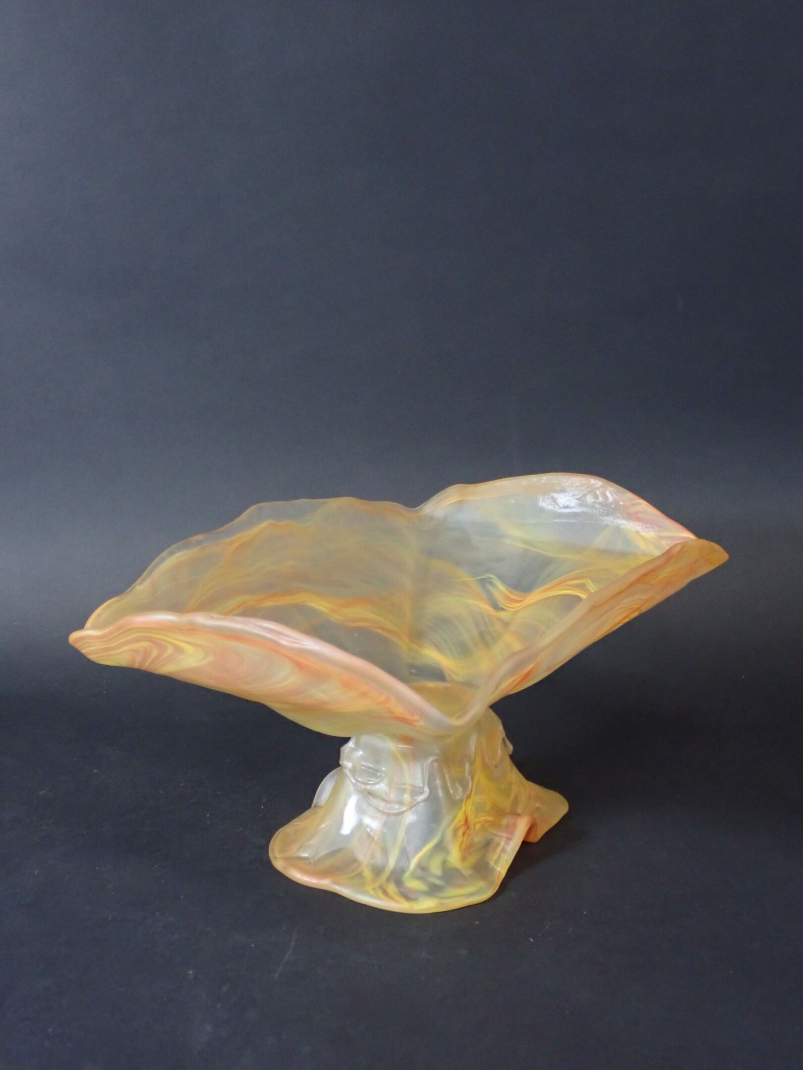 F. LEGER (XX's). Fruit bowl on foot in orange marmorated glass. Height: 17 cm - Width: 35 cm
