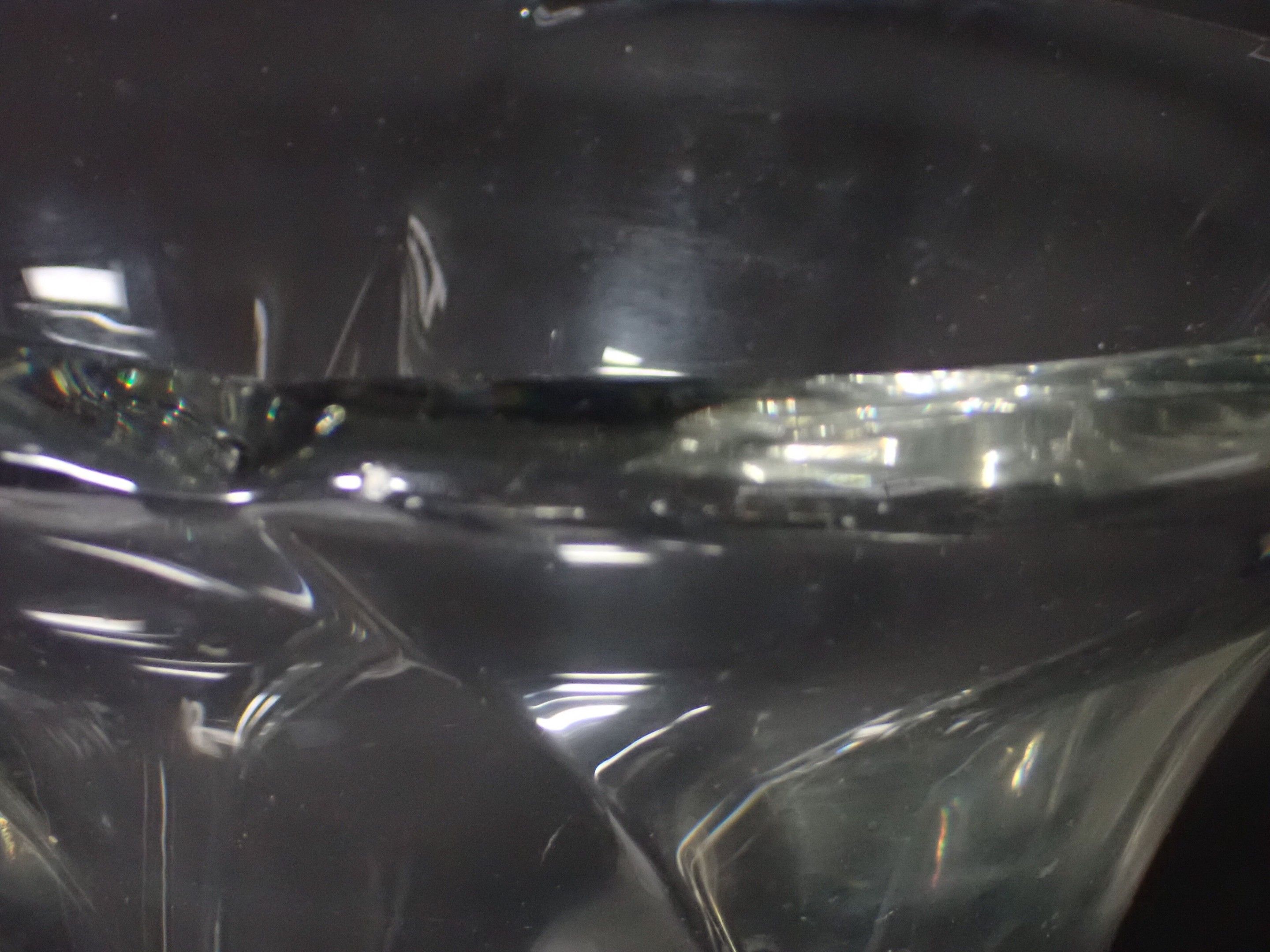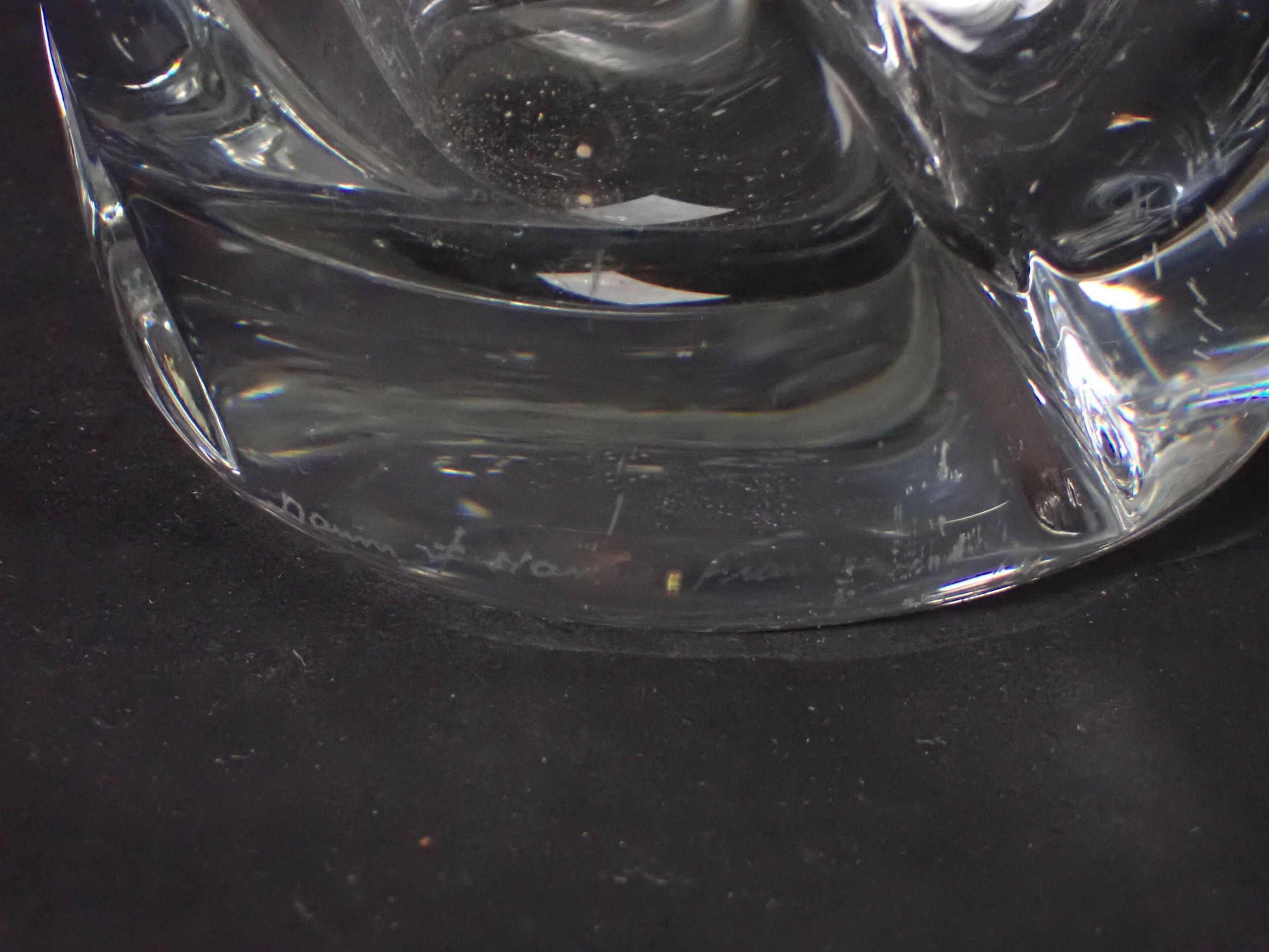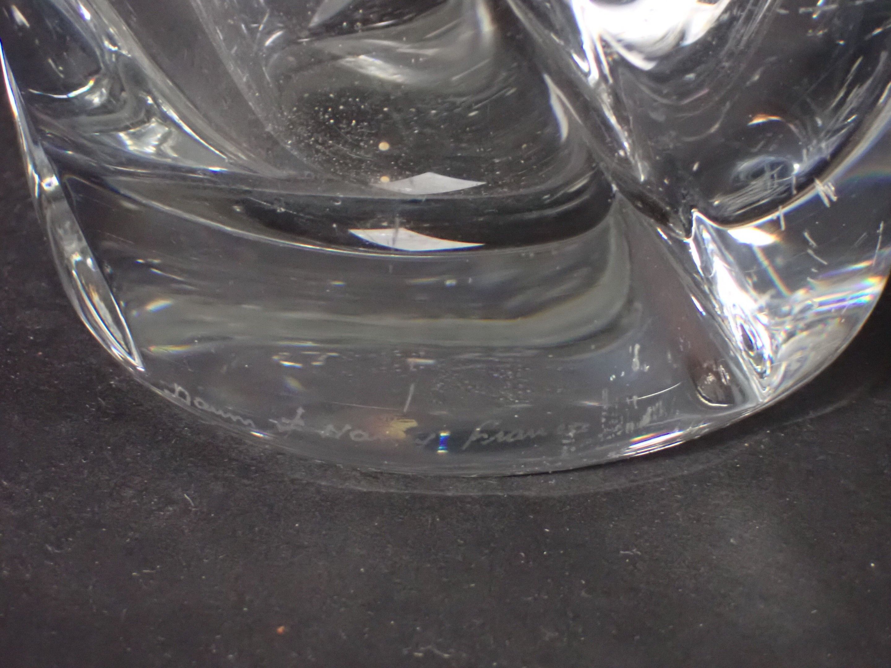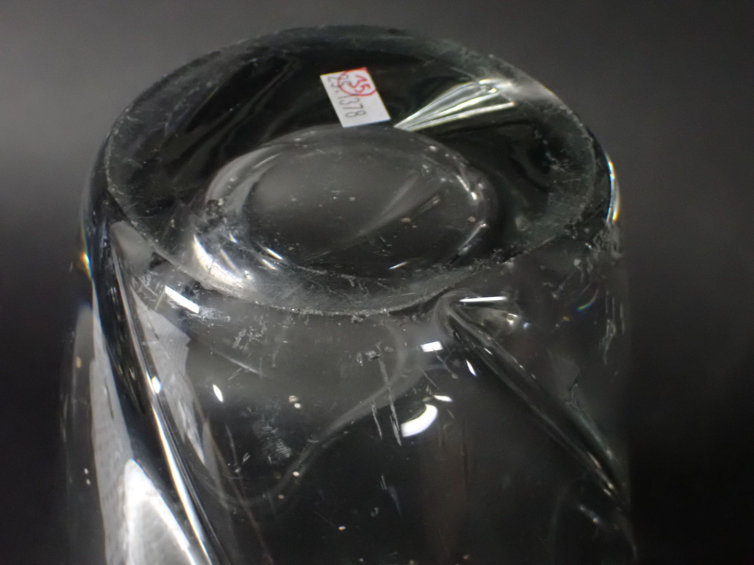 DAUM NANCY France. A large and heavy crystal vase with twisted motifs, signed. Height: 28 cm - diameter: 28 cm (slight scratches) - ON JOINT : DAUM Two small bubble-crystal vases, signed. Height: 9 cm