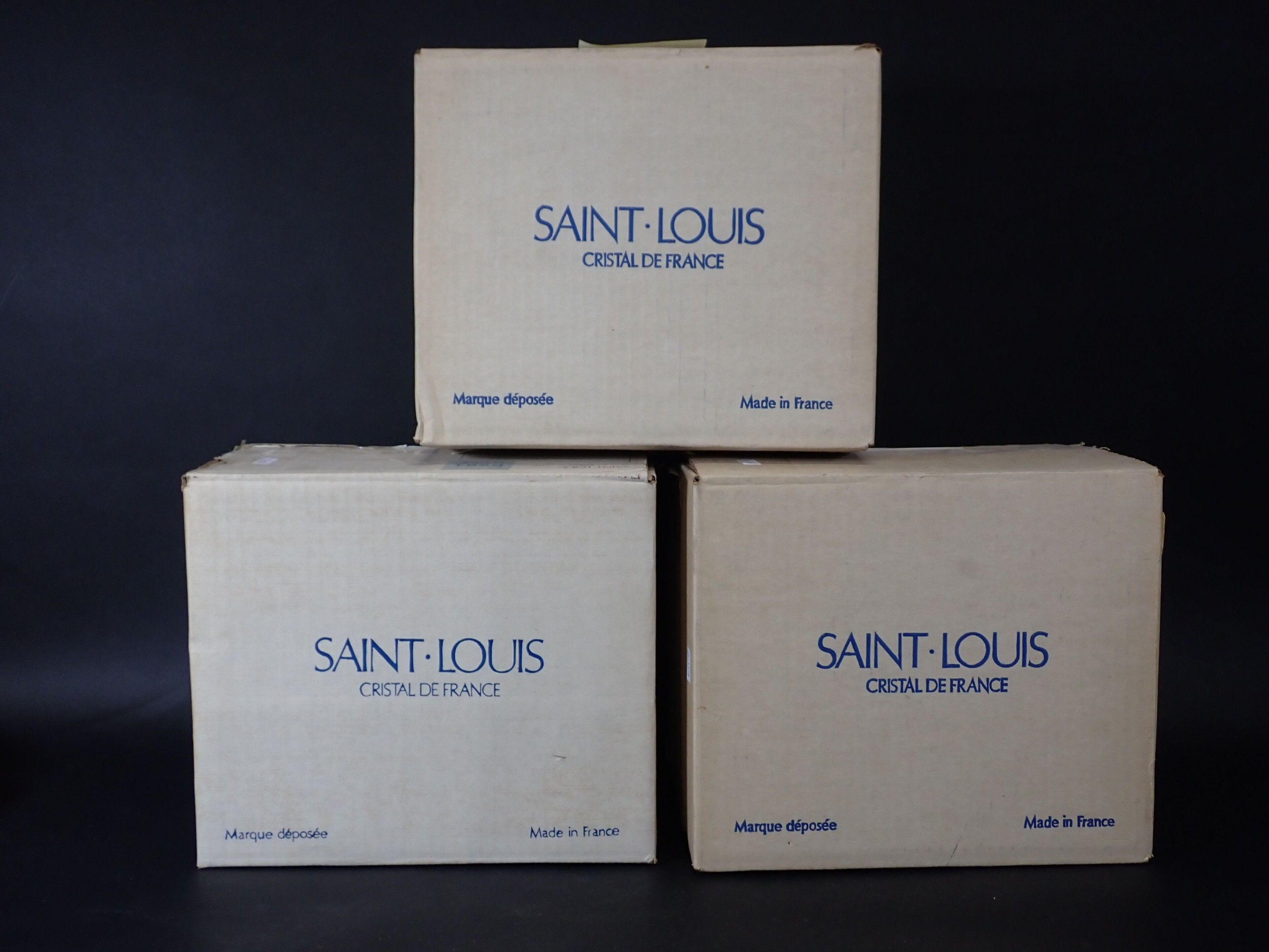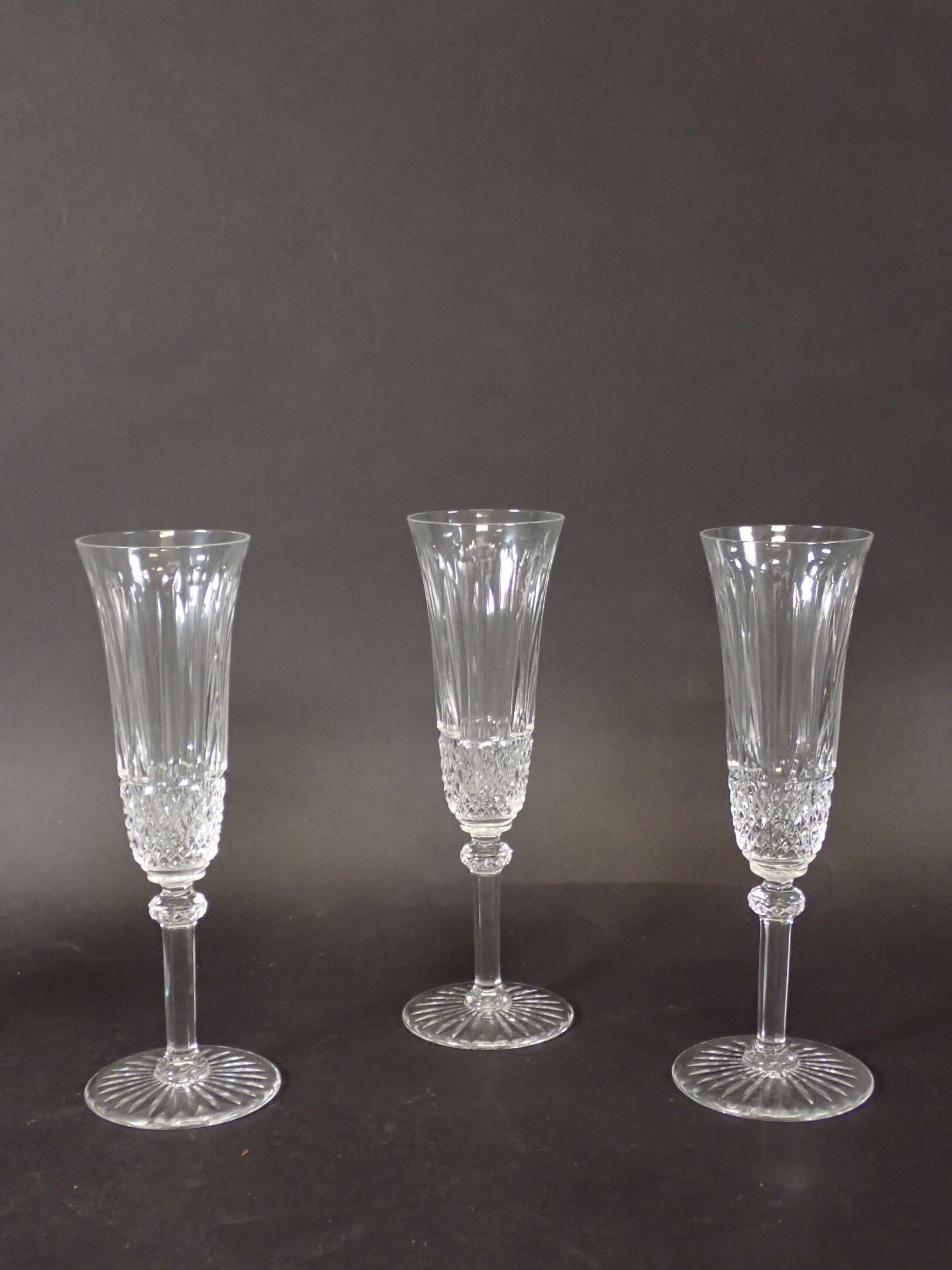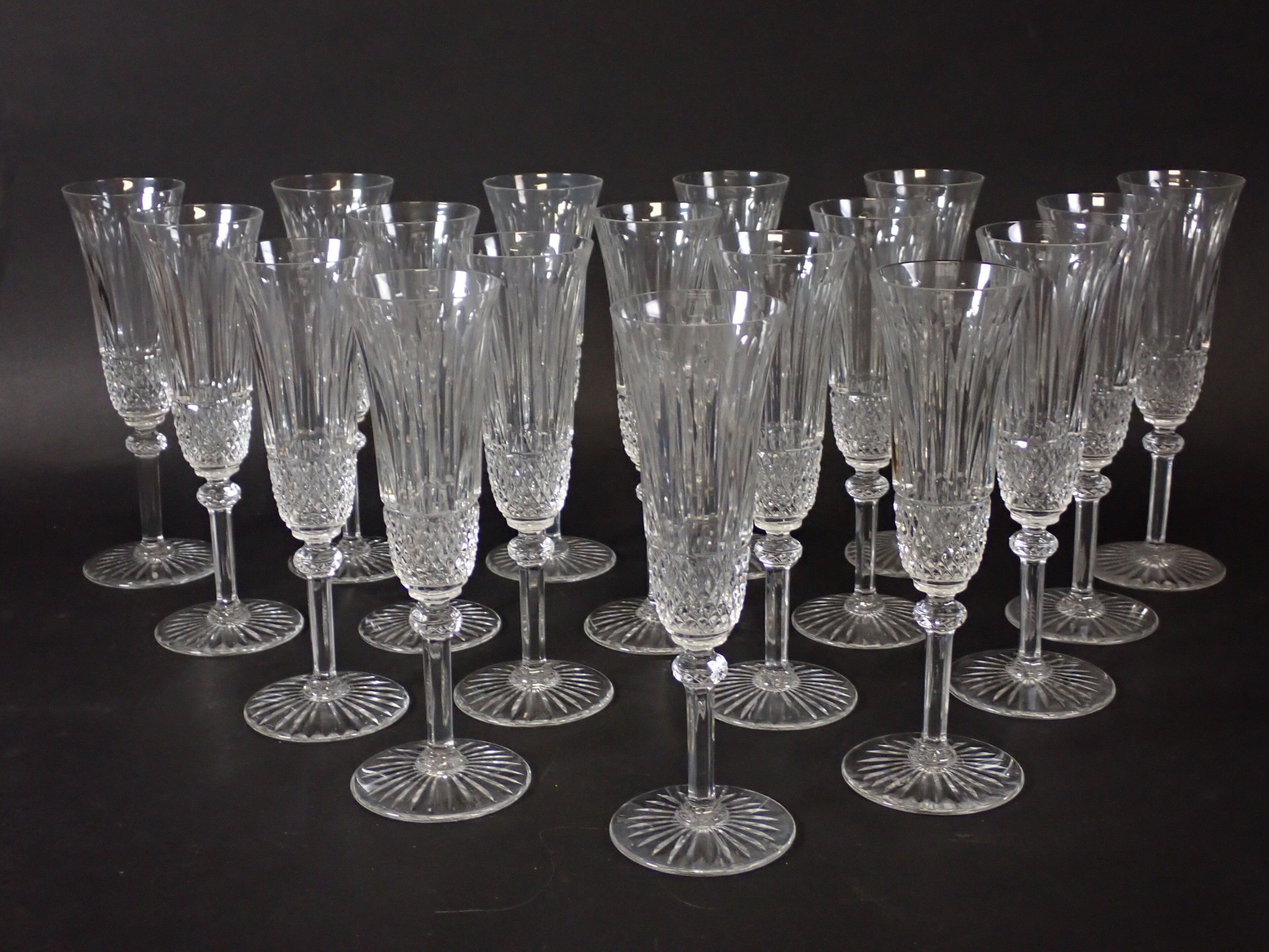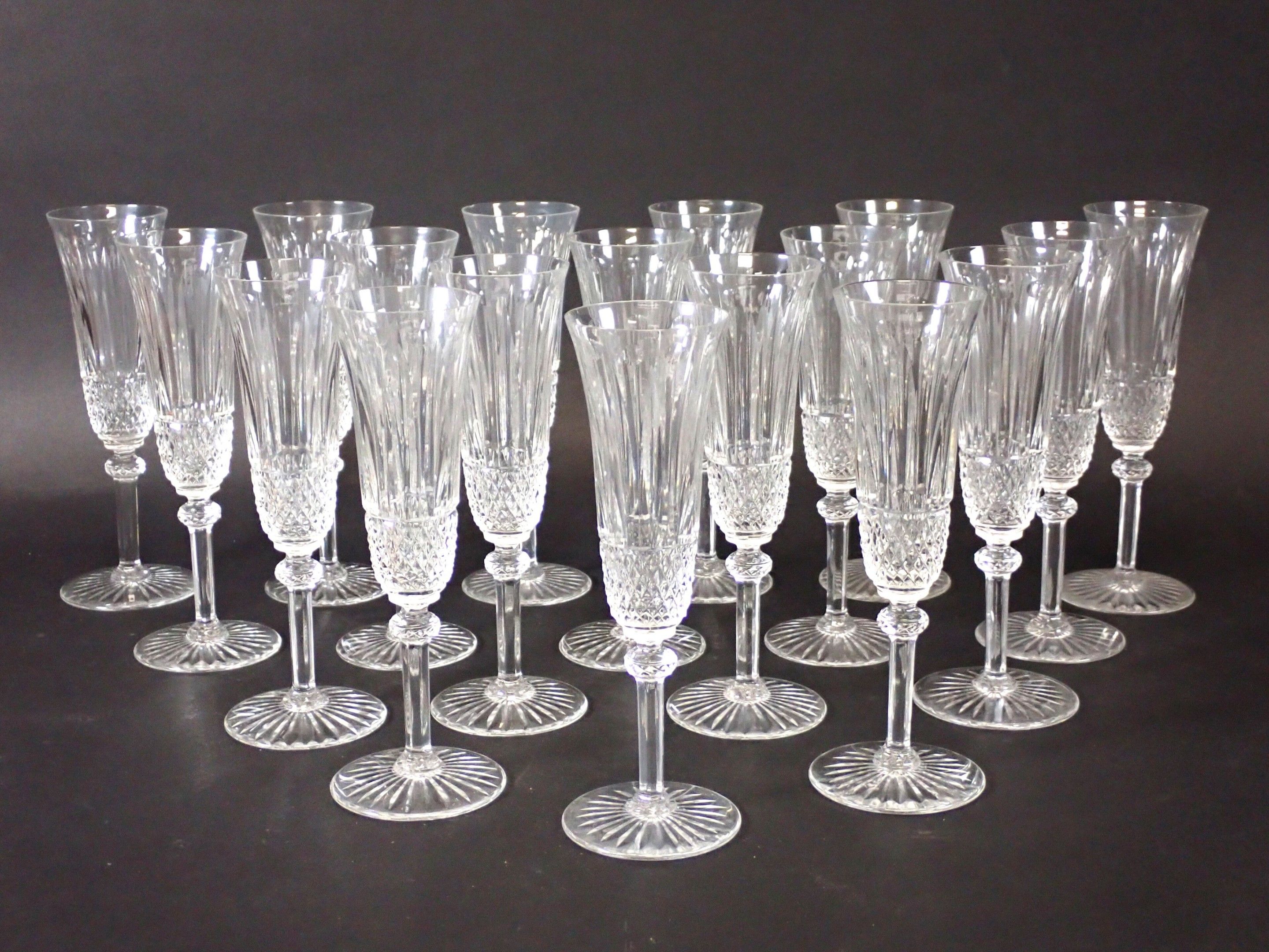 SAINT-LOUIS. 18 crystal champagne flutes Tommy model, in original boxes. Height: 20 cm - good condition, some chips.