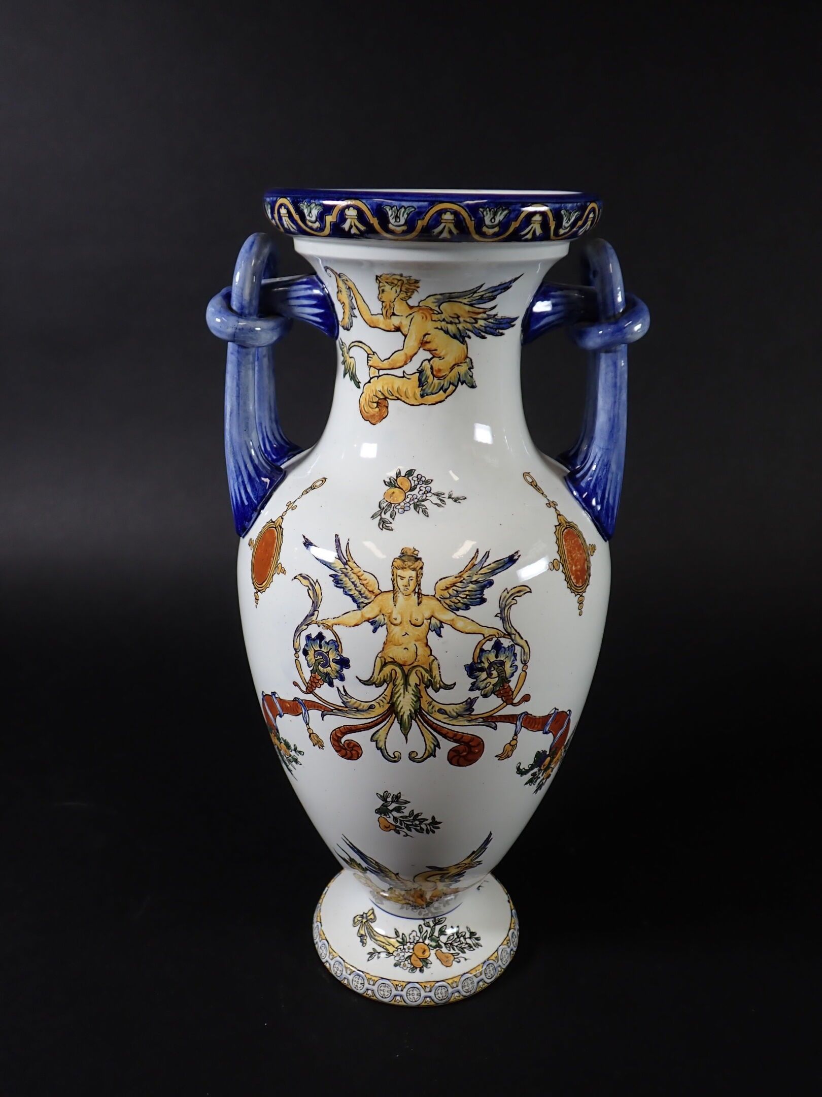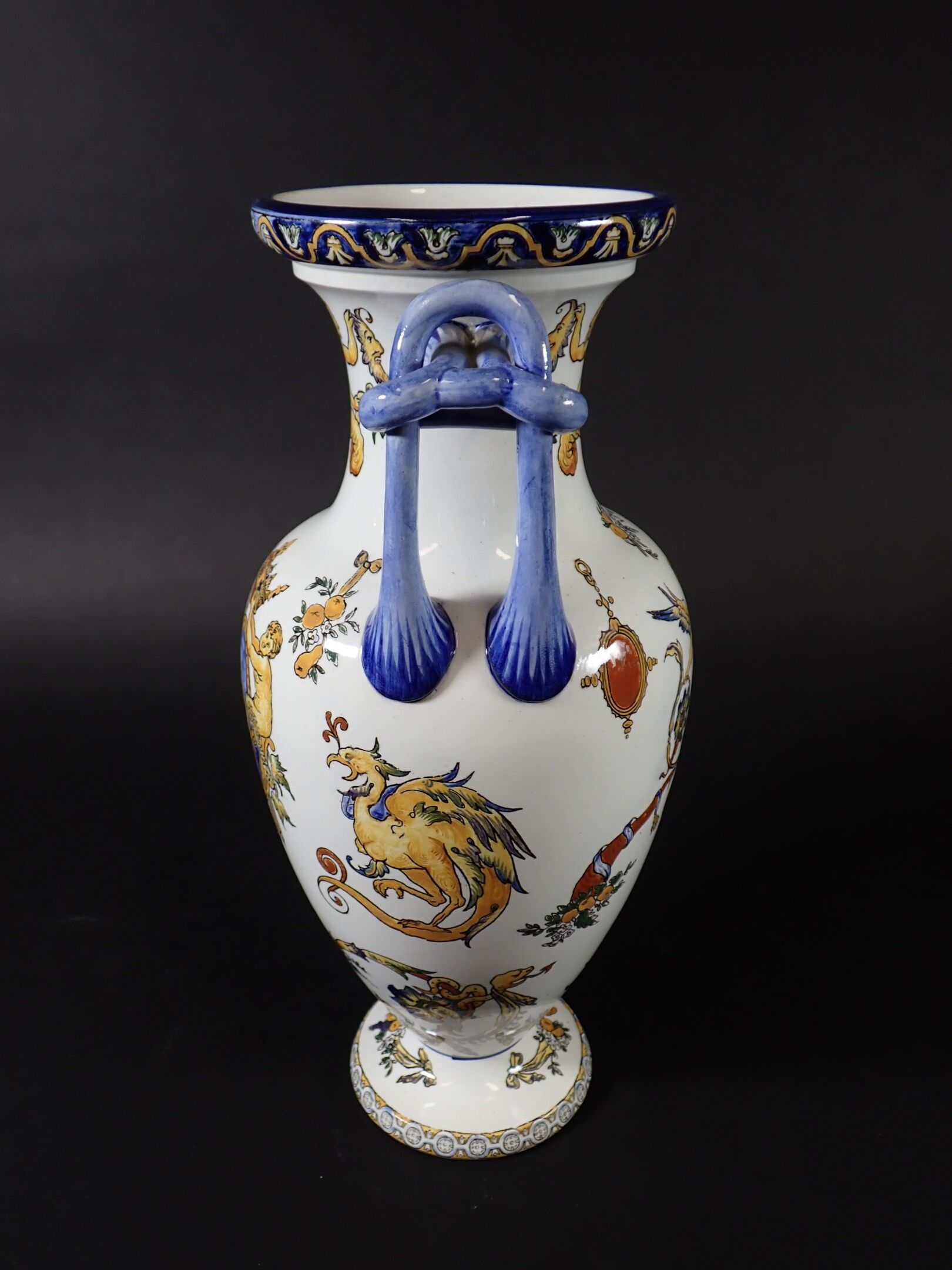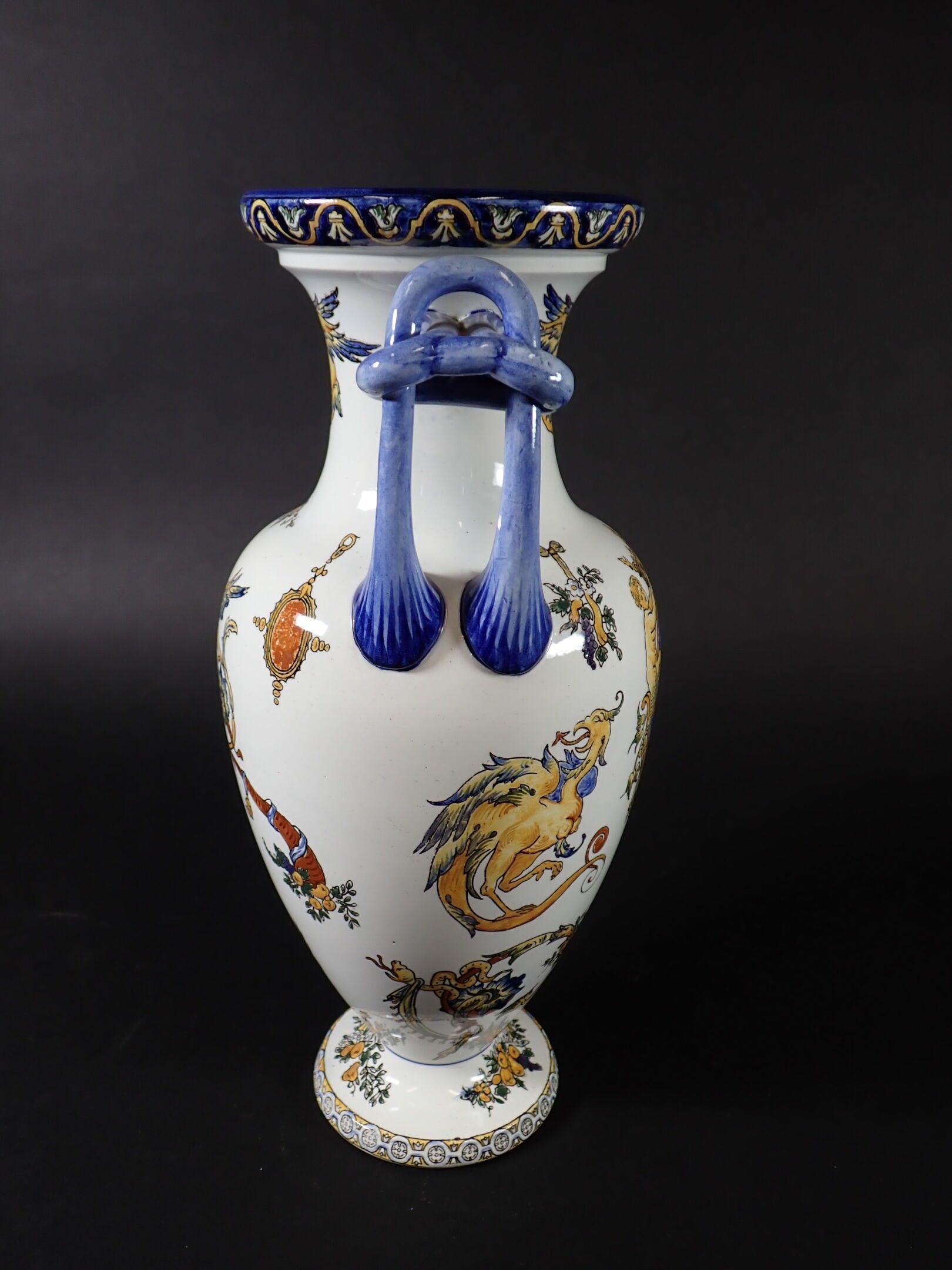 GIEN. Earthenware amphora vase with handles decorated in the Renaissance style. Height 35 cm high