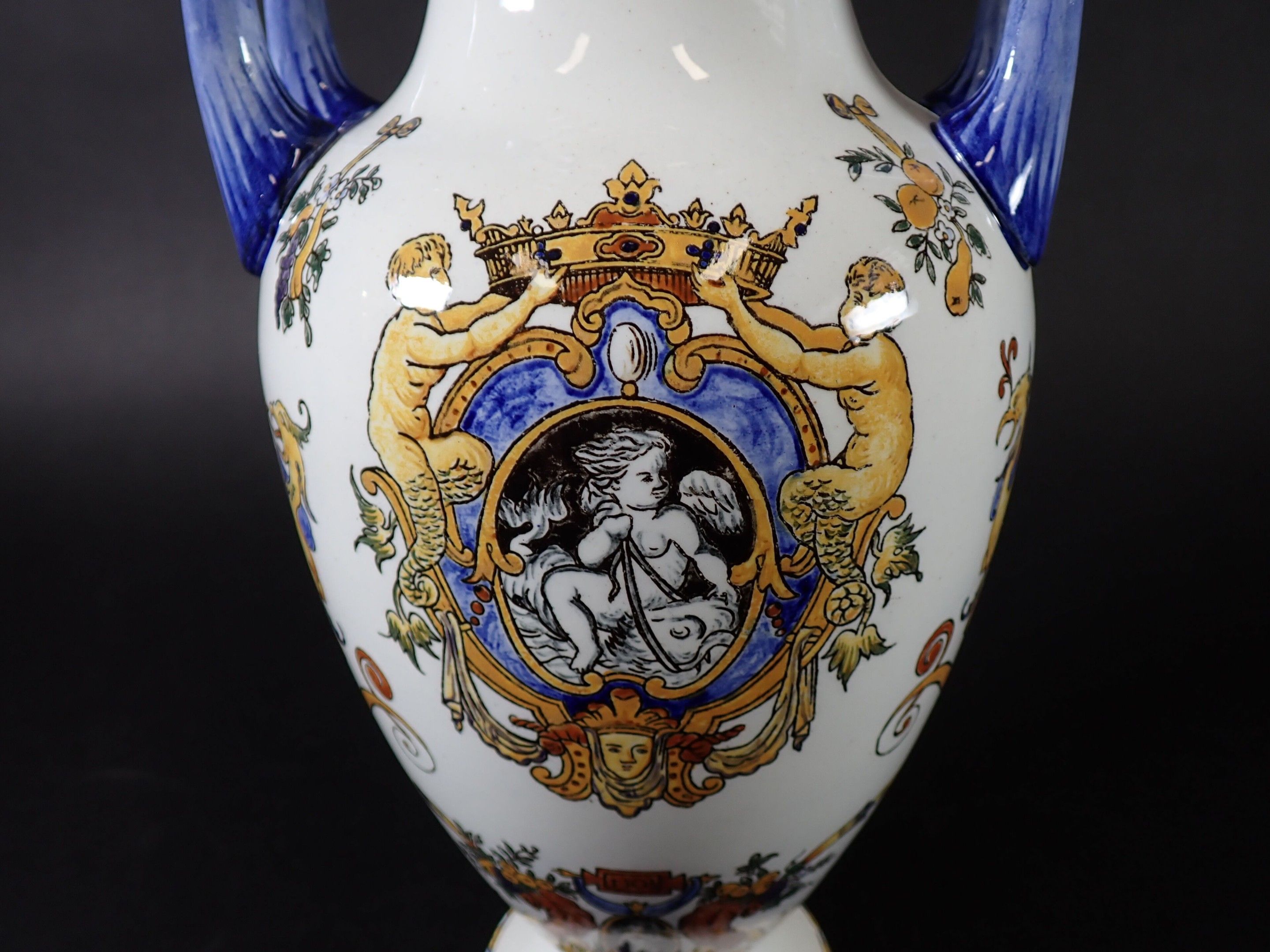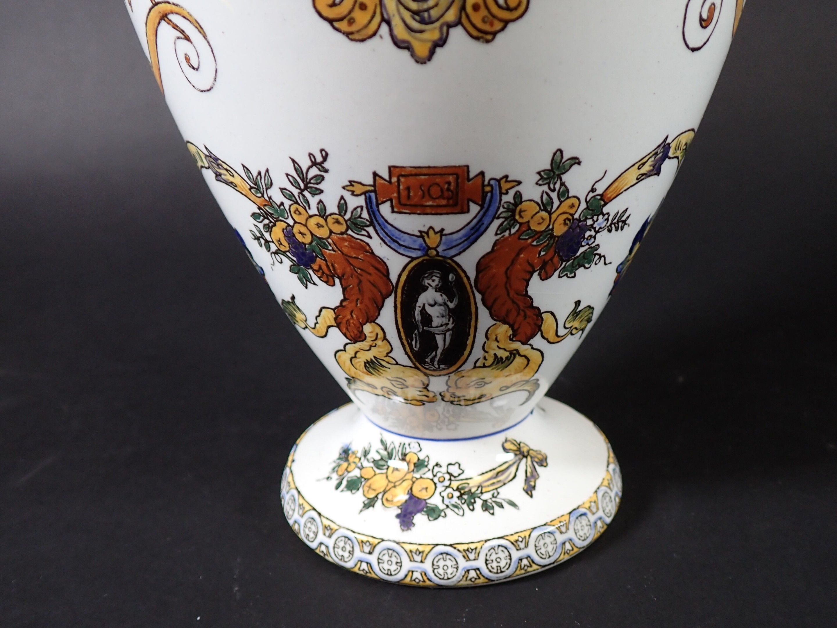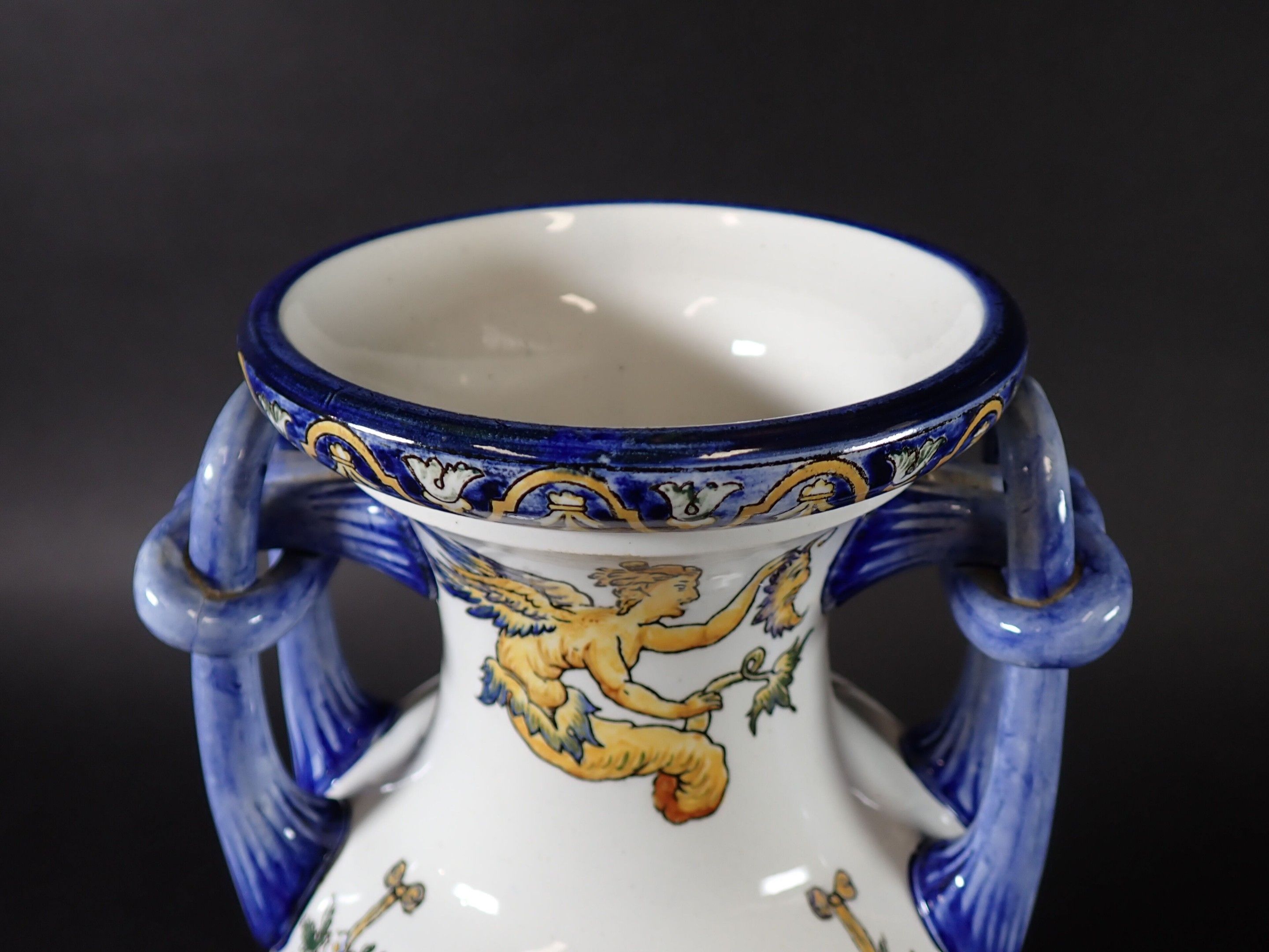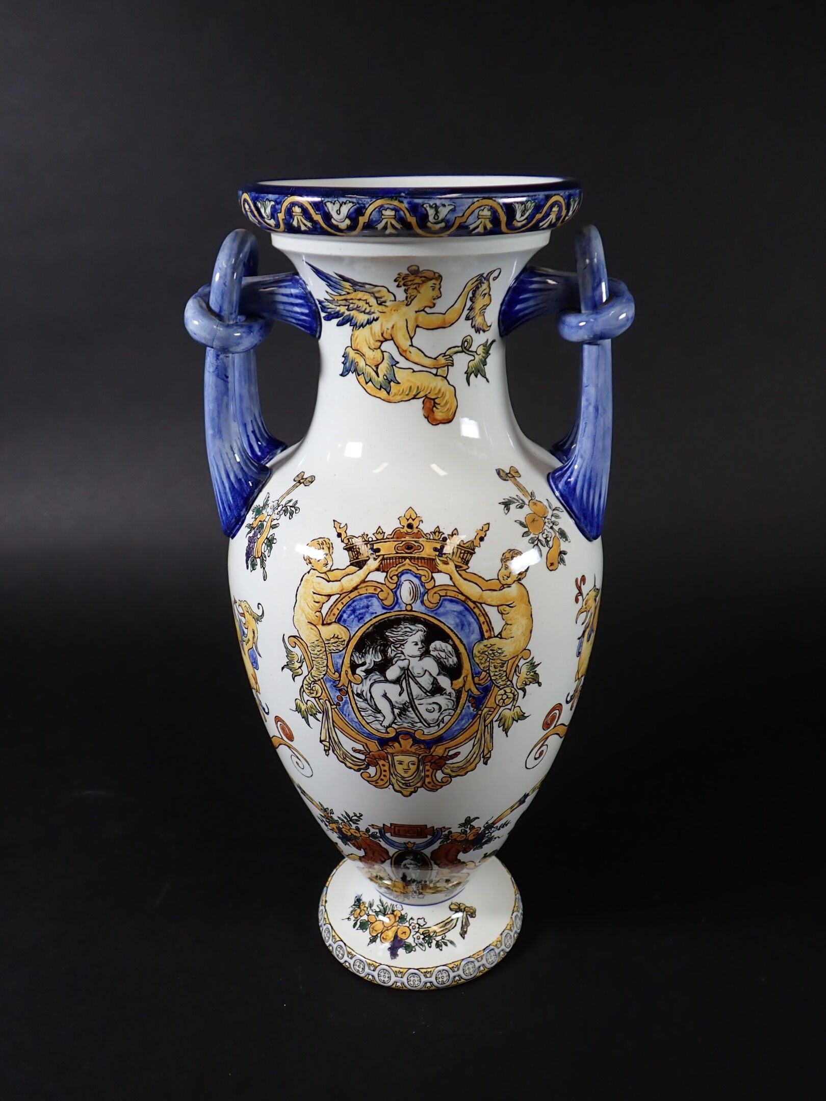 GIEN. Earthenware amphora vase with handles decorated in the Renaissance style. Height 35 cm high