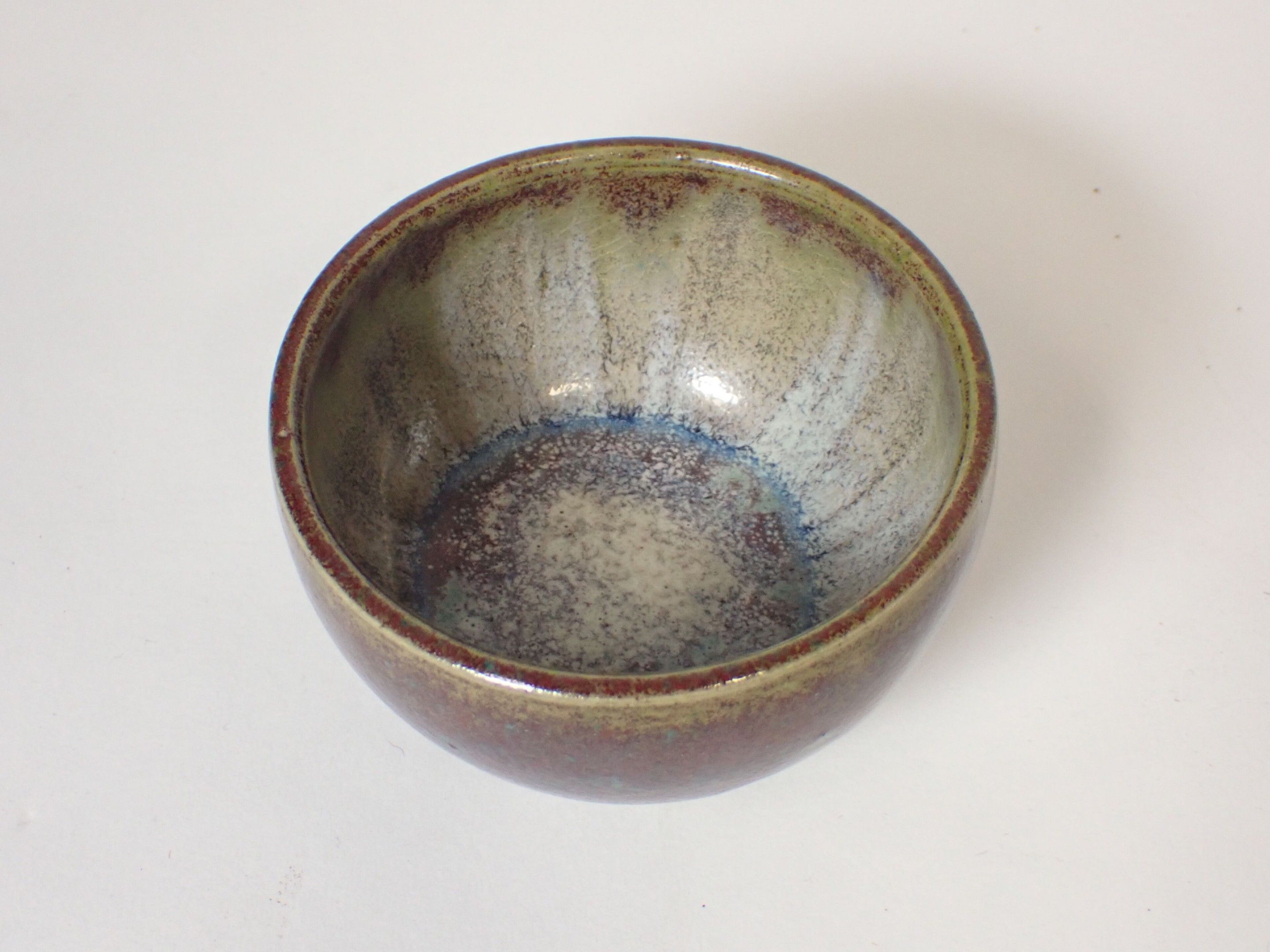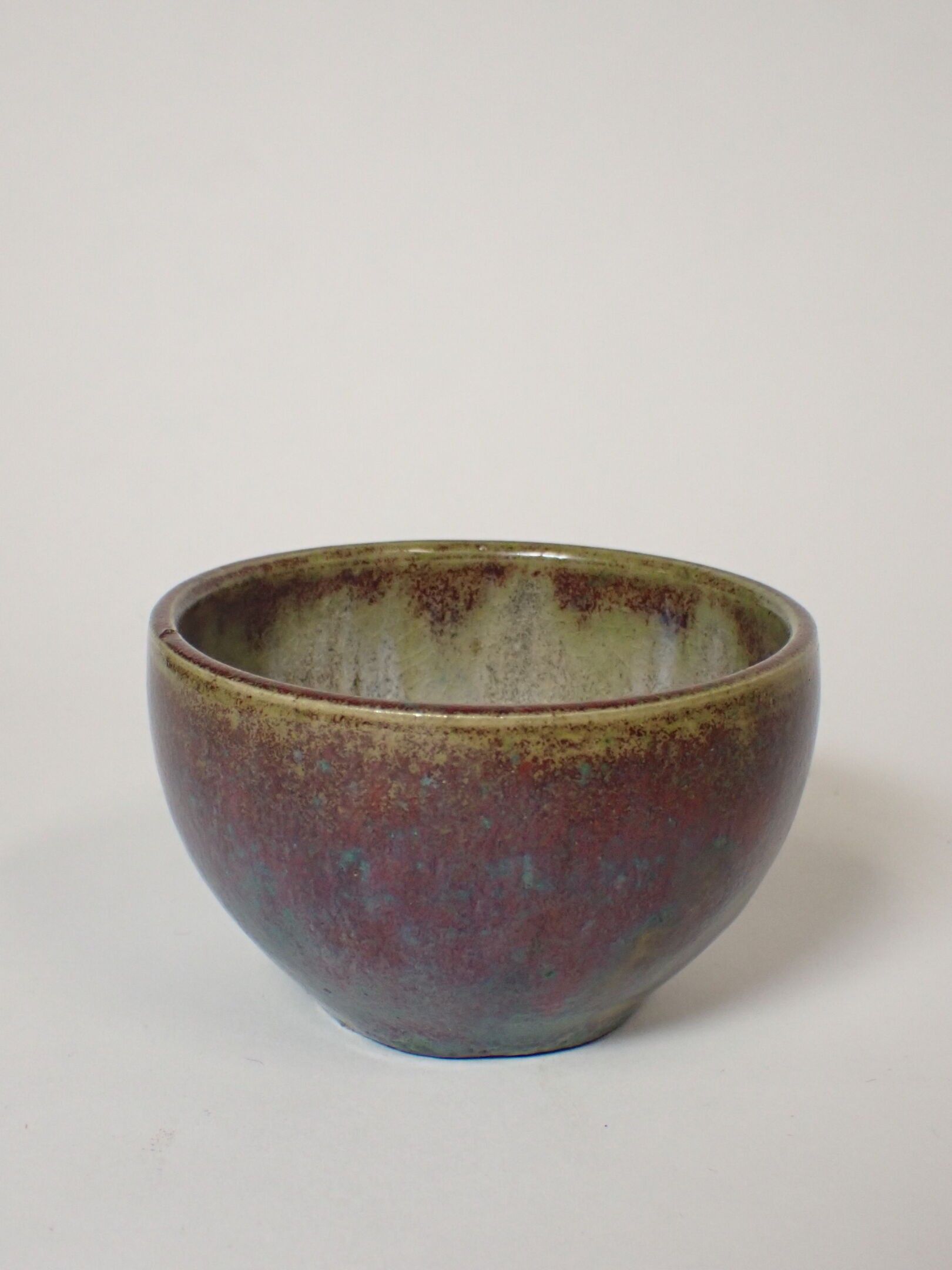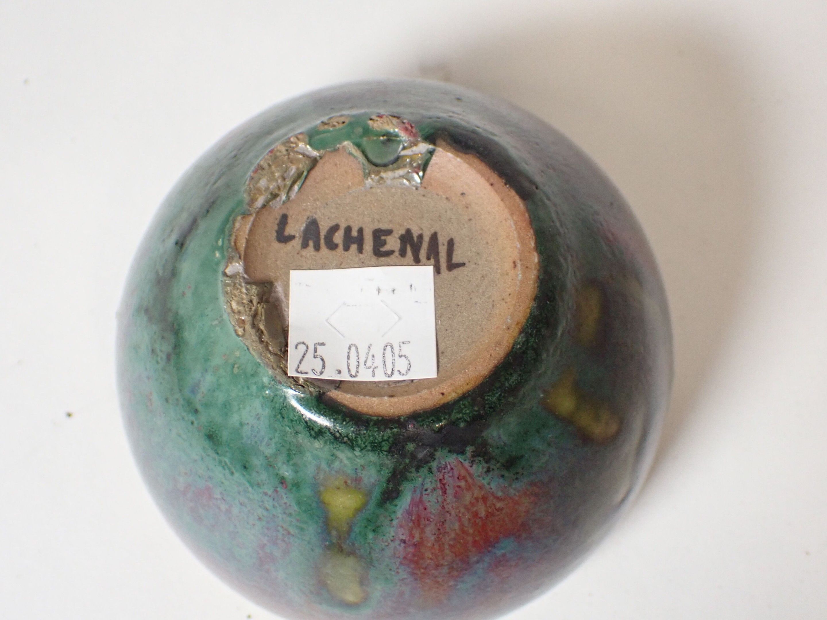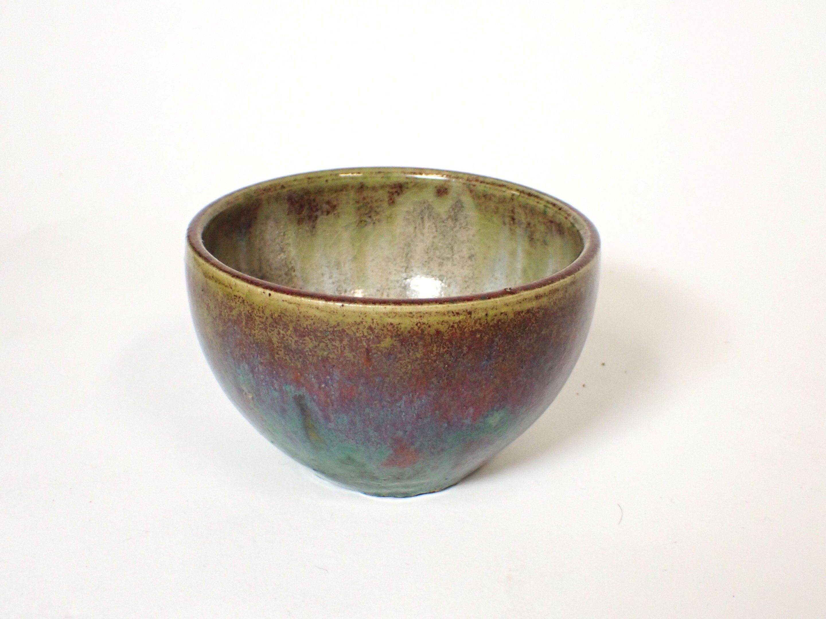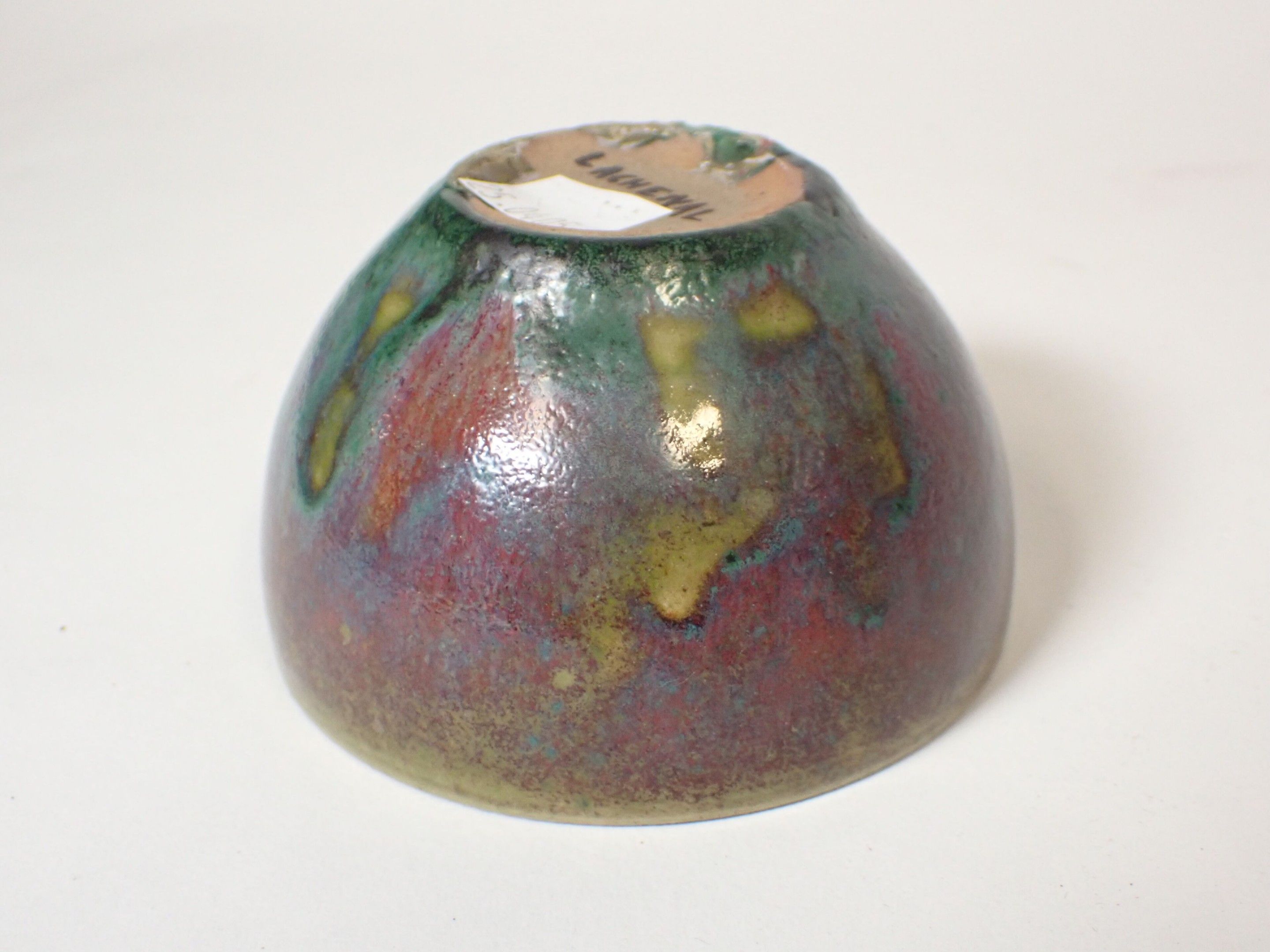 Raoul LACHENAL (1855-1948) : Glazed stoneware bowl. Polychrome. Red, green and blue enamels. Signed Lachenal under the base. Diameter: 9 cm. Height: 6 cm