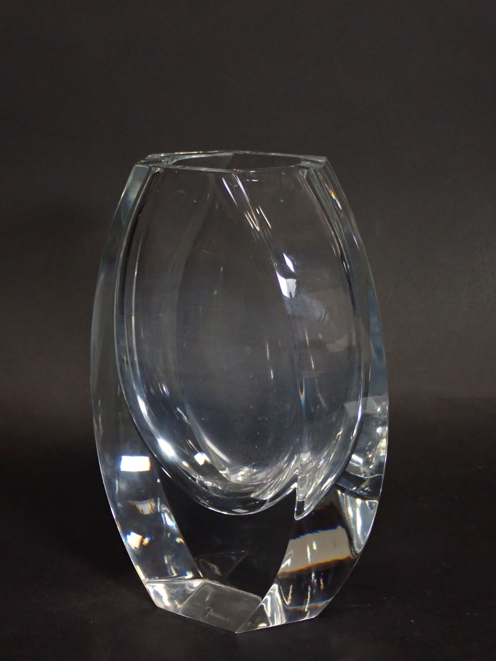 BACCARAT: Neptune model, Colourless crystal vase with flattened ovoid body