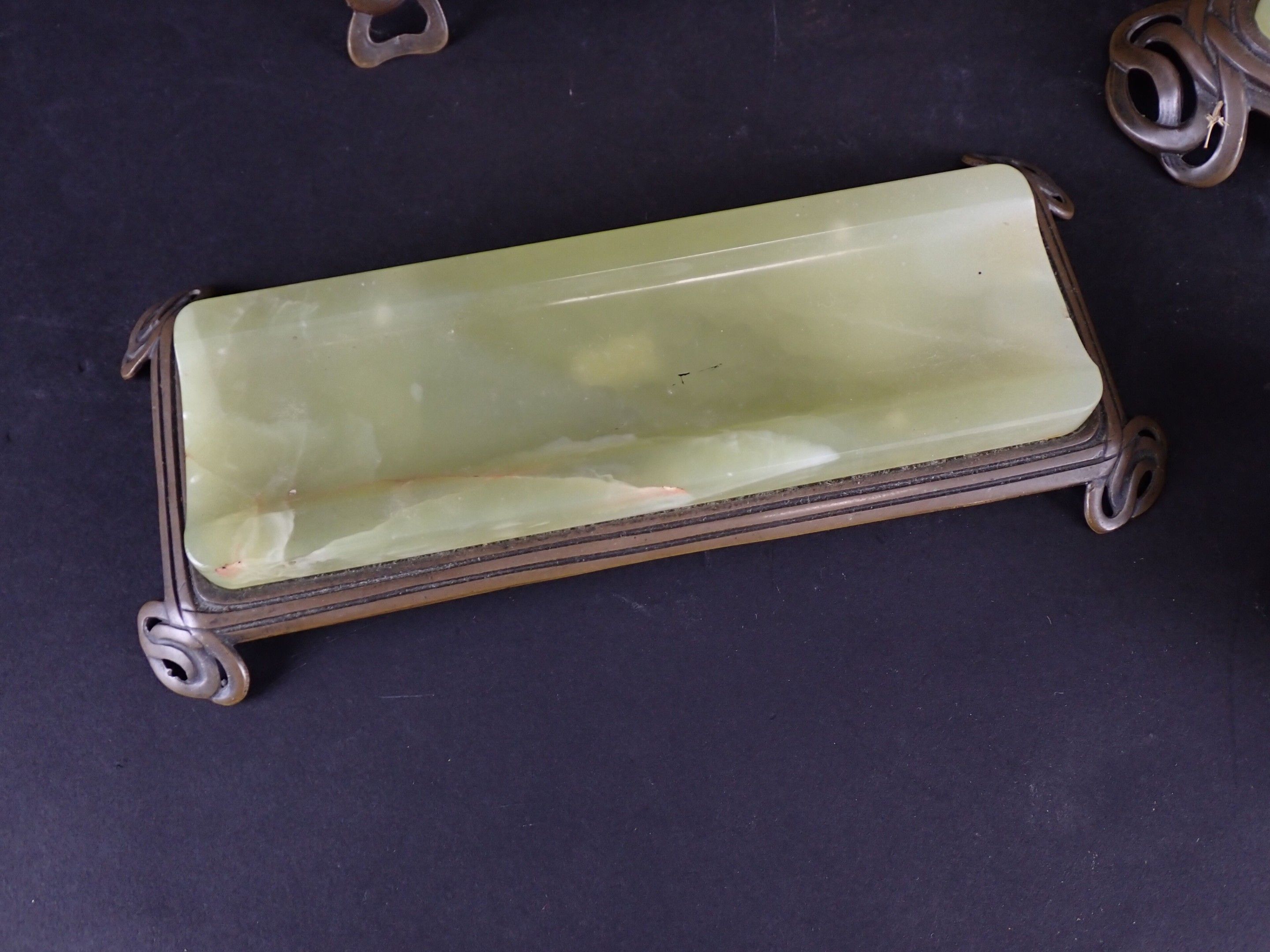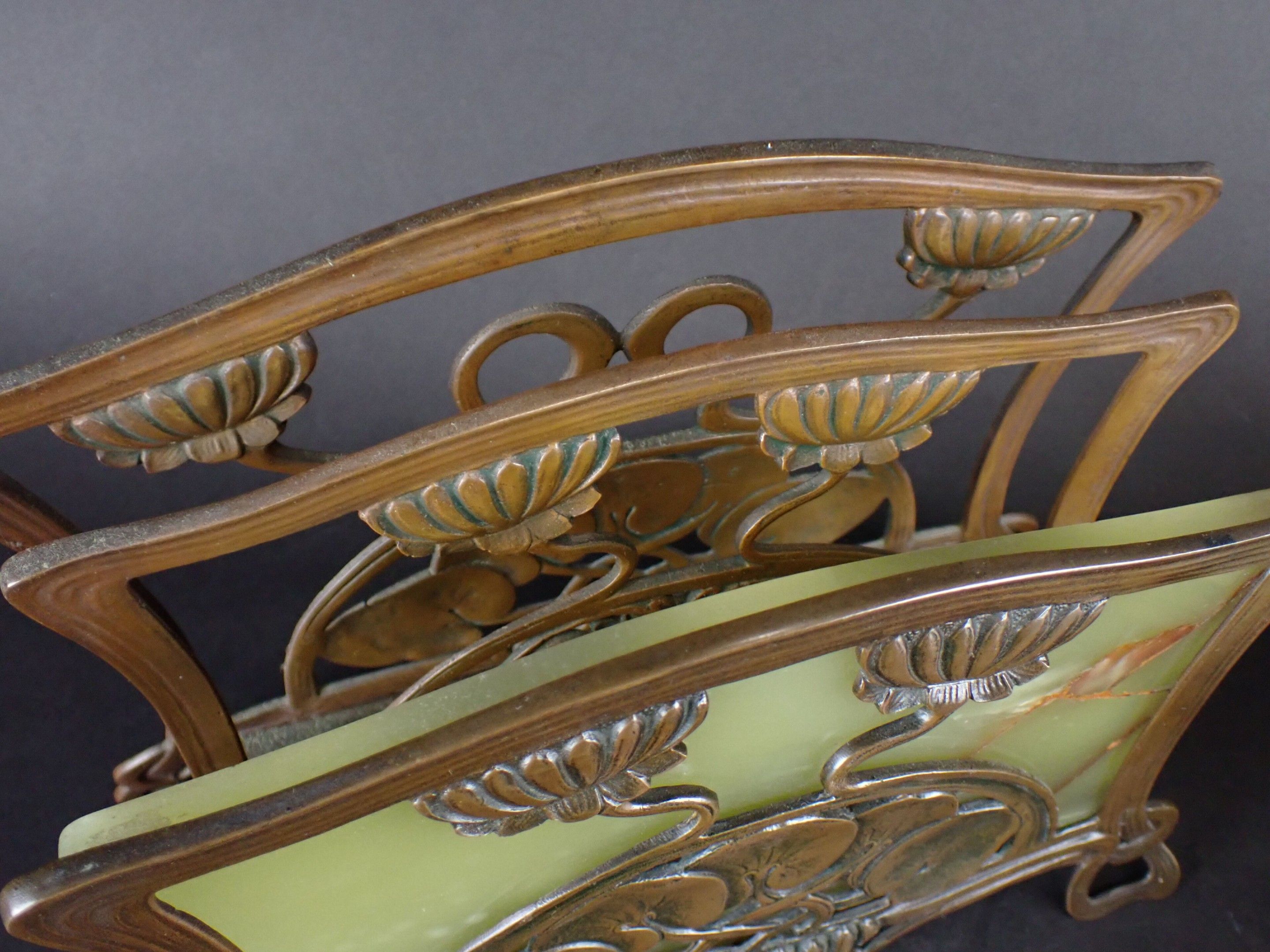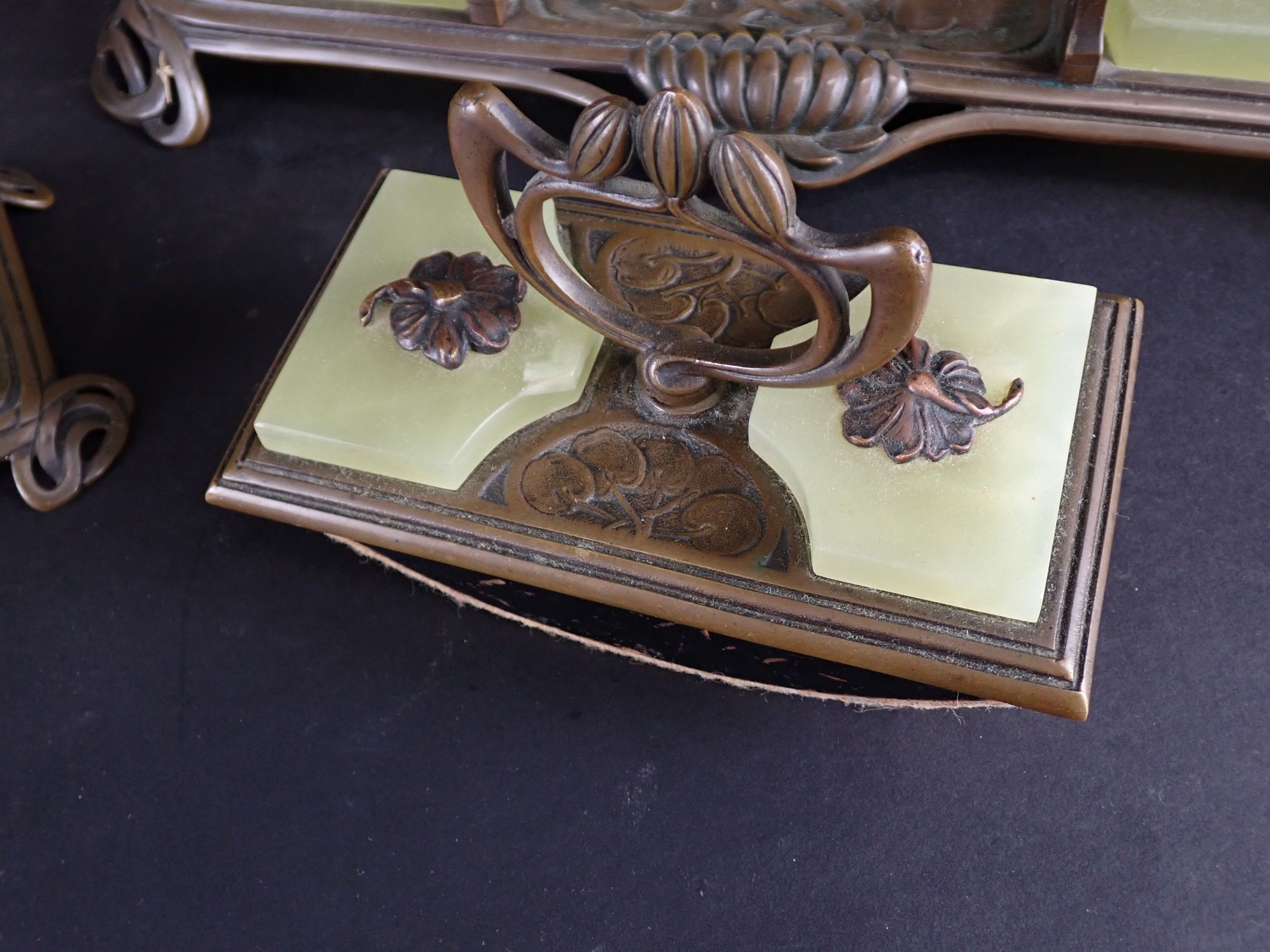 Art Nouveau desk set in bronze and green onyx decorated with…