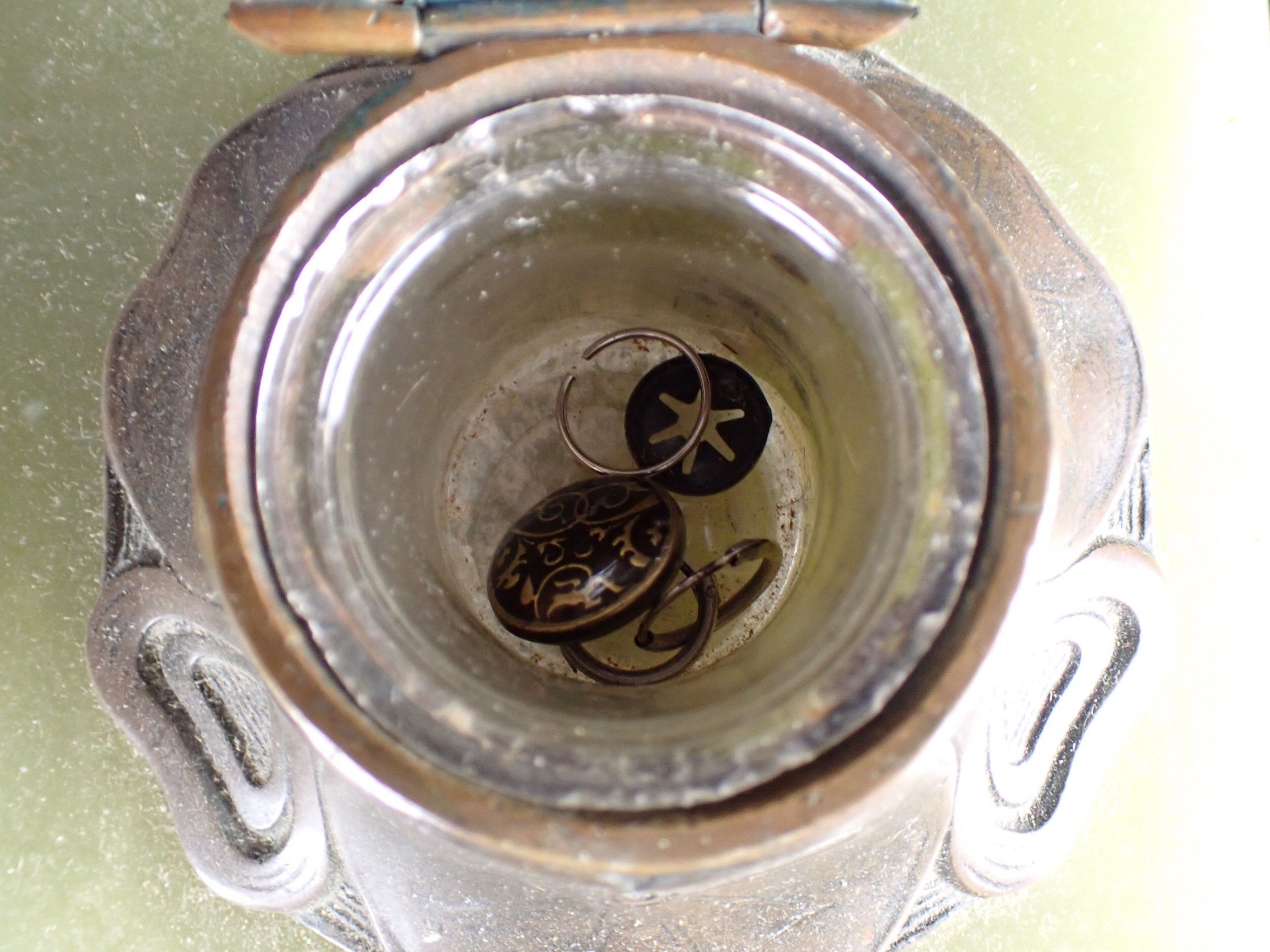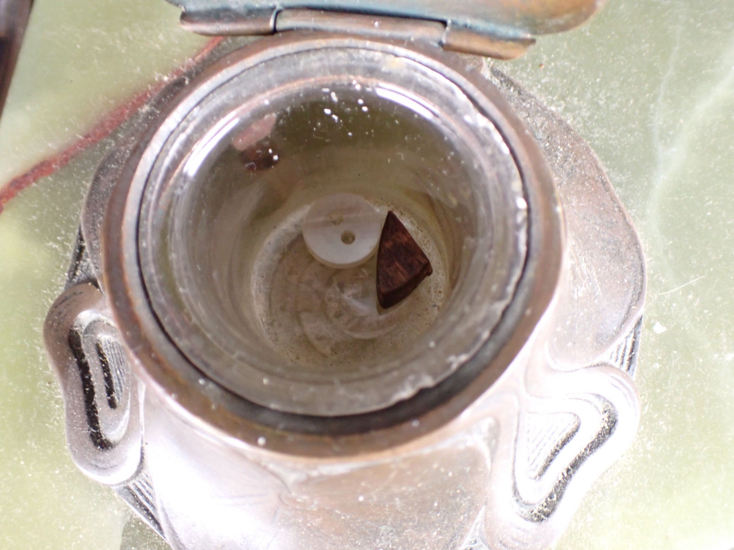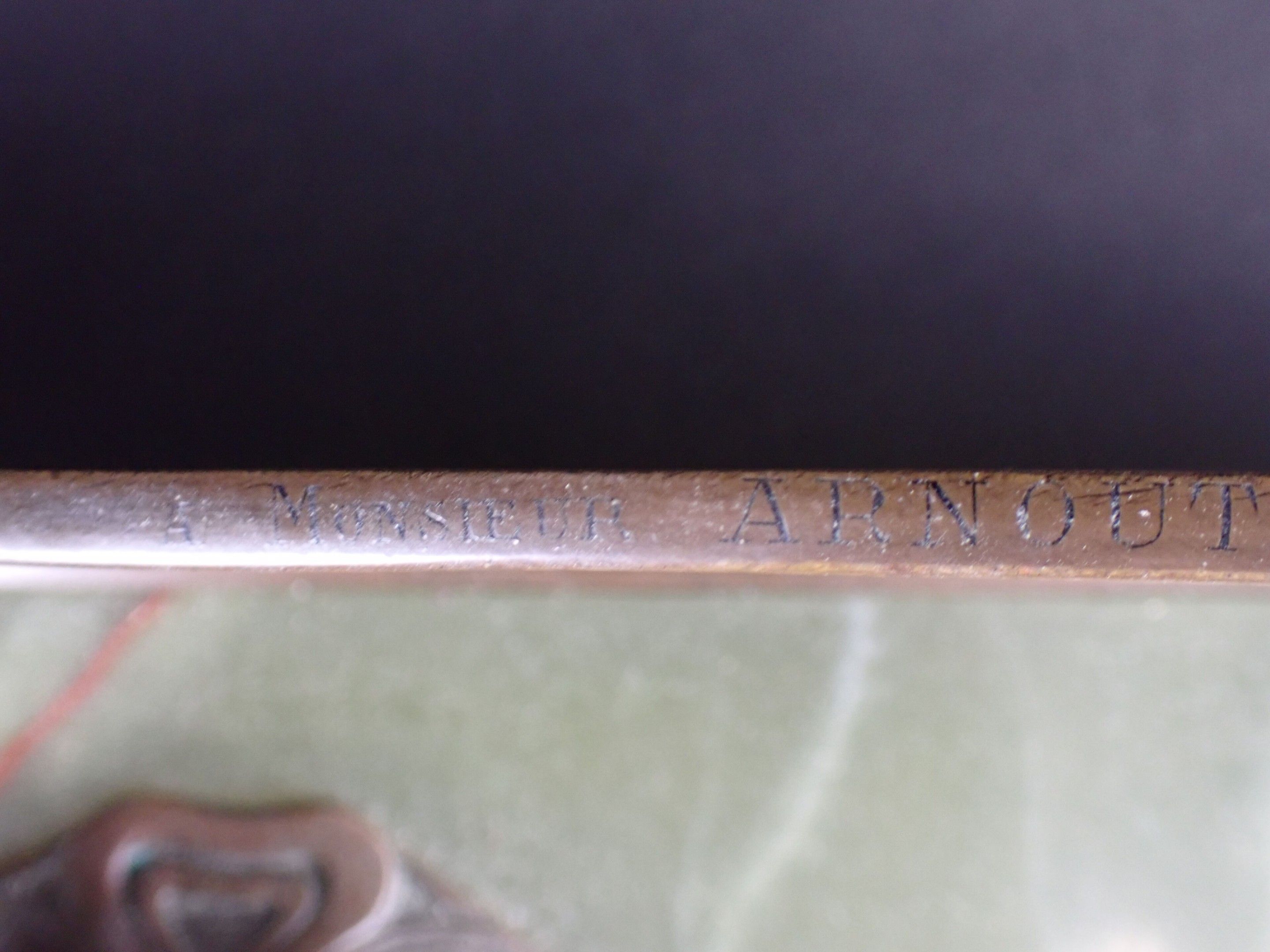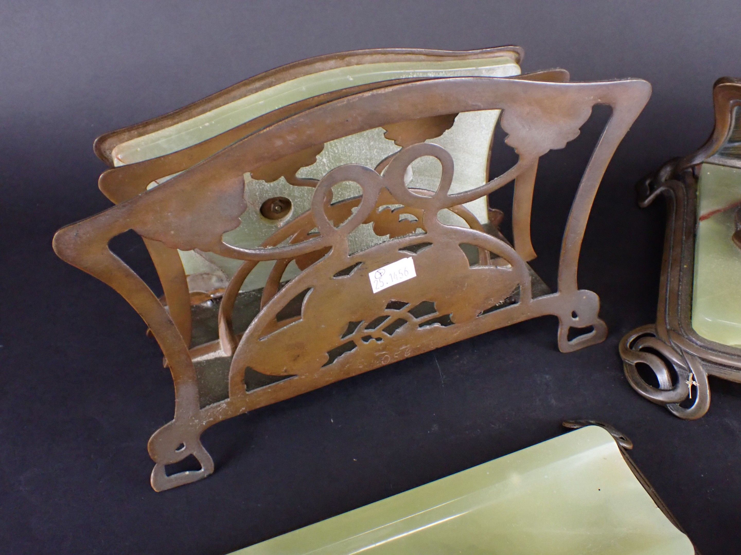 Art Nouveau desk set in bronze and green onyx decorated with…