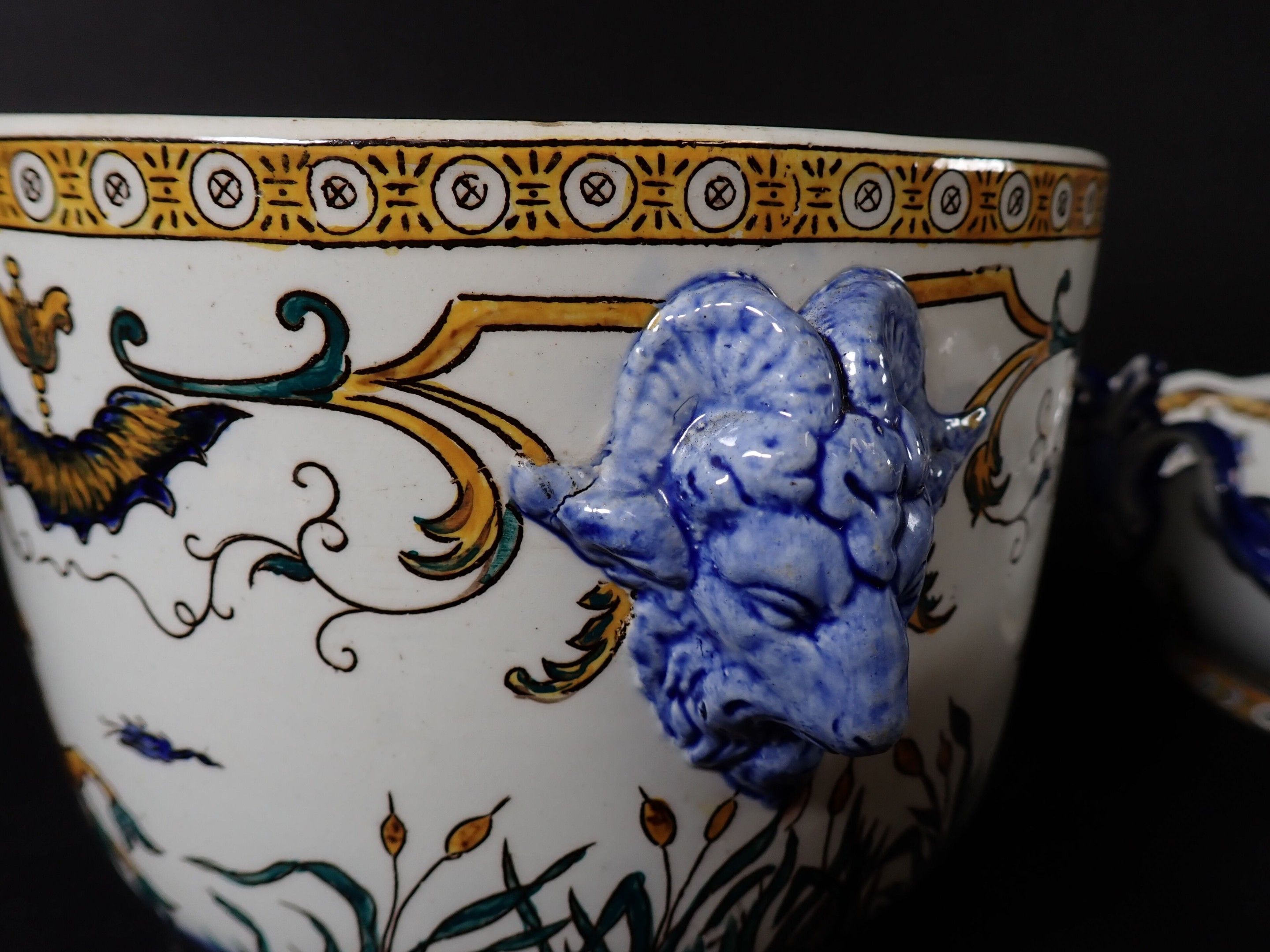 GIEN. An earthenware pot, finger bowl and small vase decorated in the Renaissance style. Height 14 - 10 - 10 cm
