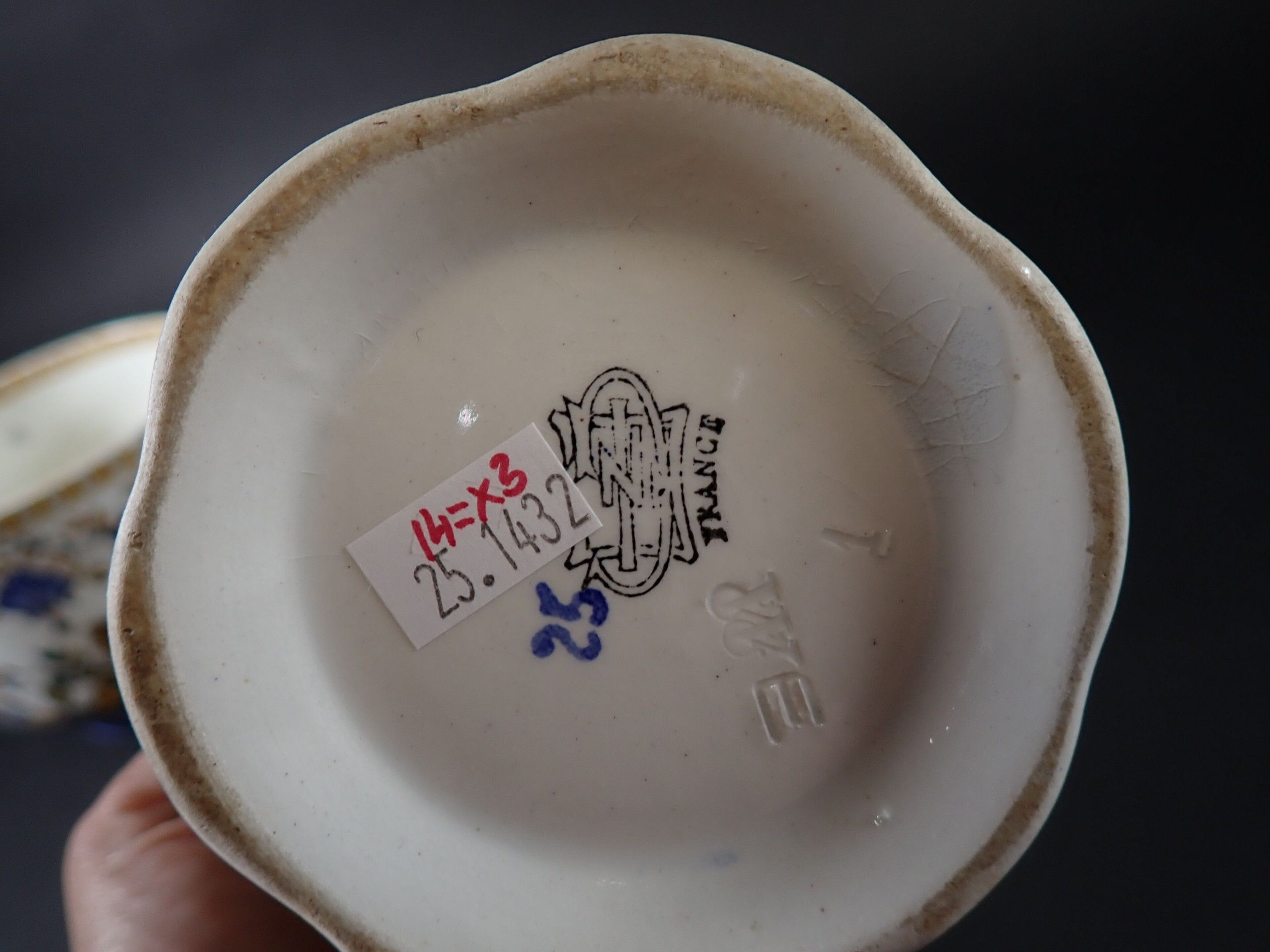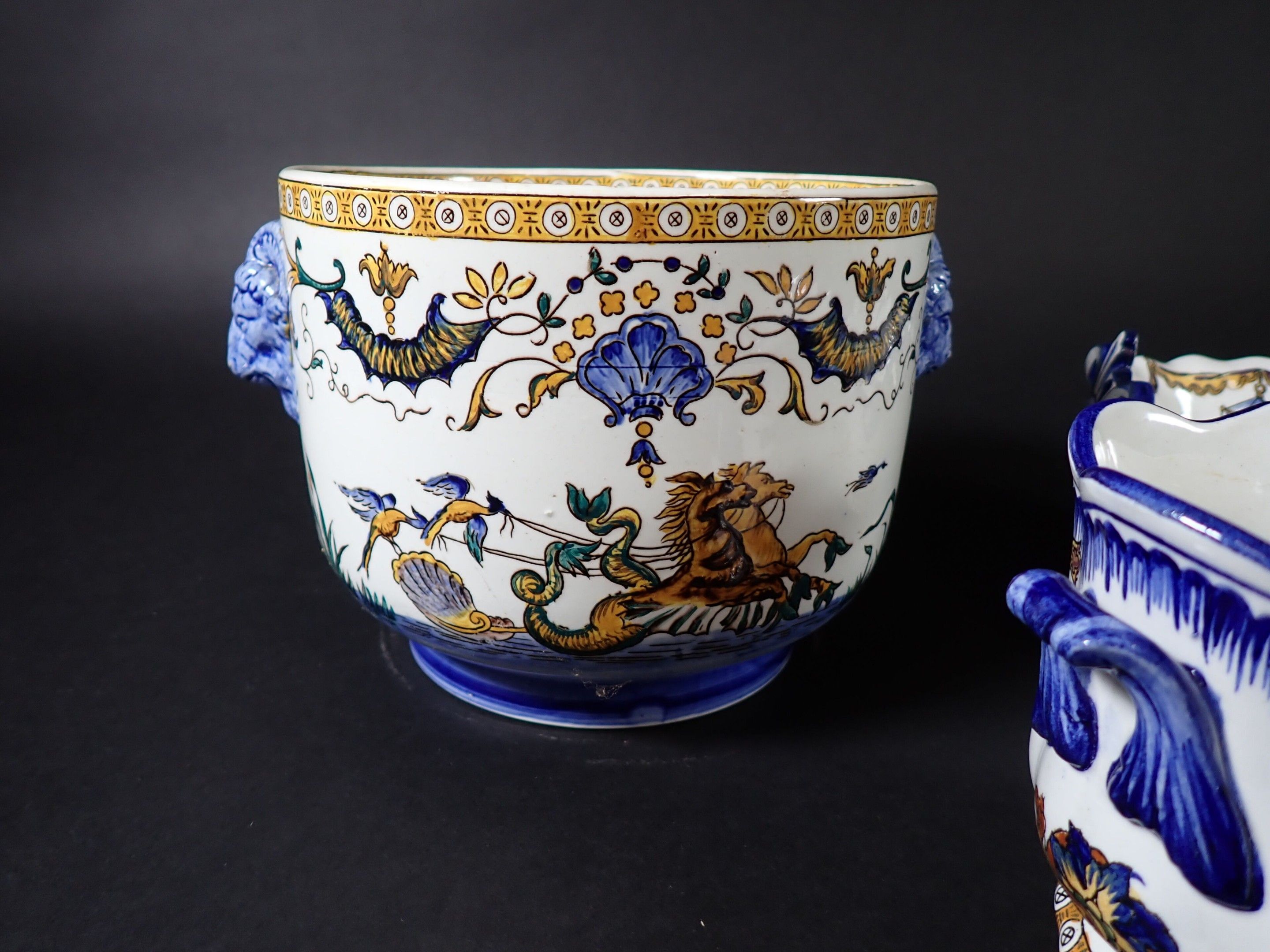 GIEN. An earthenware pot, finger bowl and small vase decorat…