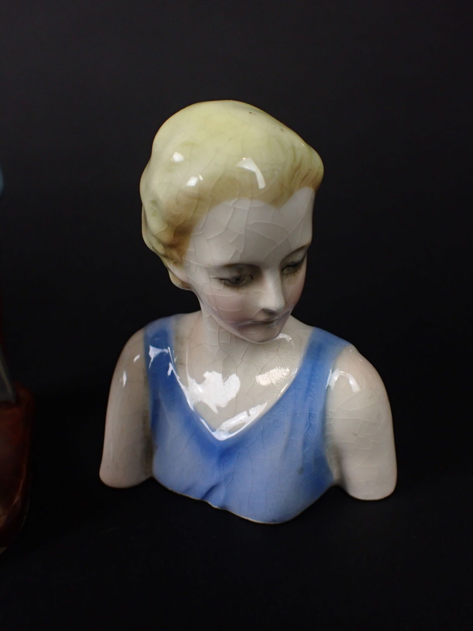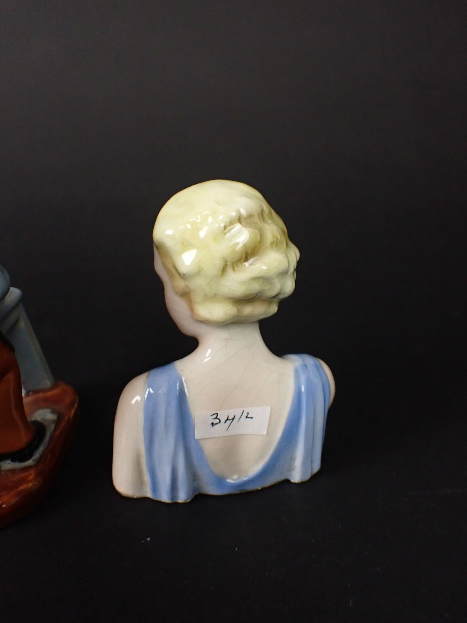 Female bust with blue bodice, marked N°588. Height 8 cm