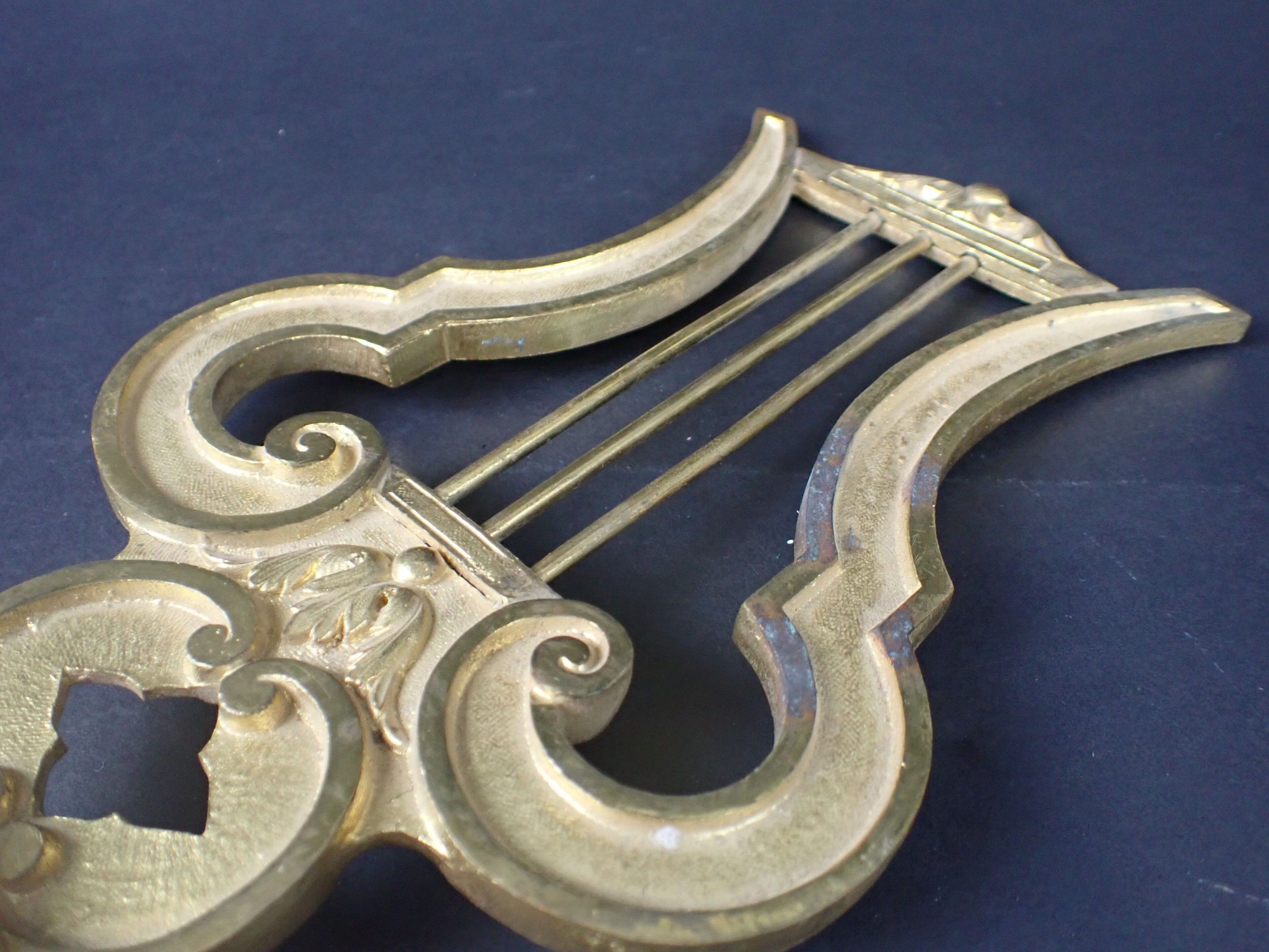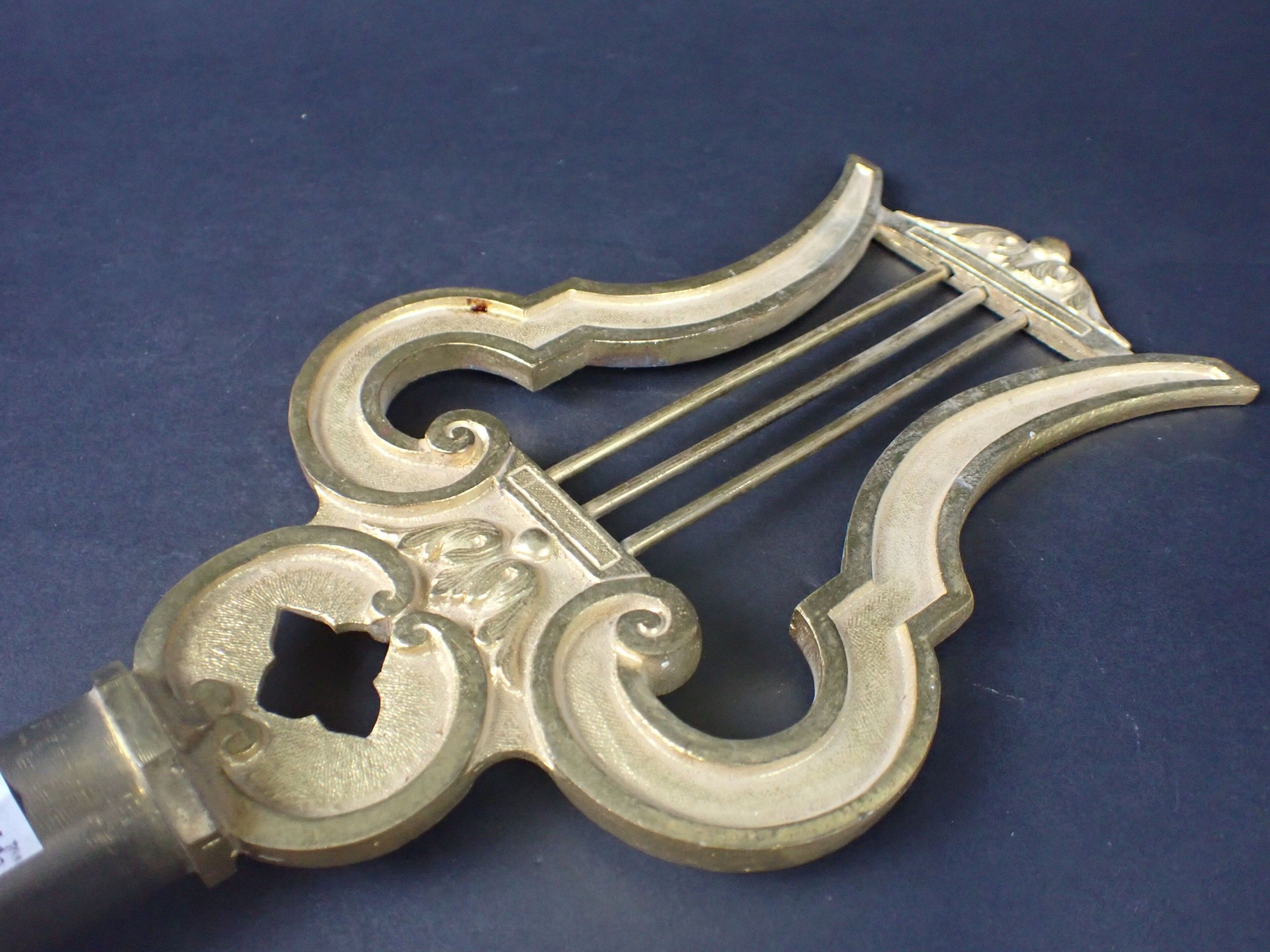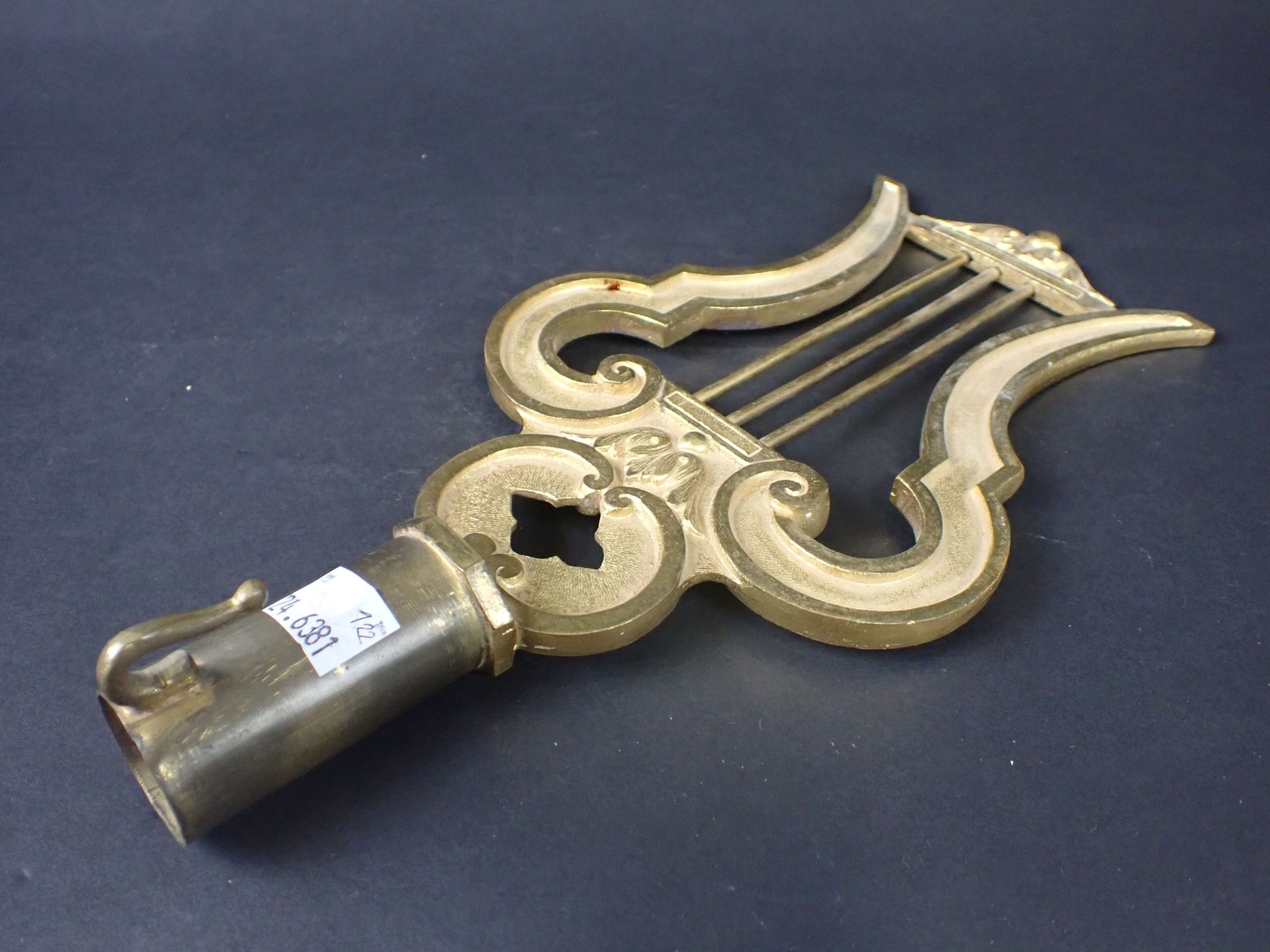 Musician's flagpole in gilt bronze in the form of a lyre, probably of the National Guard. Marked 987 E.F. Late 19th century. Height: 28 cm